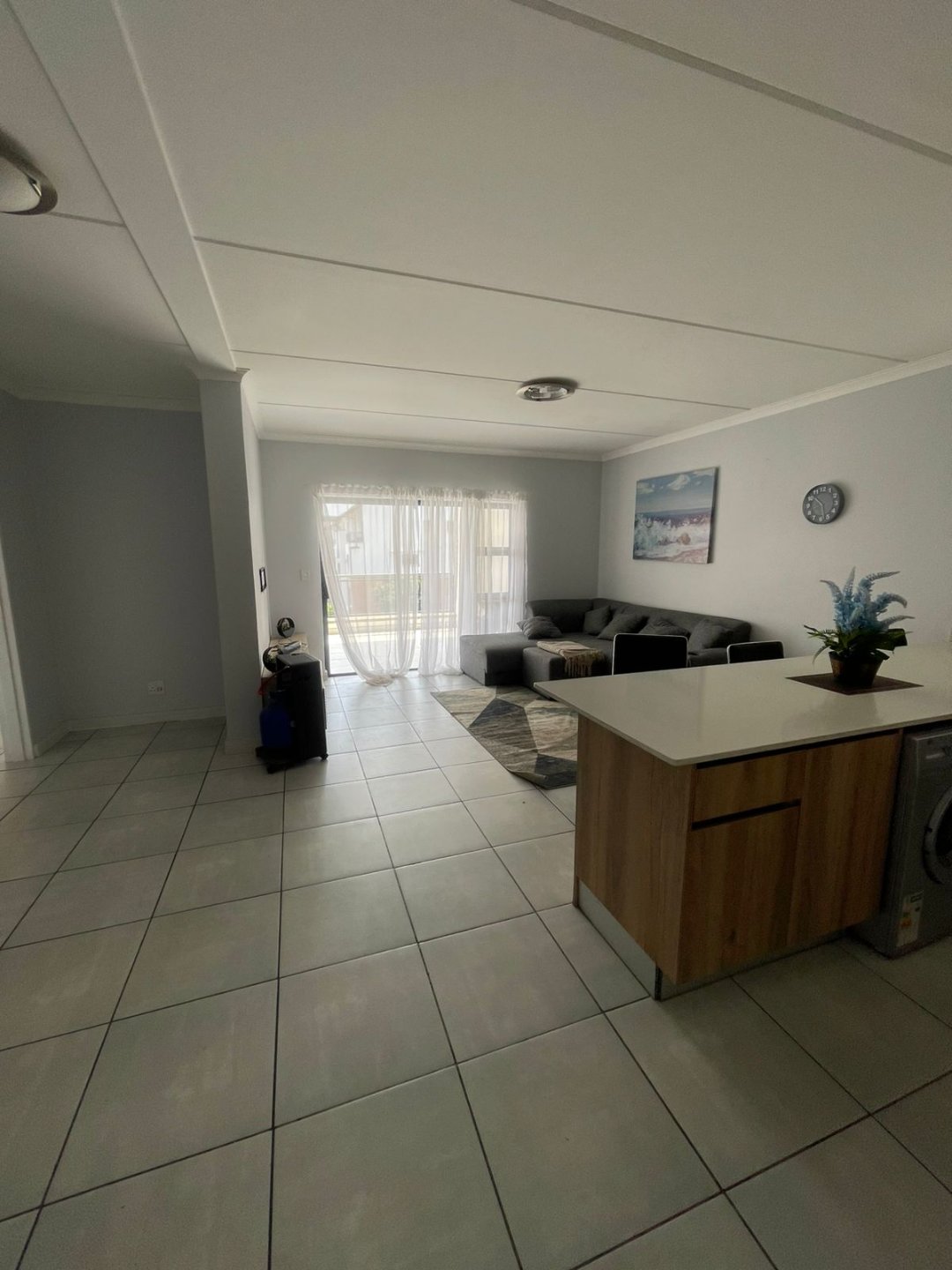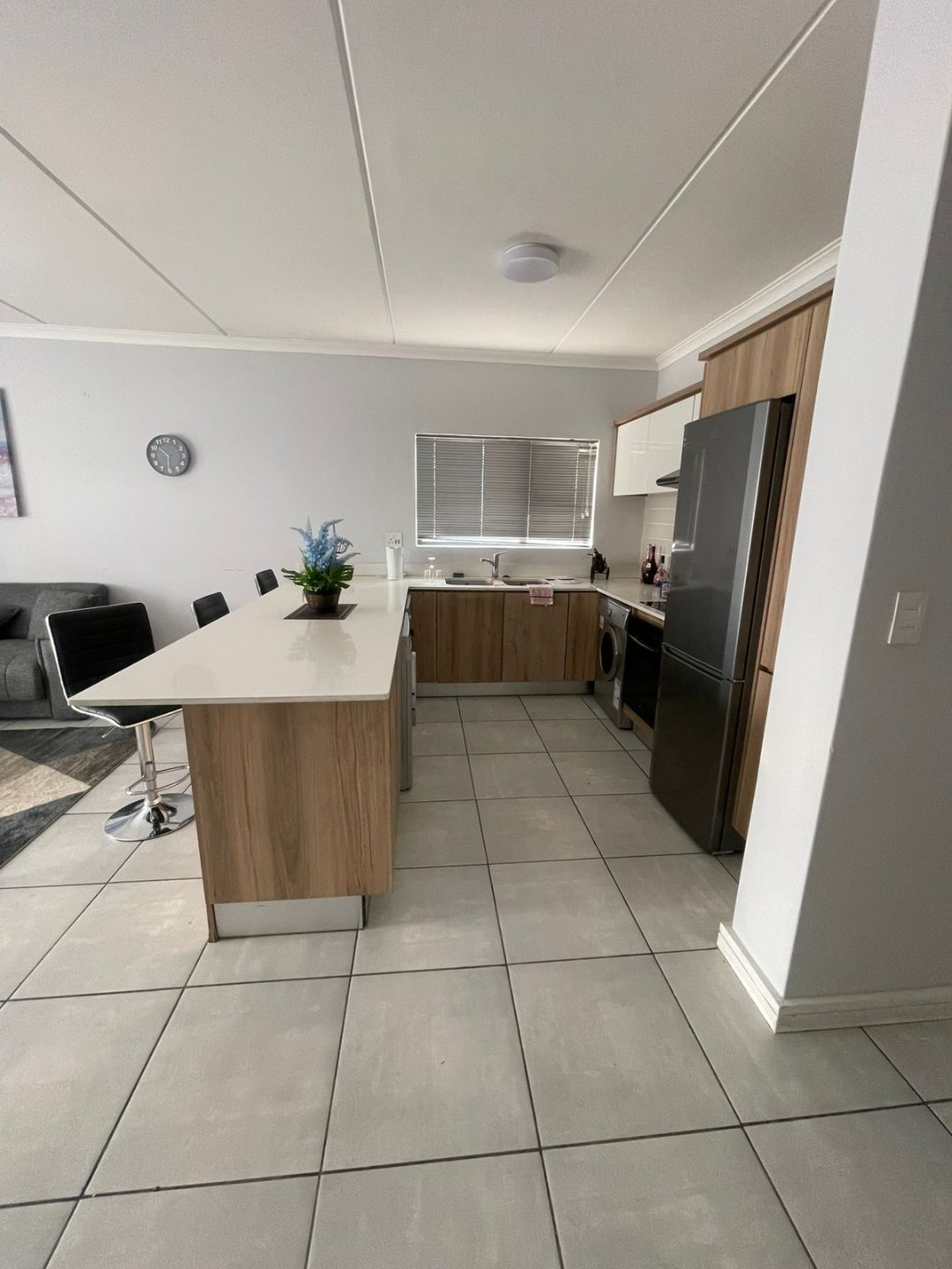 At the heart of the home is a large open-plan living and dining area, perfectly suited for both relaxed living and sophisticated entertaining. The flow is effortless, leading into an extra-large, modern kitchen that boasts sleek countertops, ample cupboard space, and room for three under-counter appliances — a rare and valuable feature. Thoughtfully enhanced with additional custom-built storage, this space is as practical as it is stylish.