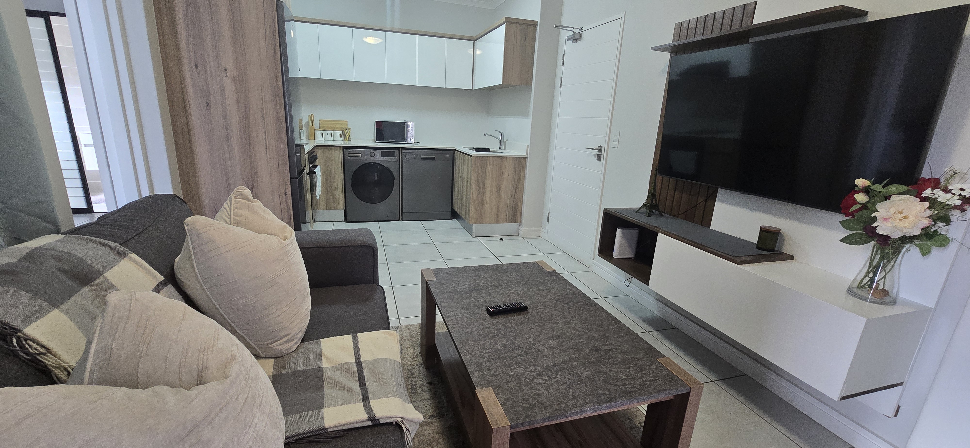 The chef’s gourmet kitchen comes complete with premium appliances i.e dishwasher, washing machine, tumble dryer and fridge.