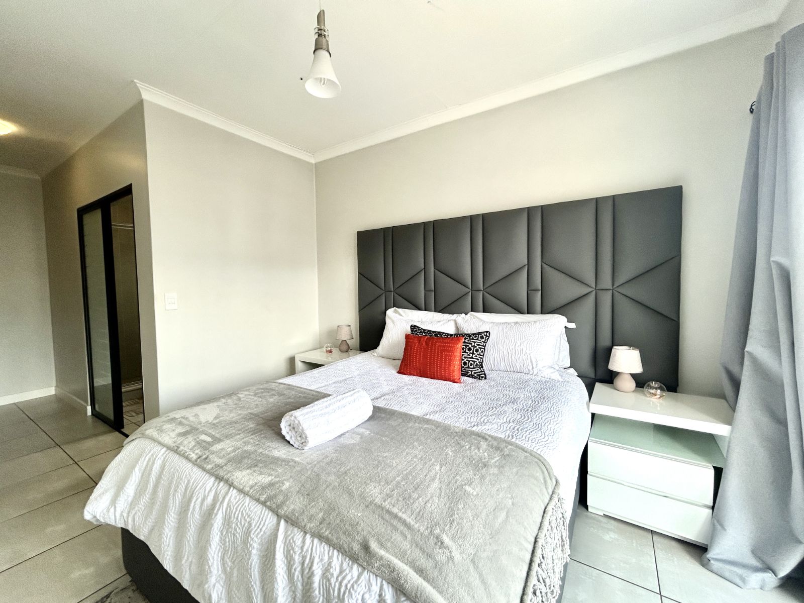 The main bedroom offers the convenience of an en-suite bathroom, while the second bedroom is serviced by a separate bathroom. Both bedrooms are well-sized and fully furnished, providing comfort, functionality, and style throughout.