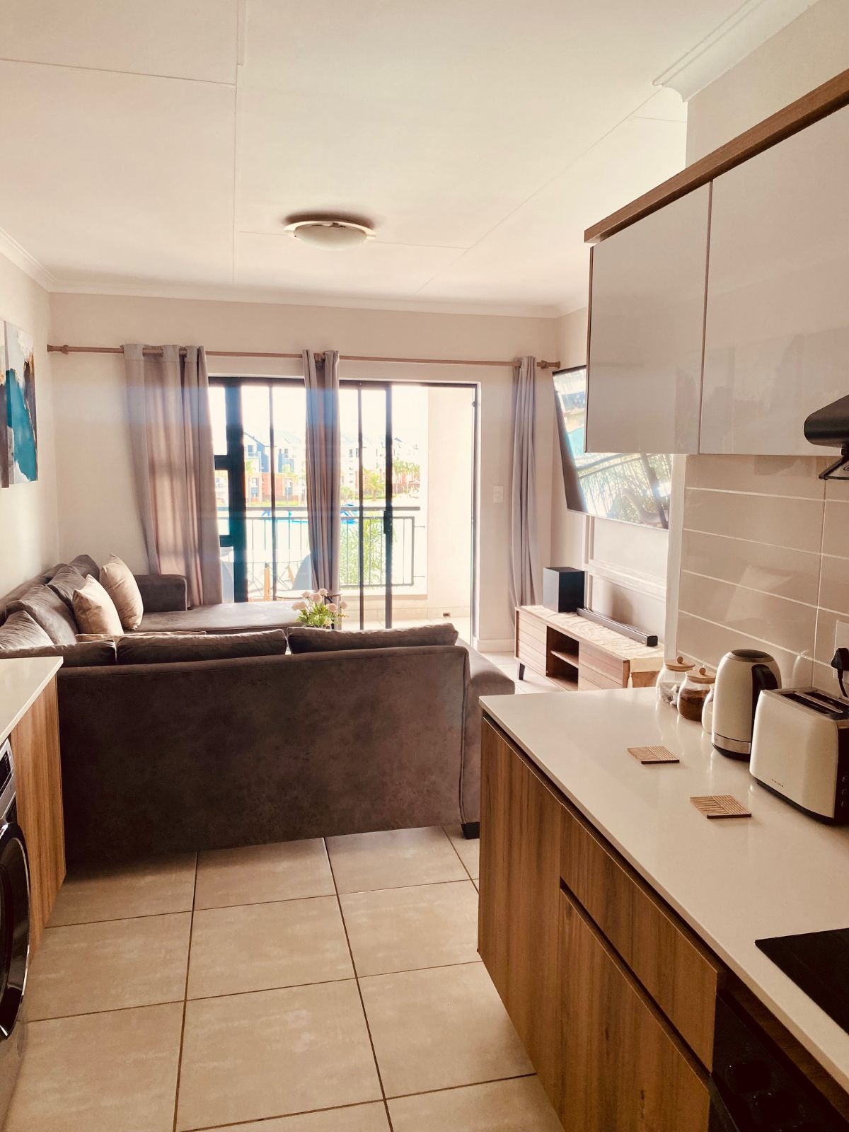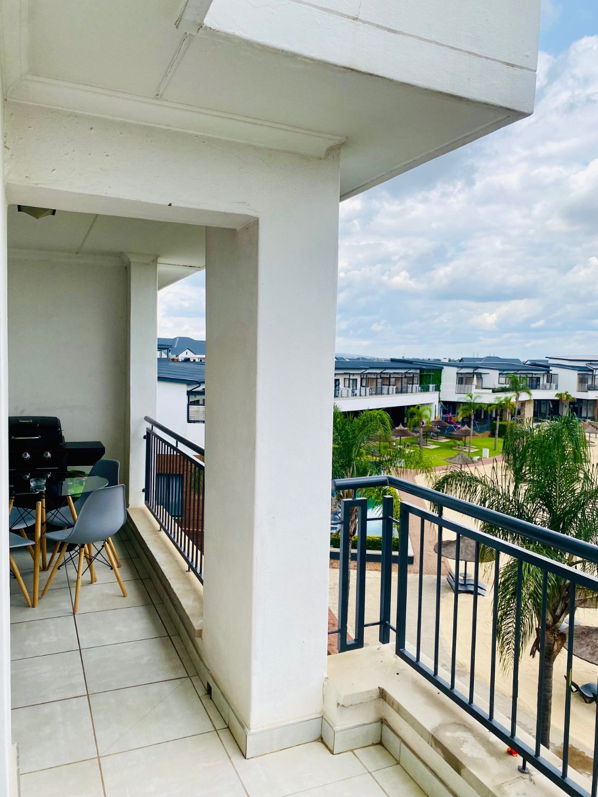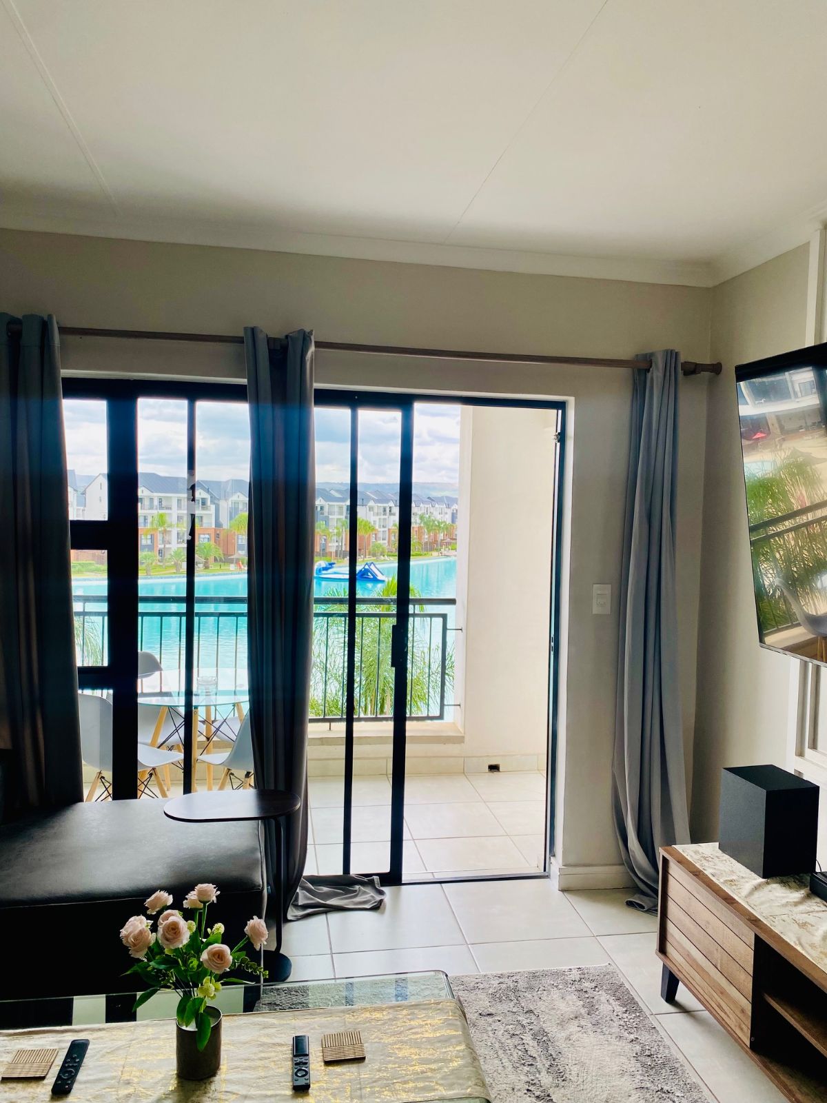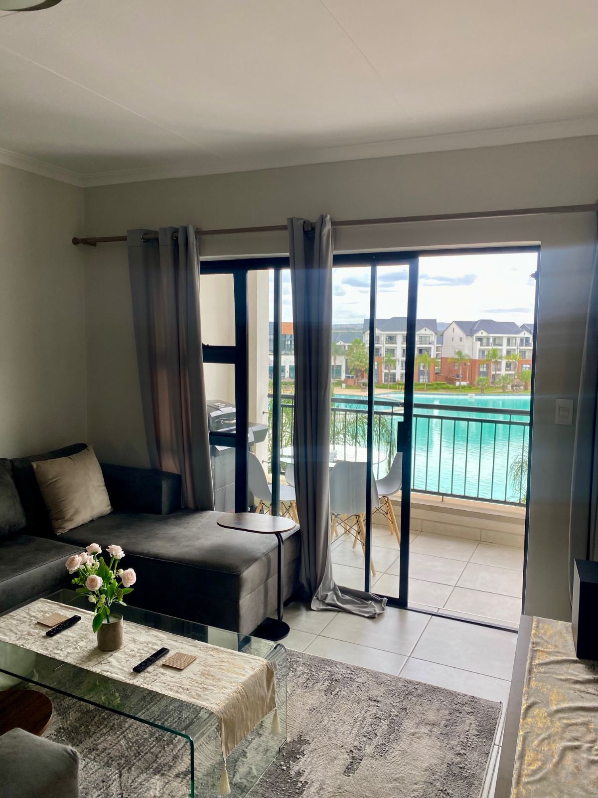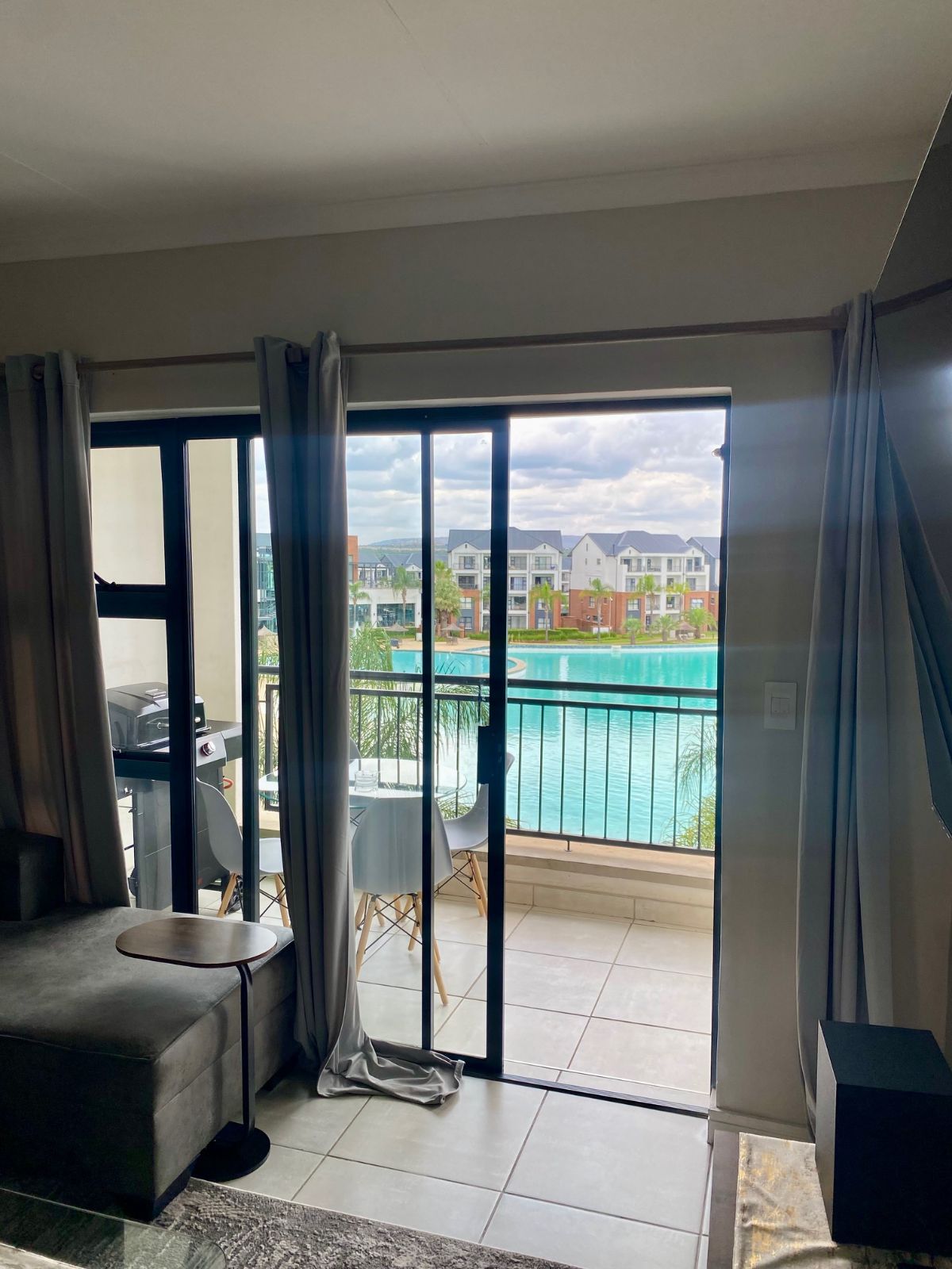Step out from the lounge onto your private balcony, complete with a gas braai — the perfect setting for sunset evenings while overlooking the sparkling crystal lagoon and pristine beach-style shoreline below. The uninterrupted views create a serene, holiday-inspired atmosphere that feels like a permanent escape.