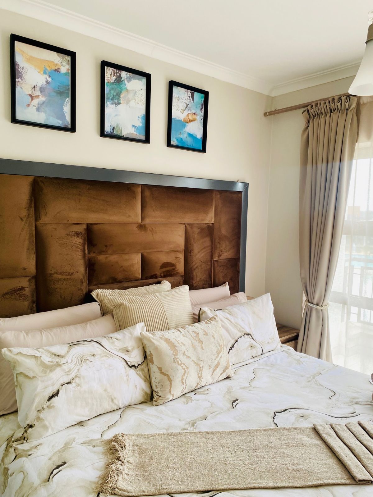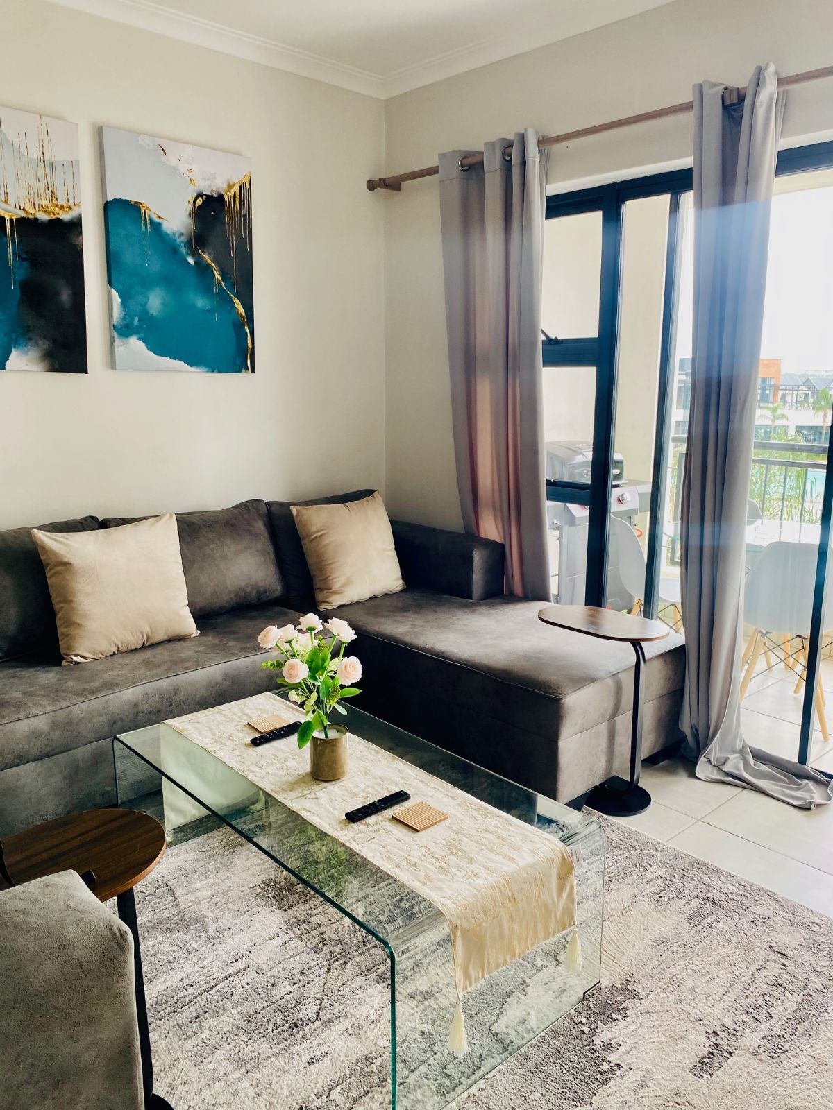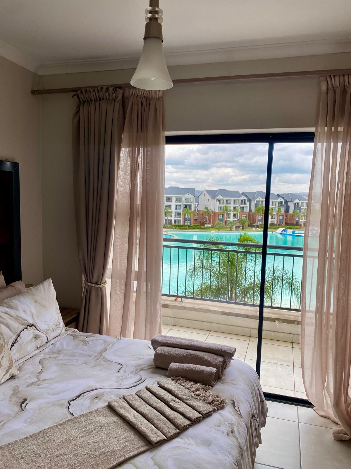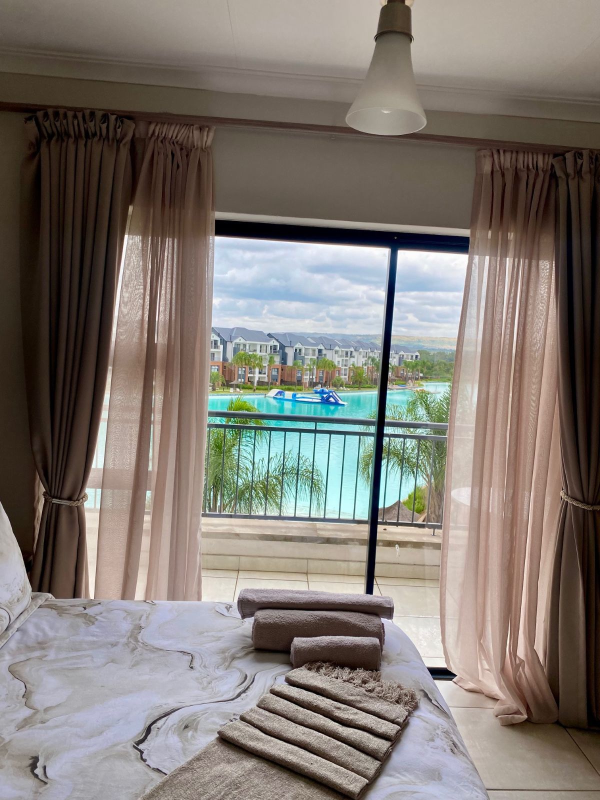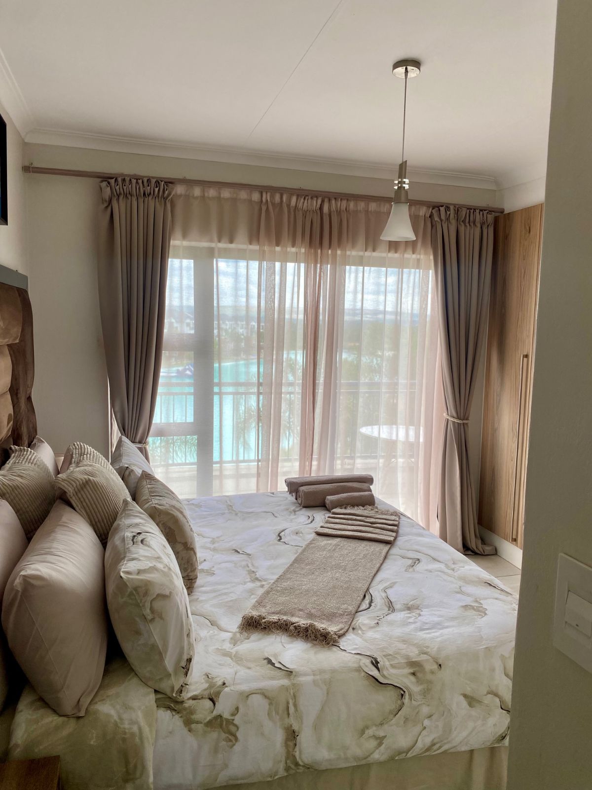 Step out from the lounge onto your private balcony, complete with a gas braai — the perfect setting for sunset evenings while overlooking the sparkling crystal lagoon and pristine beach-style shoreline below. The uninterrupted views create a serene, holiday-inspired atmosphere that feels like a permanent escape.
