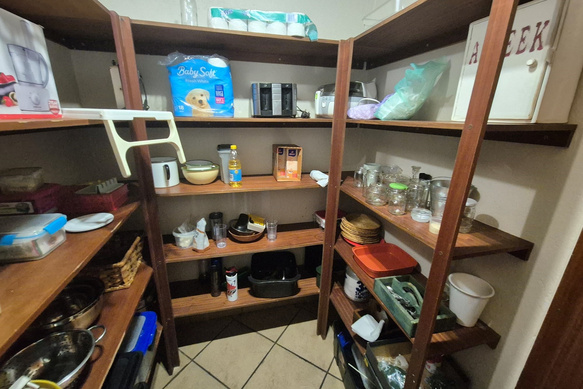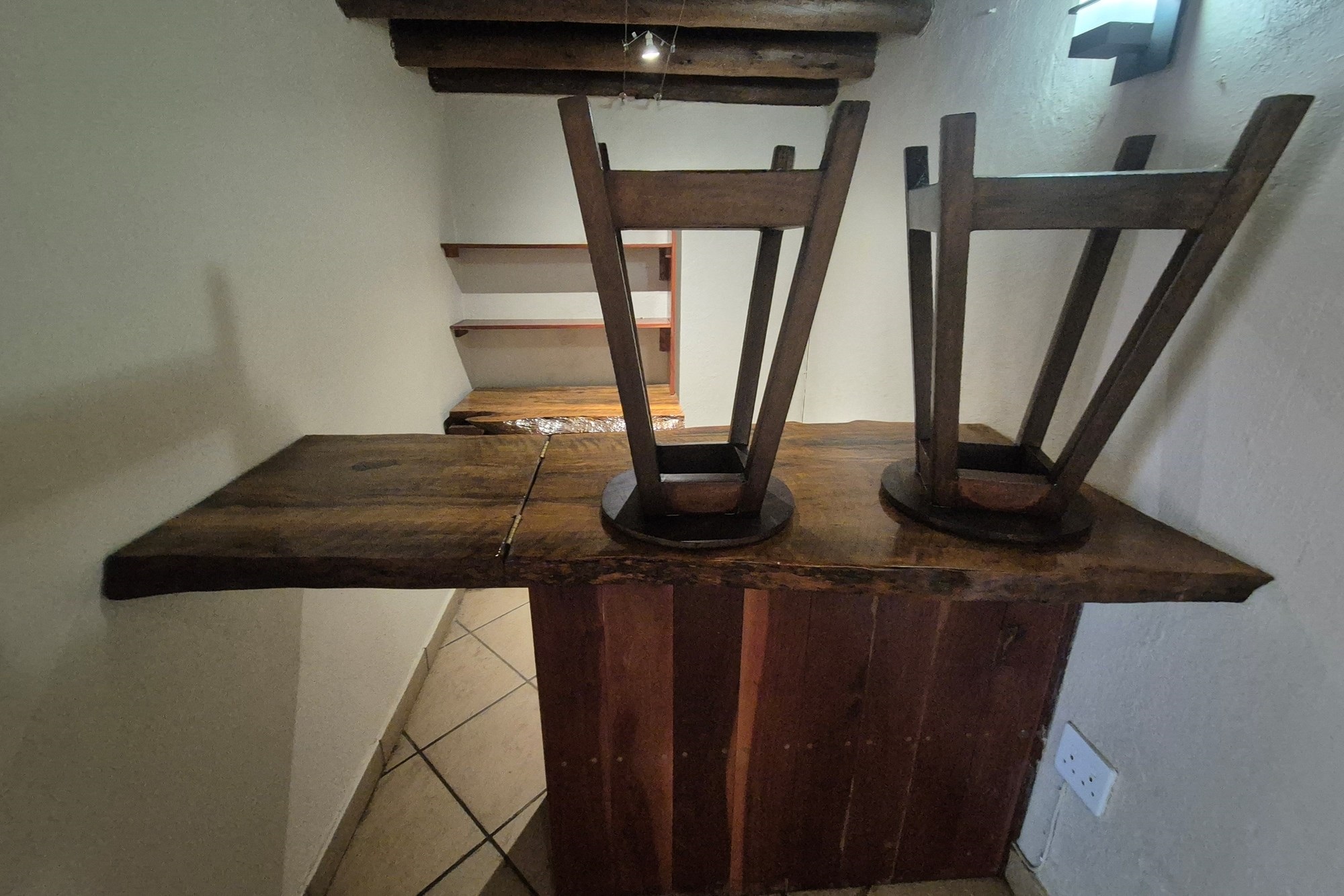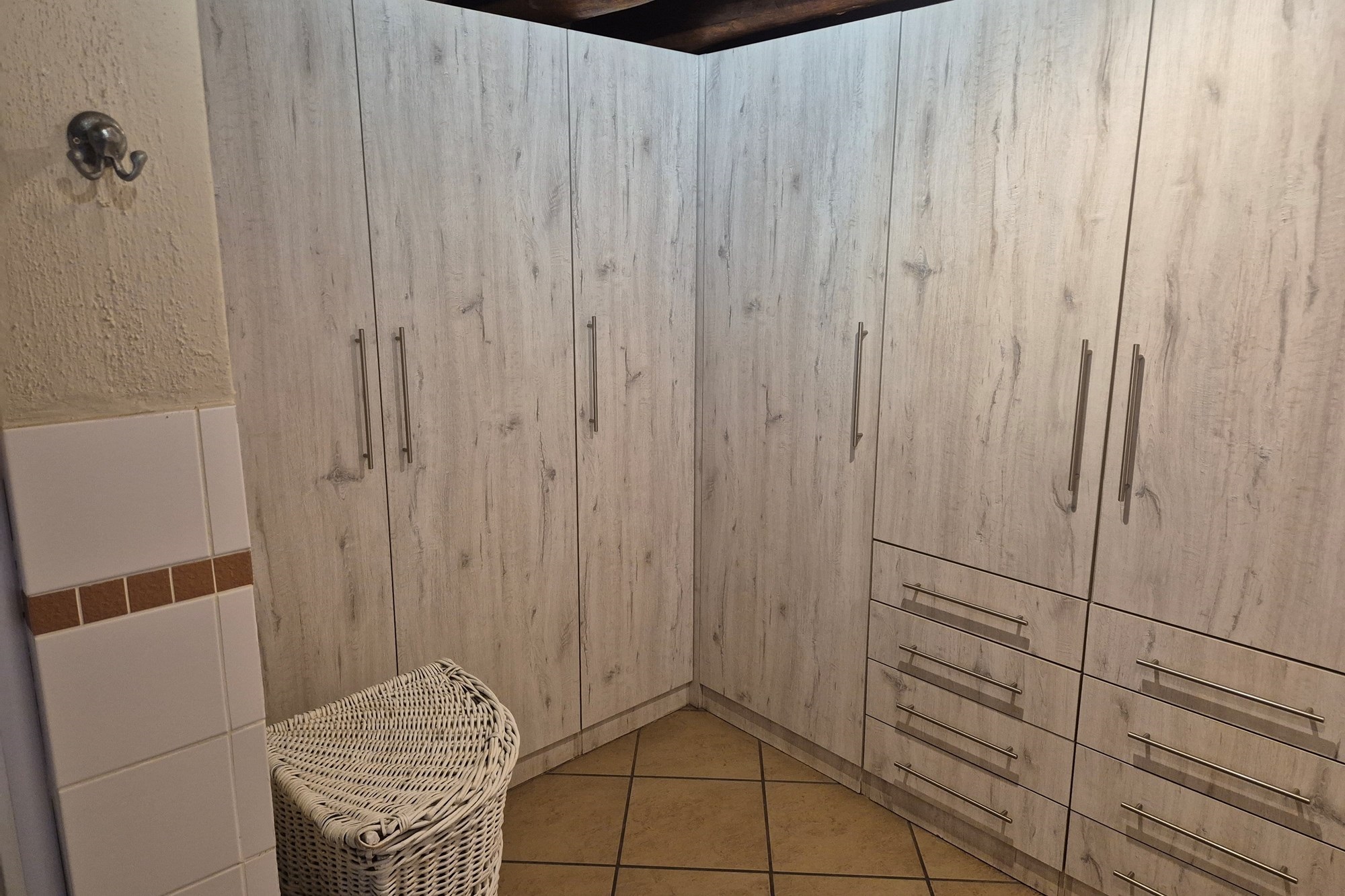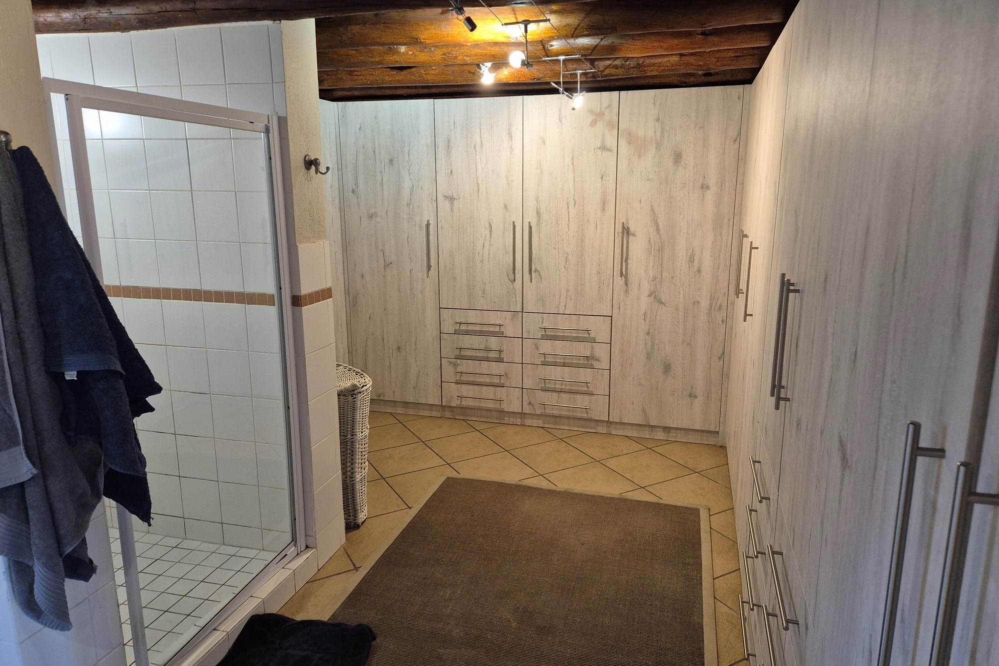 Built on two levels it has four bedrooms of which three are en-suite; all opening up with sliding doors onto the veranda, pool and entertainment area. Main bedroom is massive with ample cupboards for clothes and other with open mountain views, wooden blinds rounds off this very spacious room. The other rooms are spacious, plenty wooden cupboard space with tiled flooring, projecting a cozy atmosphere. The open plan Kitchen is fully equipped with scullery, washing area, wooden cupboards, tiled flooring and walk-in cooler room. The loft above is ideal as study or entertainment area. The living area is open plan with lounge and dining area with fireplace which accentuates an artistic feel.