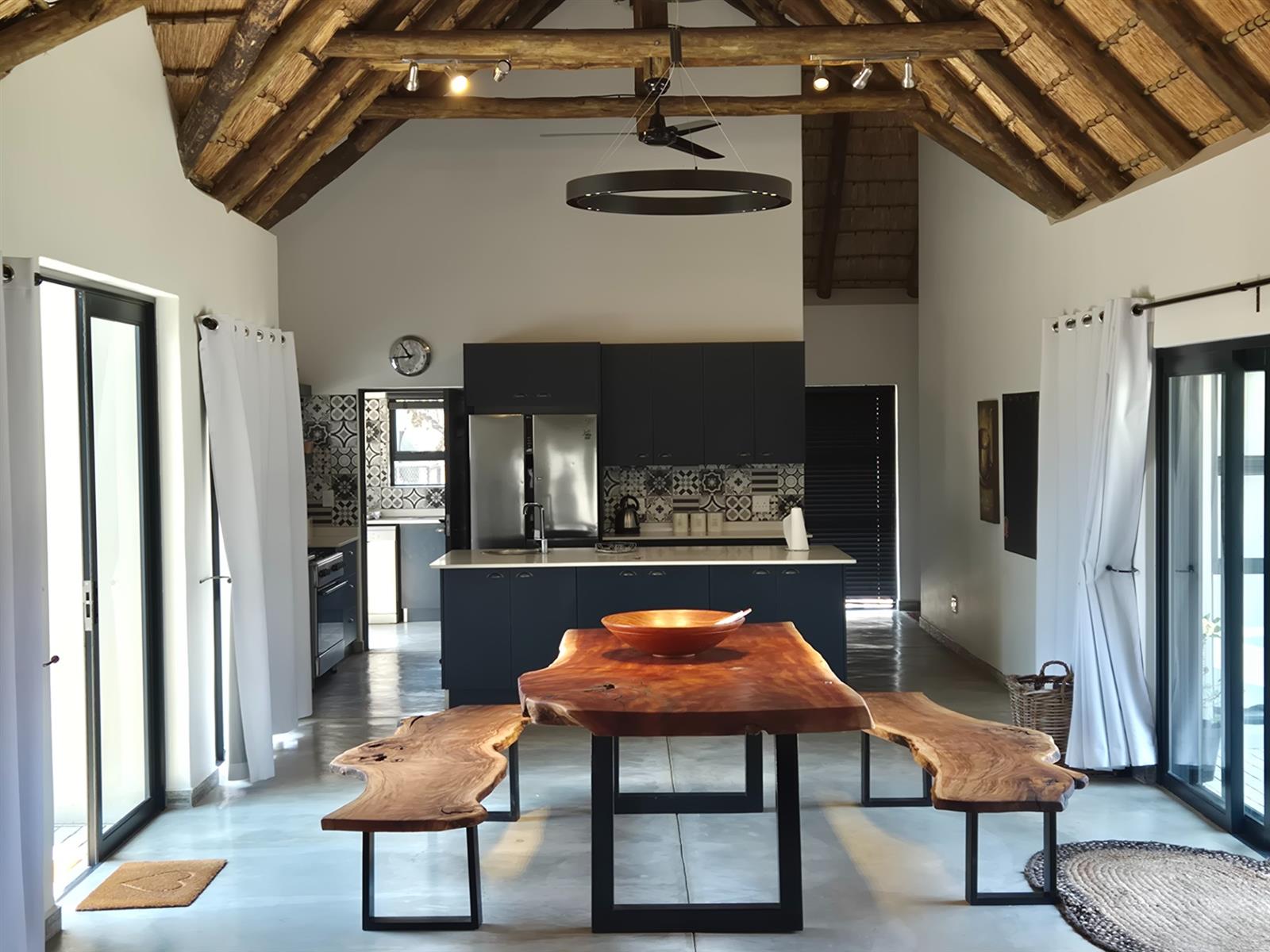 This truly impressive home is located close to the Blyde river, in the popular Blyde Wildlife Estate, luscious Jackelberry, Wild Fig and Weeping Bush Willow trees. The big trees are home to the Purple Crested Loerie, the shy Pels Fishing Owl as well as Fish Eagles being heard on a daily basis. At night time the Thick Tailed Bush Babies are seen jumping around in the trees catching ins