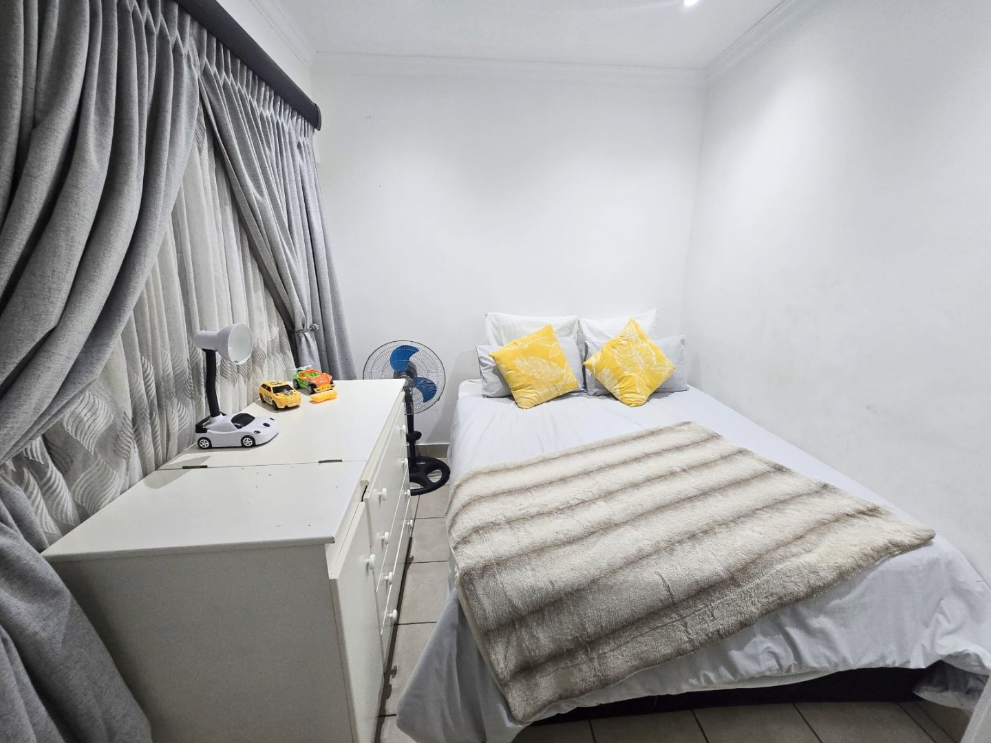 All three bedrooms are generously sized and fitted with built-in cupboards, providing ample storage. Two of the bedrooms feature ensuite bathrooms, adding convenience and privacy. Prepaid electricity allows for easy and controlled utility management.