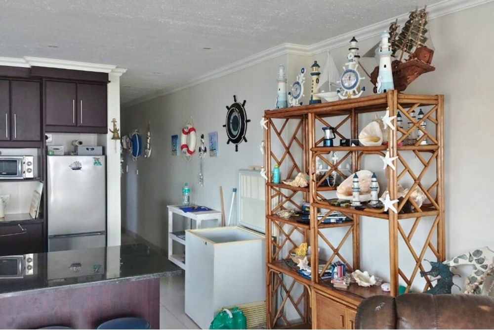 The open-plan living and dining area is bright and airy, with sliding doors leading onto a private balcony boasting partial ocean views—perfect for morning coffees or evening sundowners.