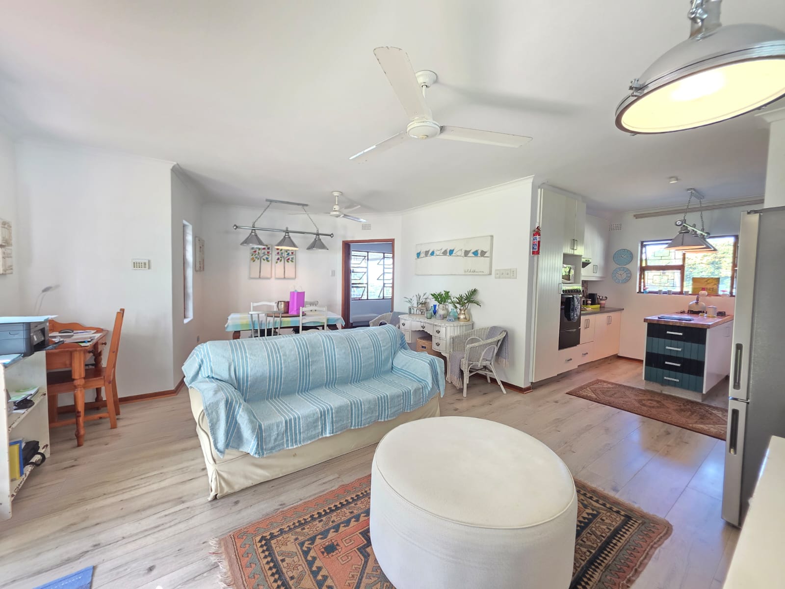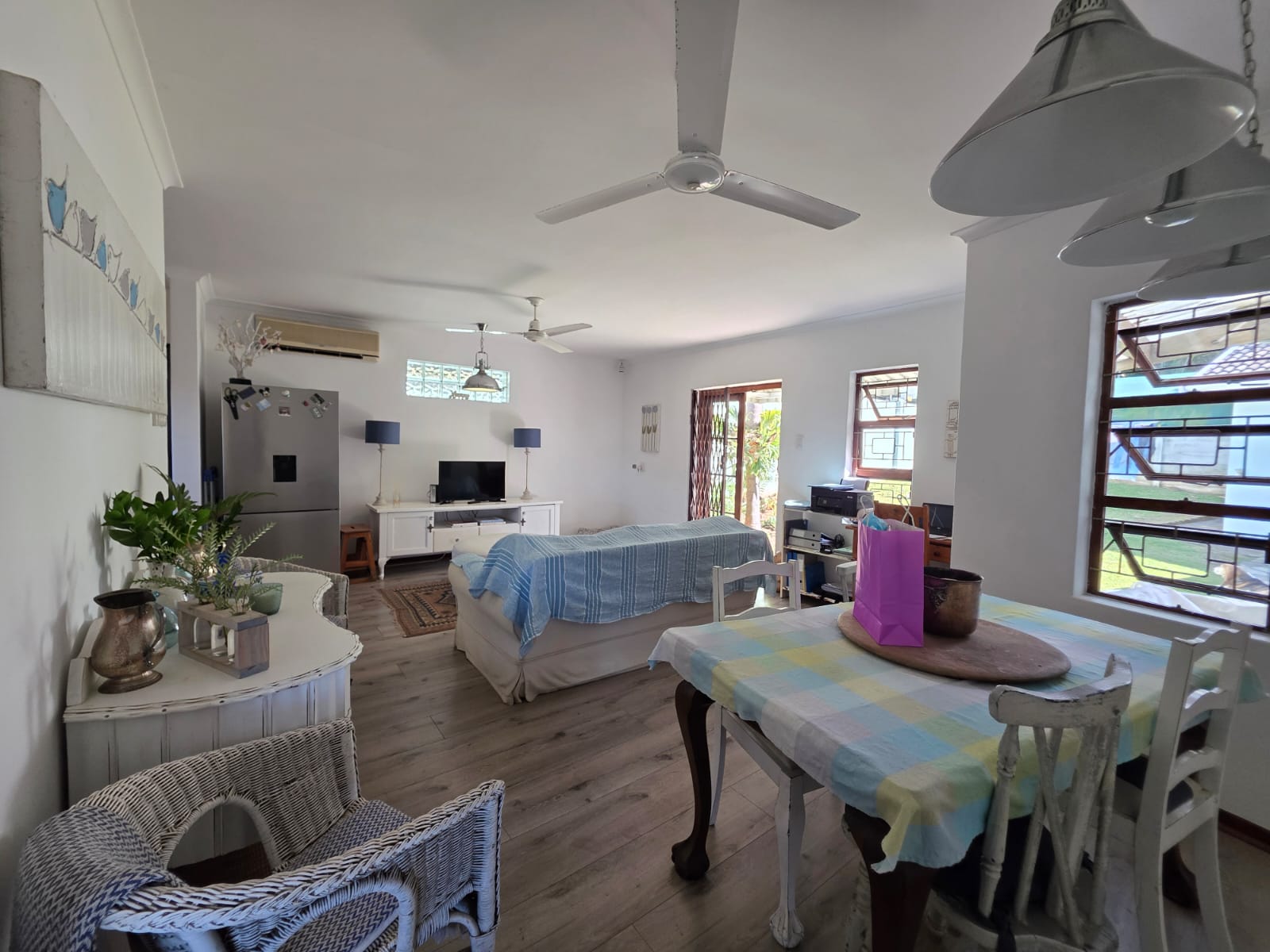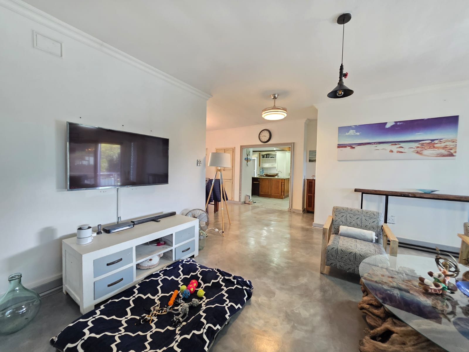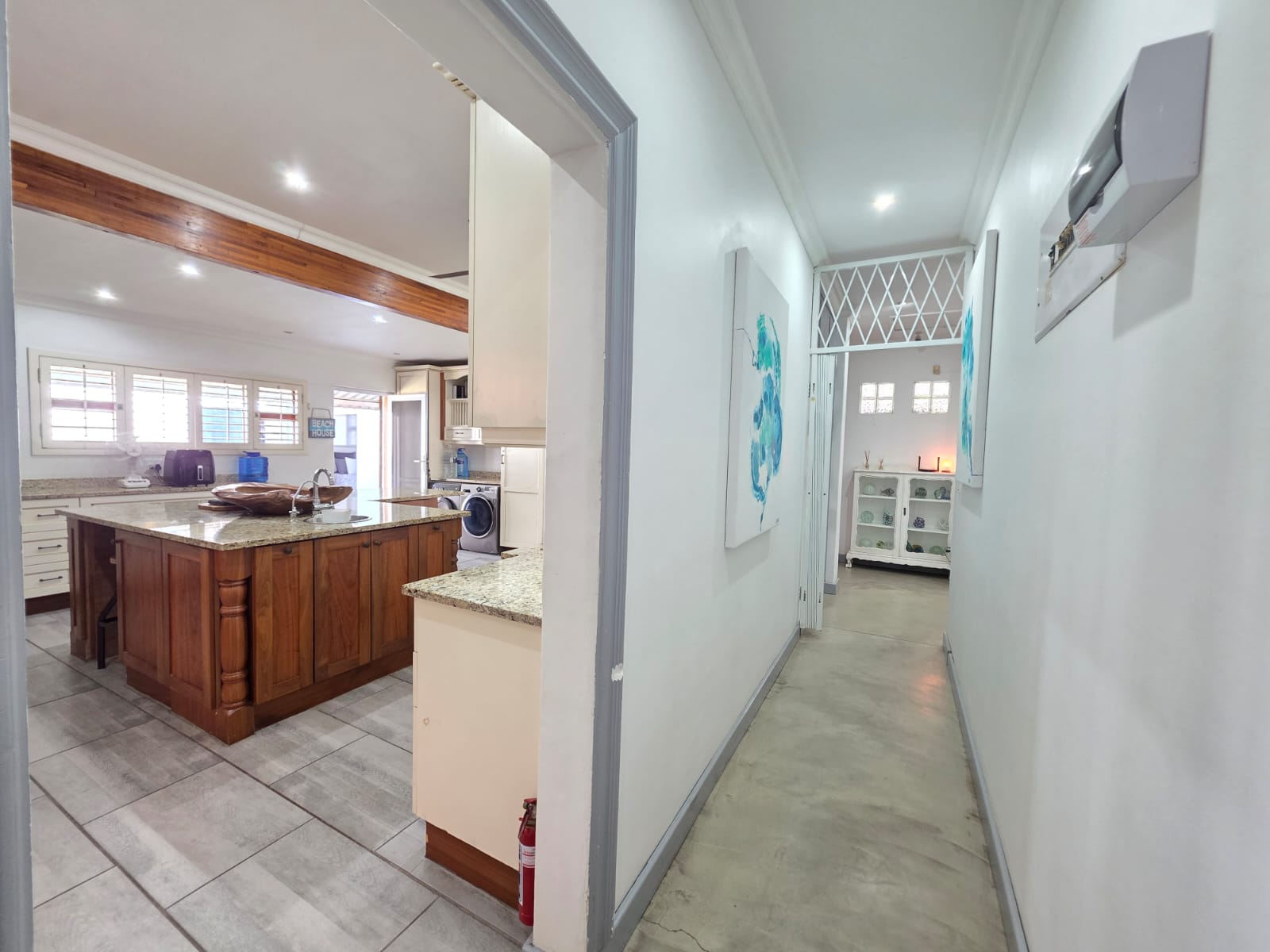 Step into a bright, welcoming home where spacious living areas and thoughtful design create an ideal space for relaxation and entertainment. The heart of the home is the expansive kitchen, a true showstopper with granite countertops, a gas hob, ample cabinetry, and a separate scullery. Whether you're preparing meals for the family or hosting guests, this kitchen is a chef’s dream. Adjacent to the kitchen is a dedicated dining room and a comfortable TV room, both flowing seamlessly out to a large patio where you can enjoy sea views and warm coastal breezes.