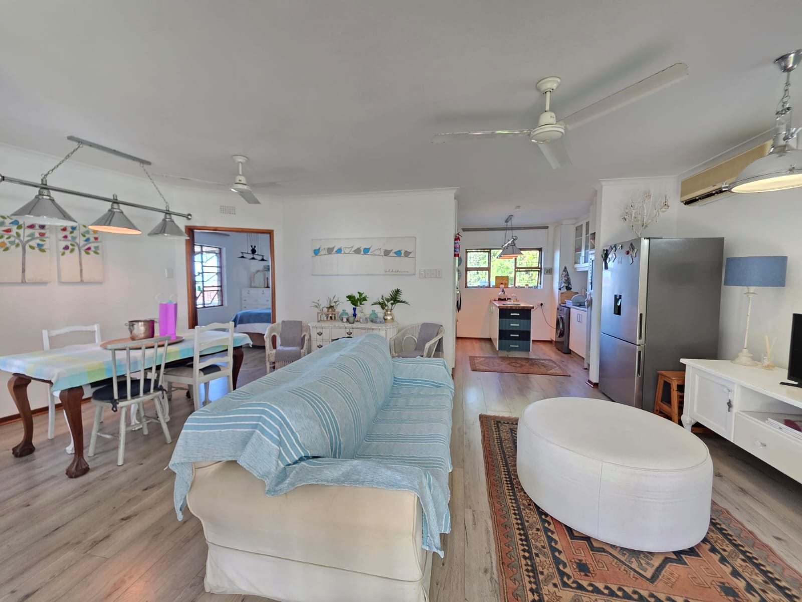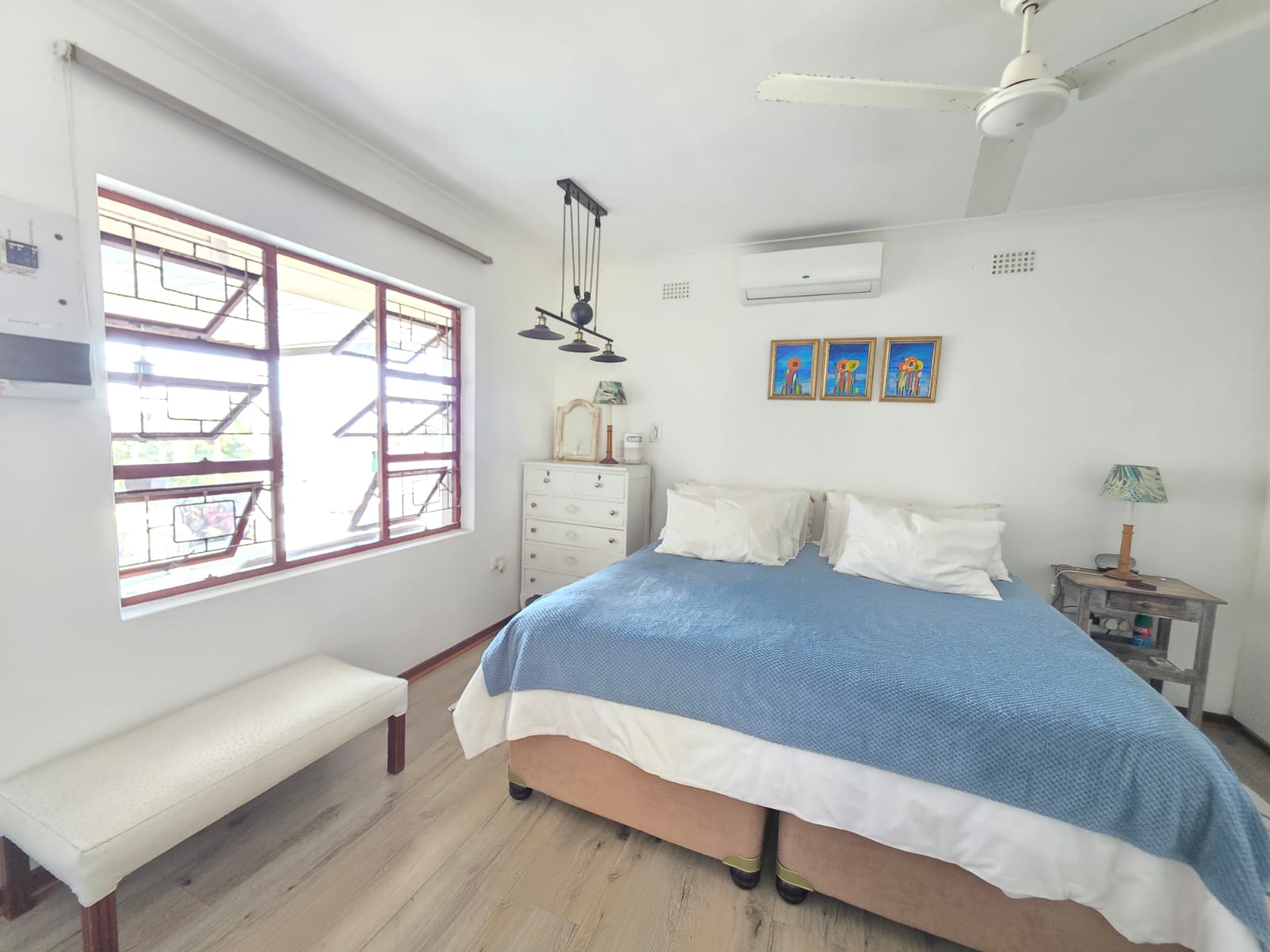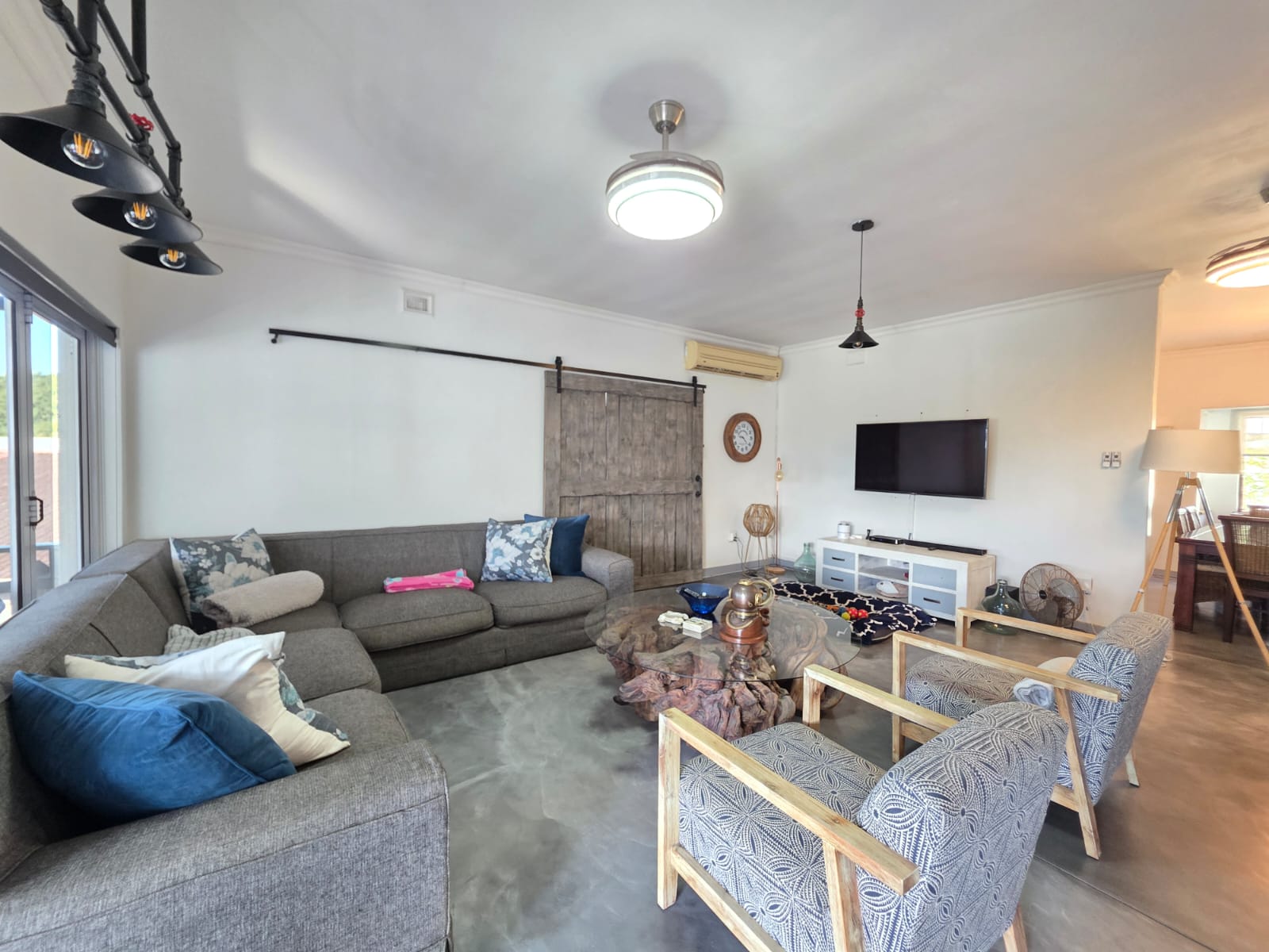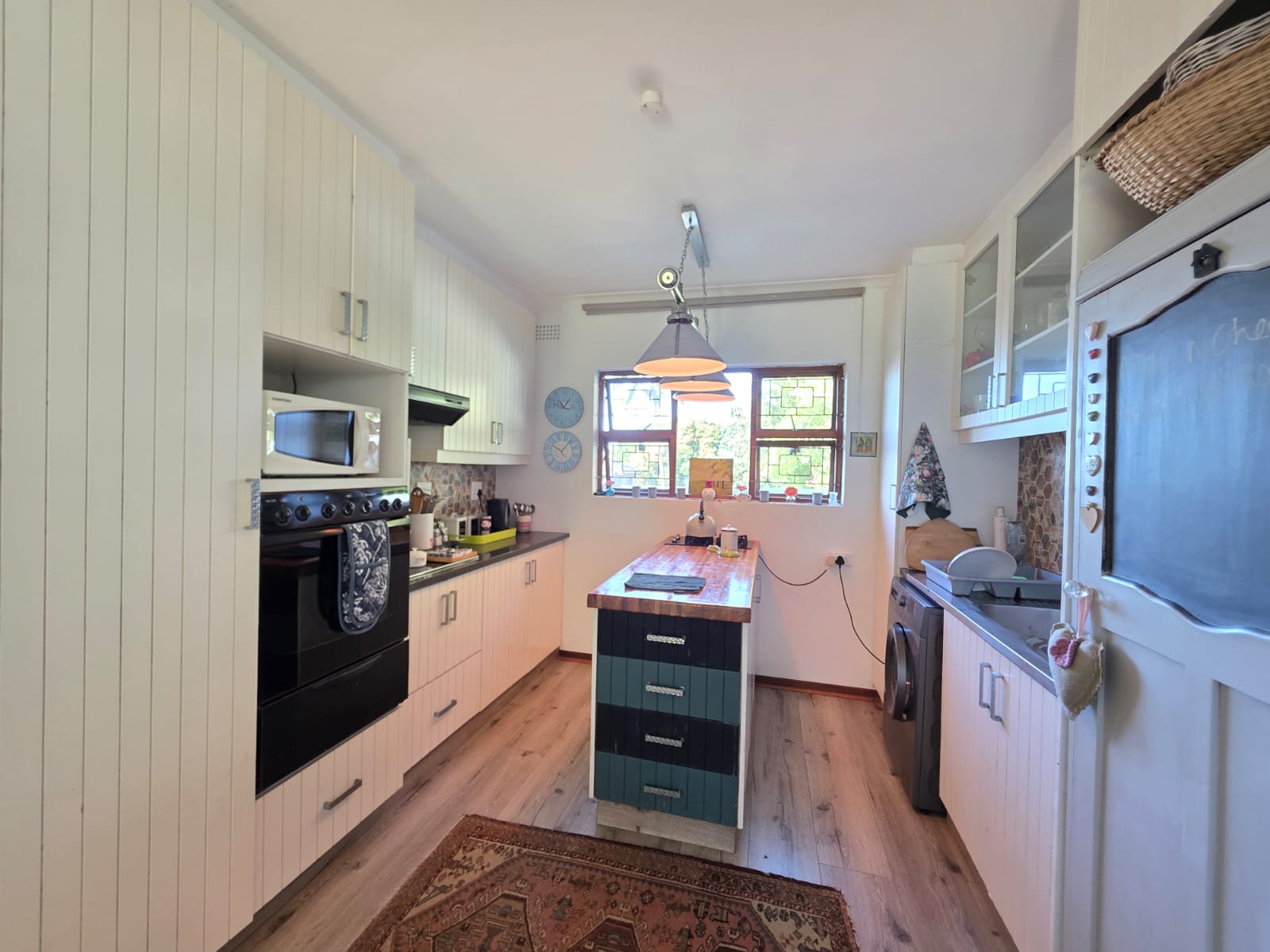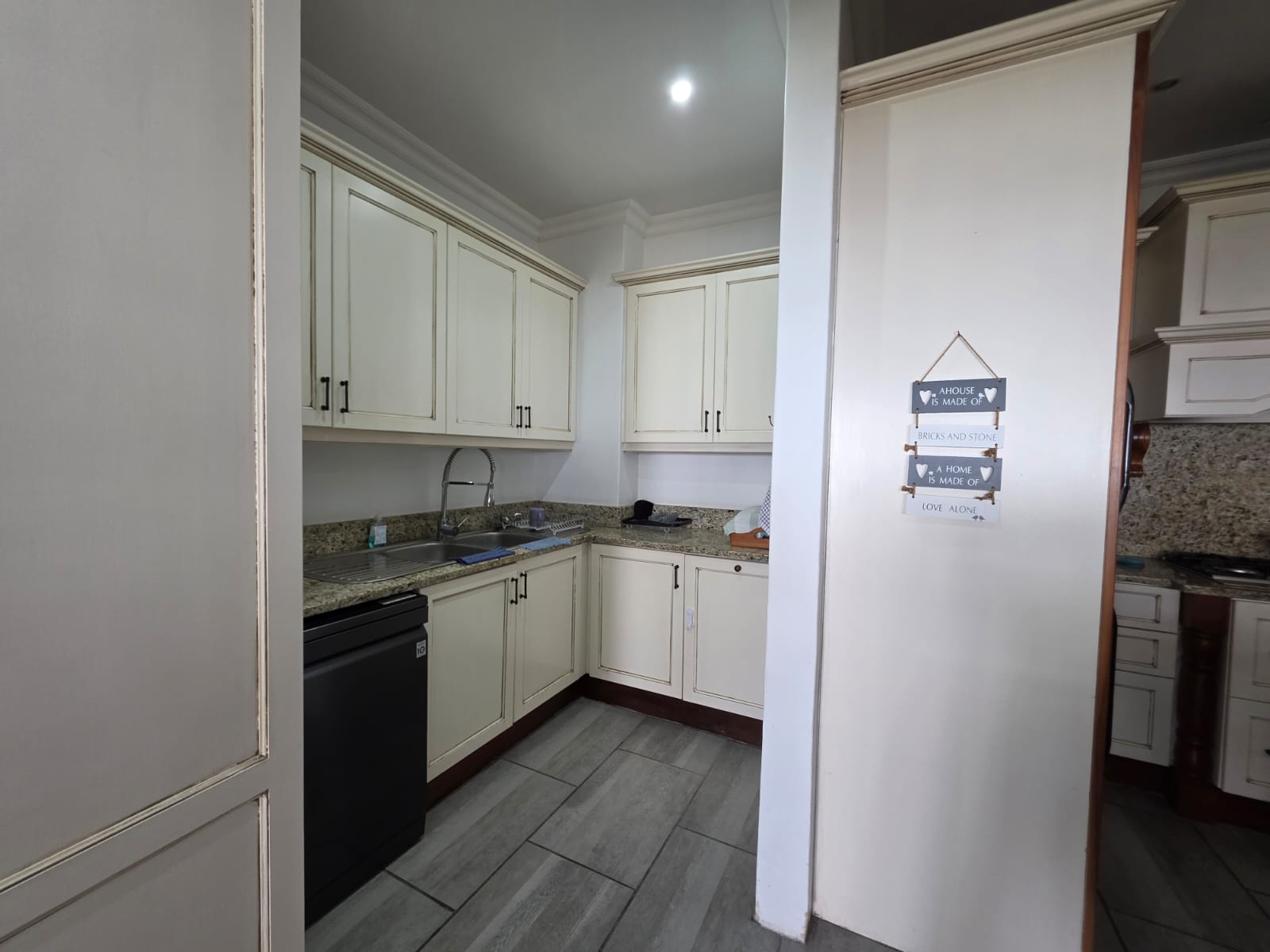 Step into a bright, welcoming home where spacious living areas and thoughtful design create an ideal space for relaxation and entertainment. The heart of the home is the expansive kitchen, a true showstopper with granite countertops, a gas hob, ample cabinetry, and a separate scullery. Whether you're preparing meals for the family or hosting guests, this kitchen is a chef’s dream. Adjacent to the kitchen is a dedicated dining room and a comfortable TV room, both flowing seamlessly out to a large patio where you can enjoy sea views and warm coastal breezes.