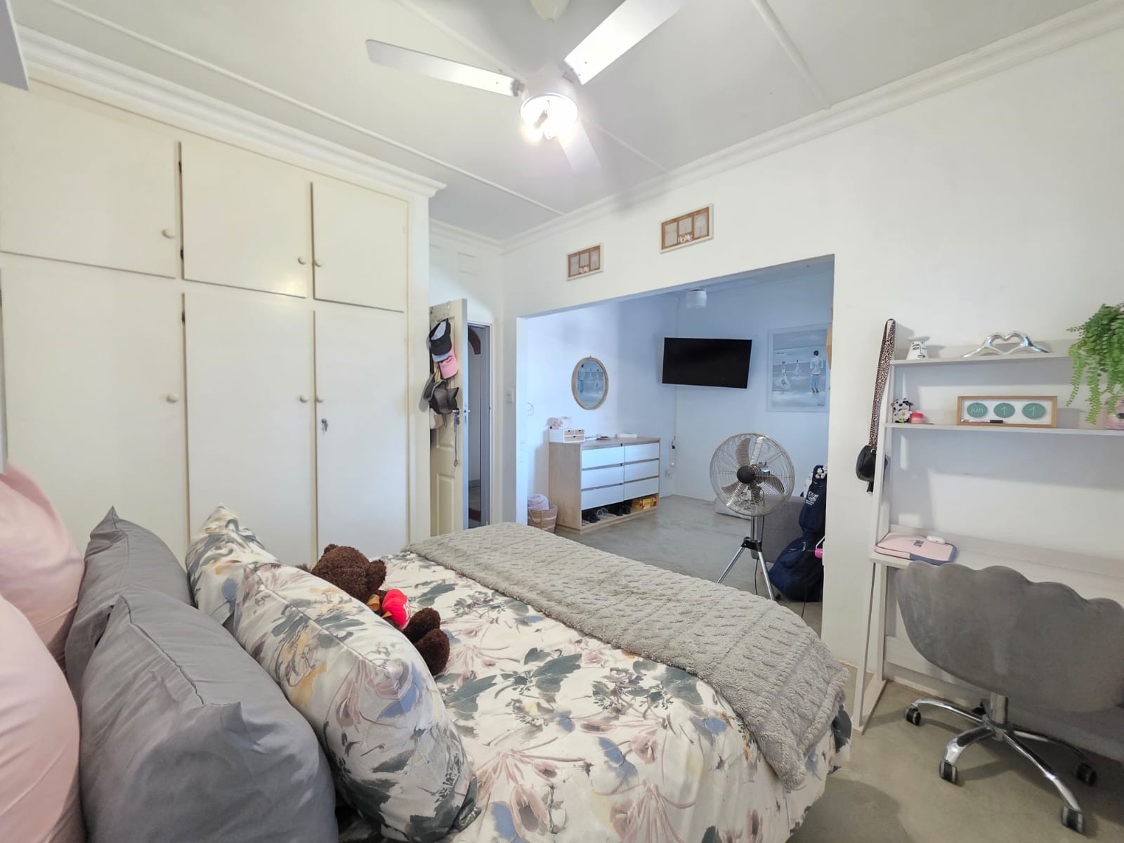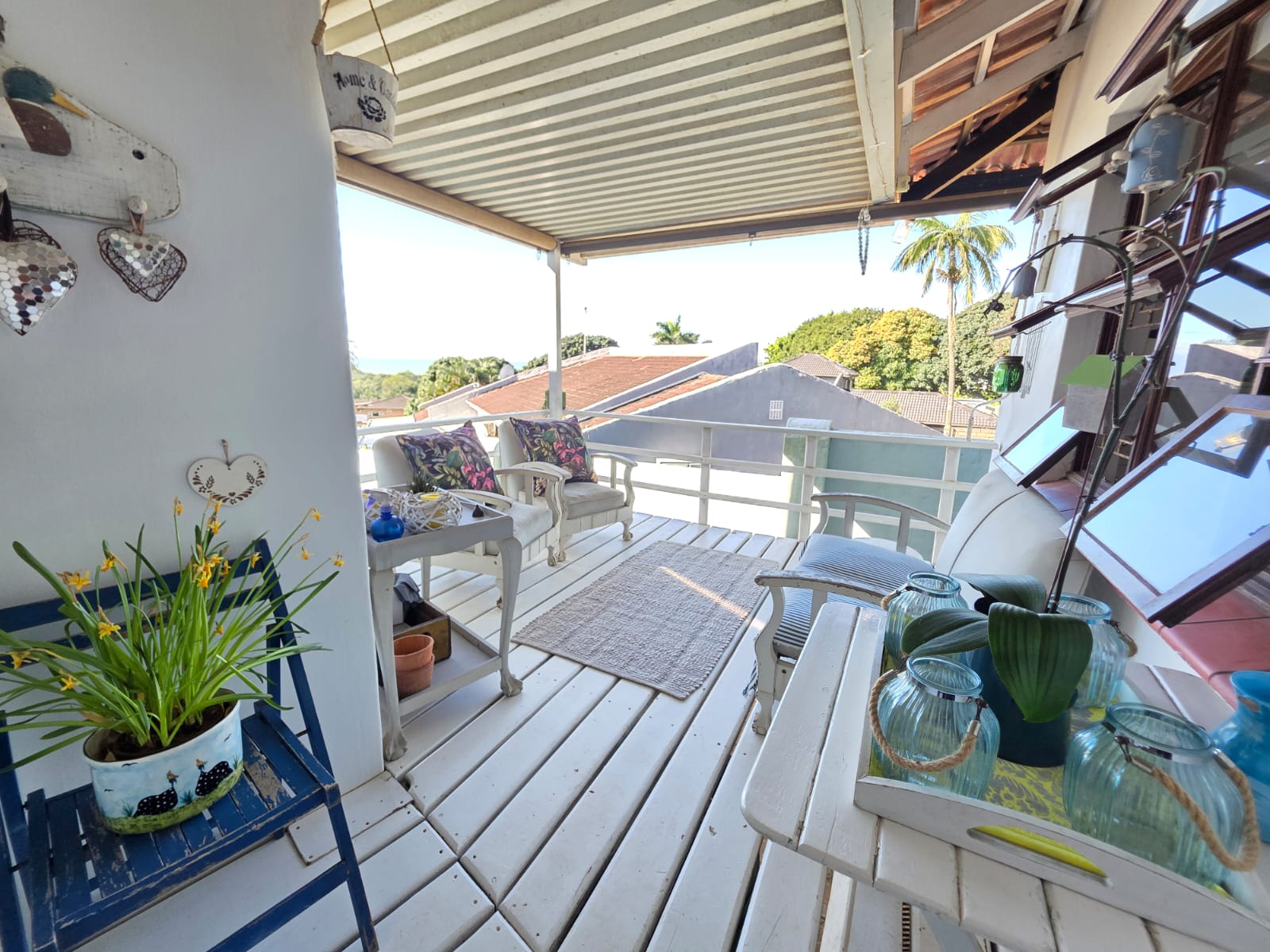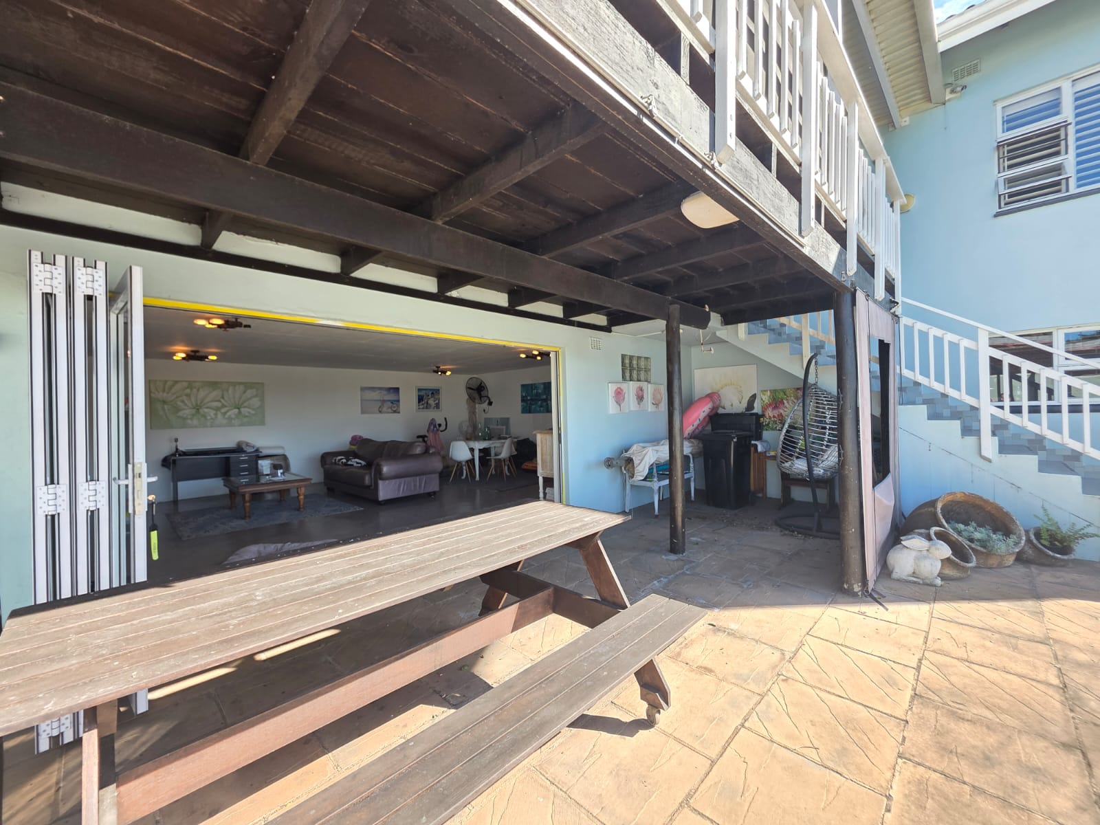 A major highlight of the property is the separate one-bedroom garden cottage, ideal for extended family, guests, or as an income-generating rental. The flat offers open-plan living with a lounge, dining area, and kitchen, along with a private patio that enjoys distant sea views.