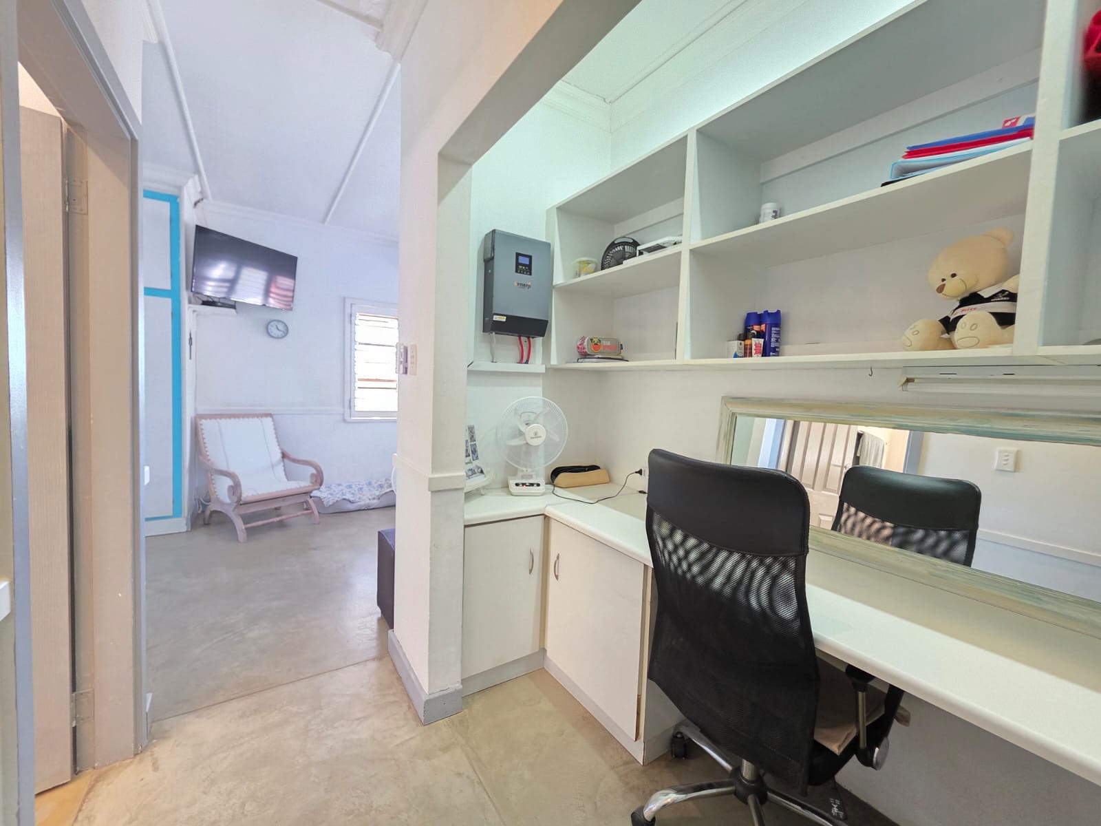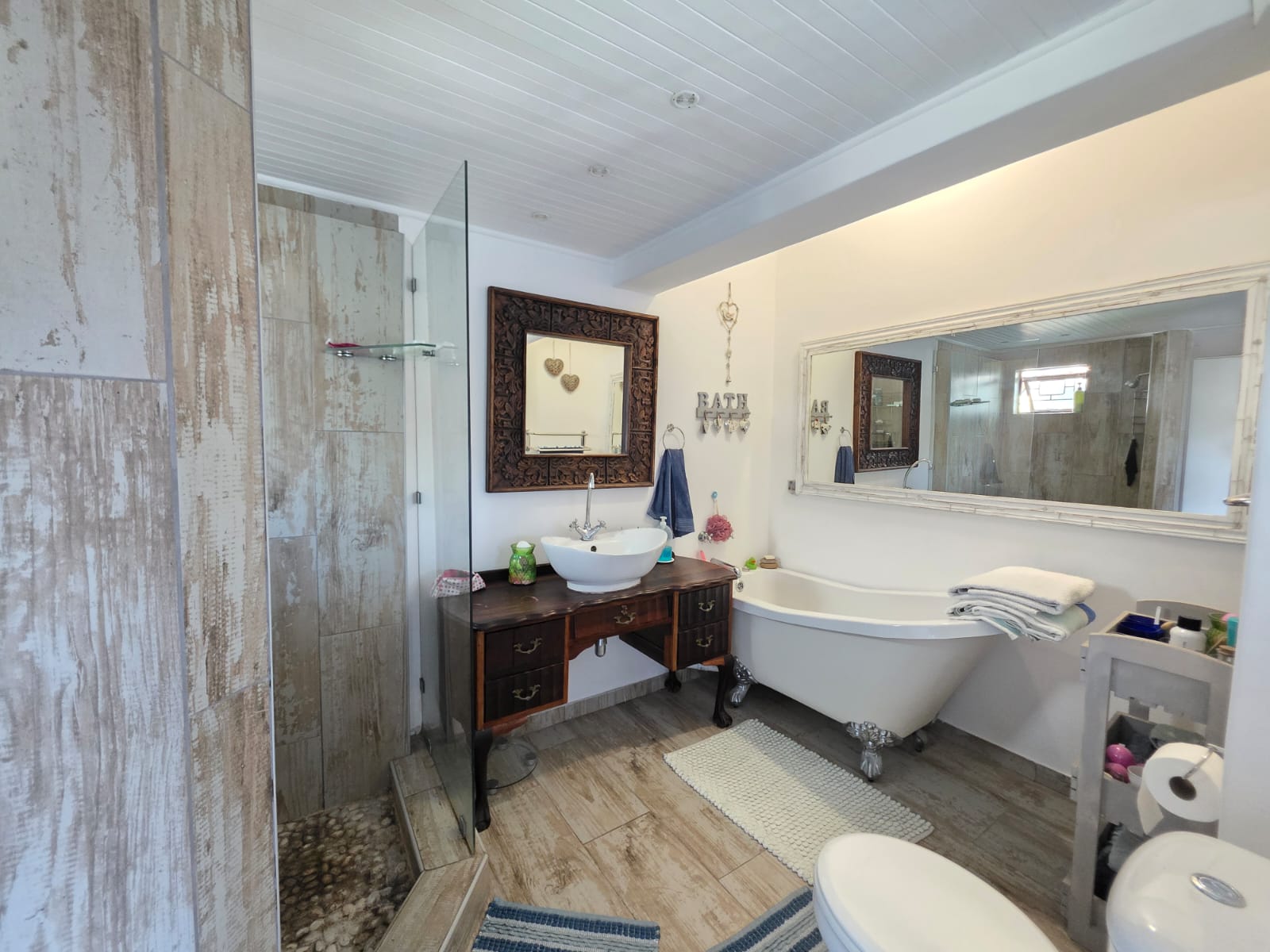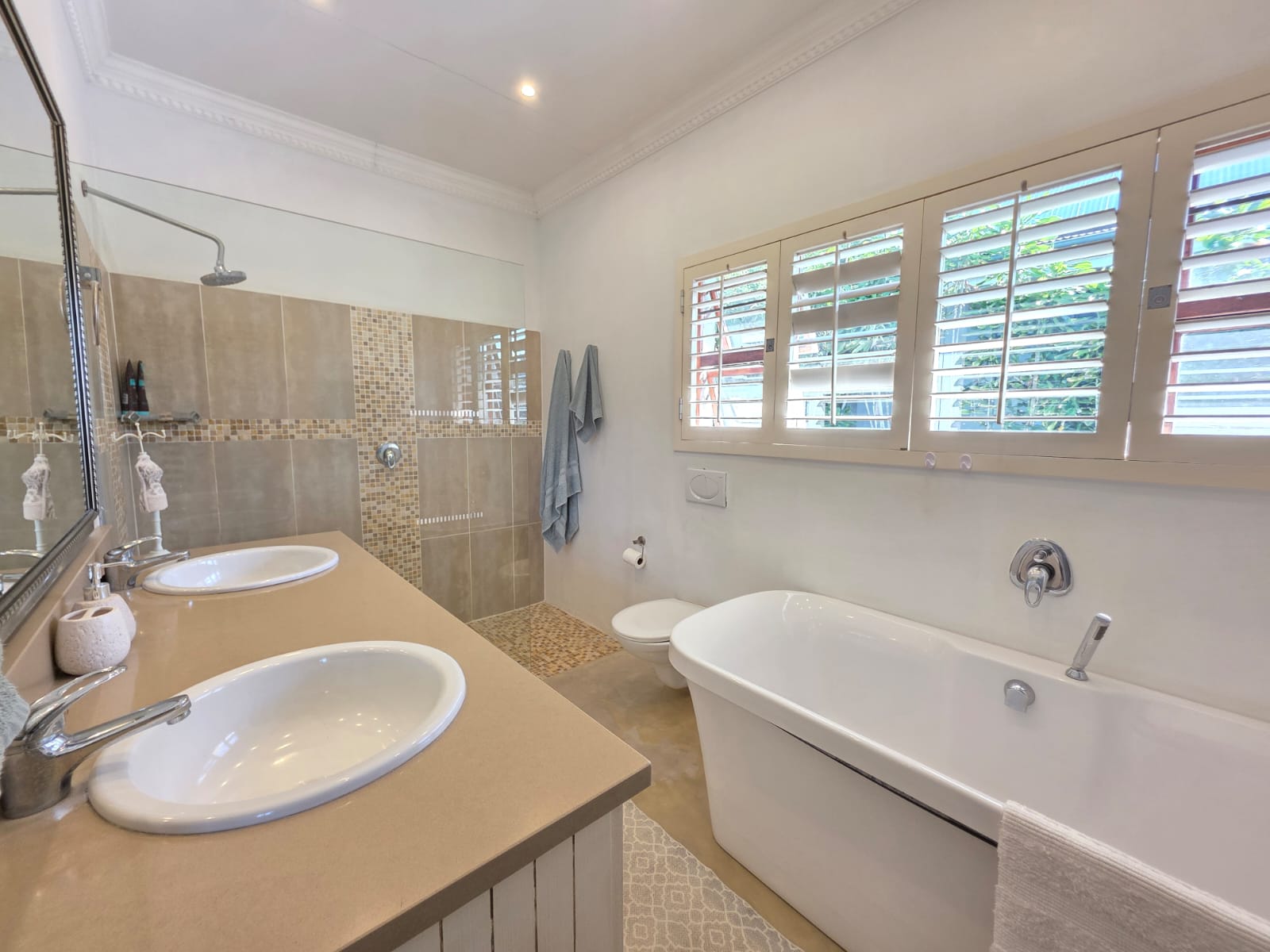 A major highlight of the property is the separate one-bedroom garden cottage, ideal for extended family, guests, or as an income-generating rental. The flat offers open-plan living with a lounge, dining area, and kitchen, along with a private patio that enjoys distant sea views.