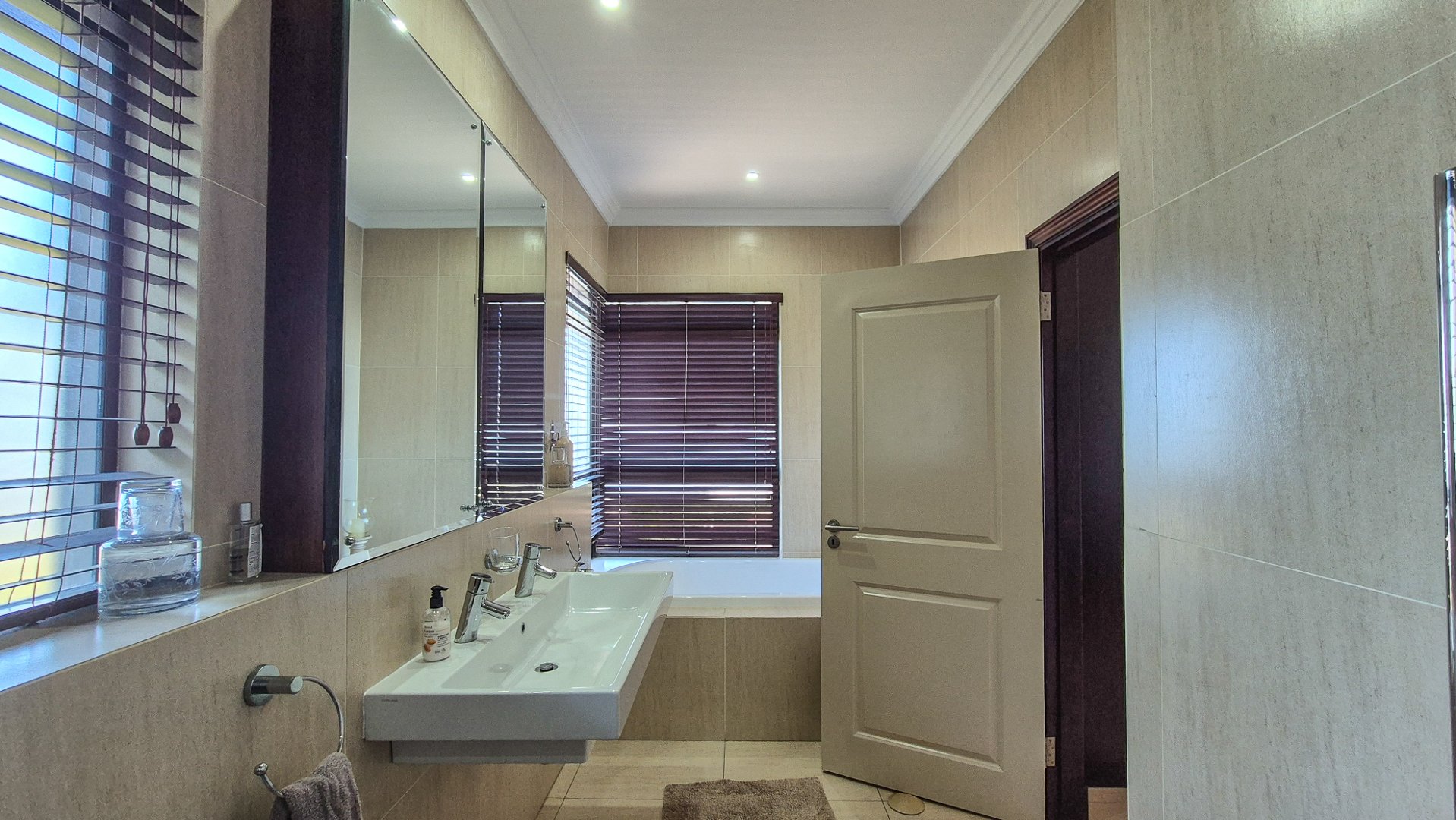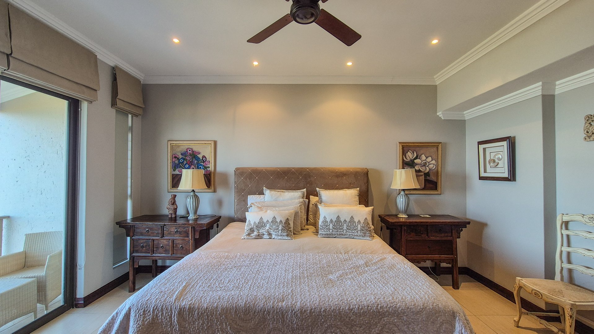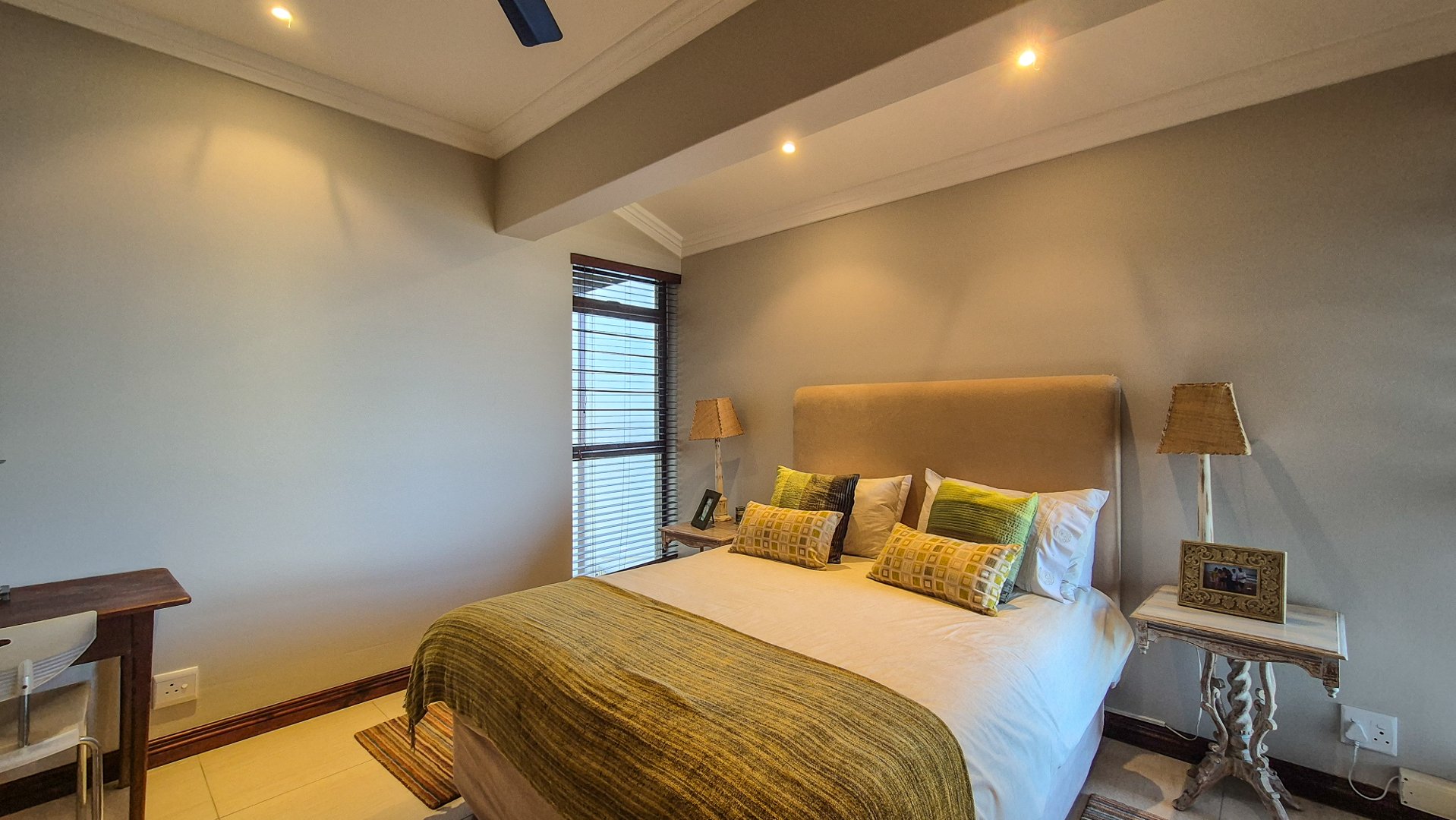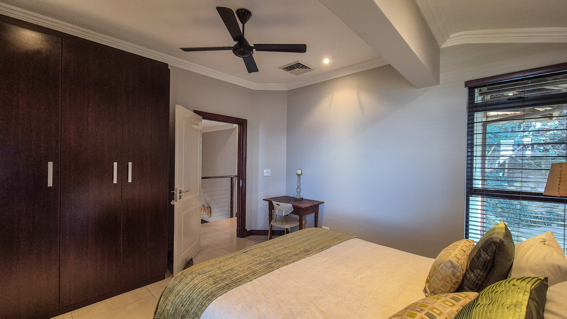 This beautiful Duplex is located in the North Coast Town of Blythedale within a secure Estate called Sovereign Sands. This Secure Complex has direct access to the Beach. Double garage at the bottom with extra storage space and laundry space. The Duplex has the Living space on the 1st floor, with neat as a pin Kitchen , Dinning and the Living room opening up onto the Deck with the most beautiful Seaview's. There is also a build in swimming pool in the Deck. The trees across the street are regularly cut down to allow a magnificent view. The unit feels very spacious, yet private, as there is plenty of space between the neighbor. The outside entertainment area easily seats 40 guests for dinner, and is all on one level. One can braai in the sheltered back yard when the wind blows. Designer kitchen with built-in microwave and Blum grocery cupboard, lift-up horizontal cupboard doors, mosaic tiles and glass backsplash