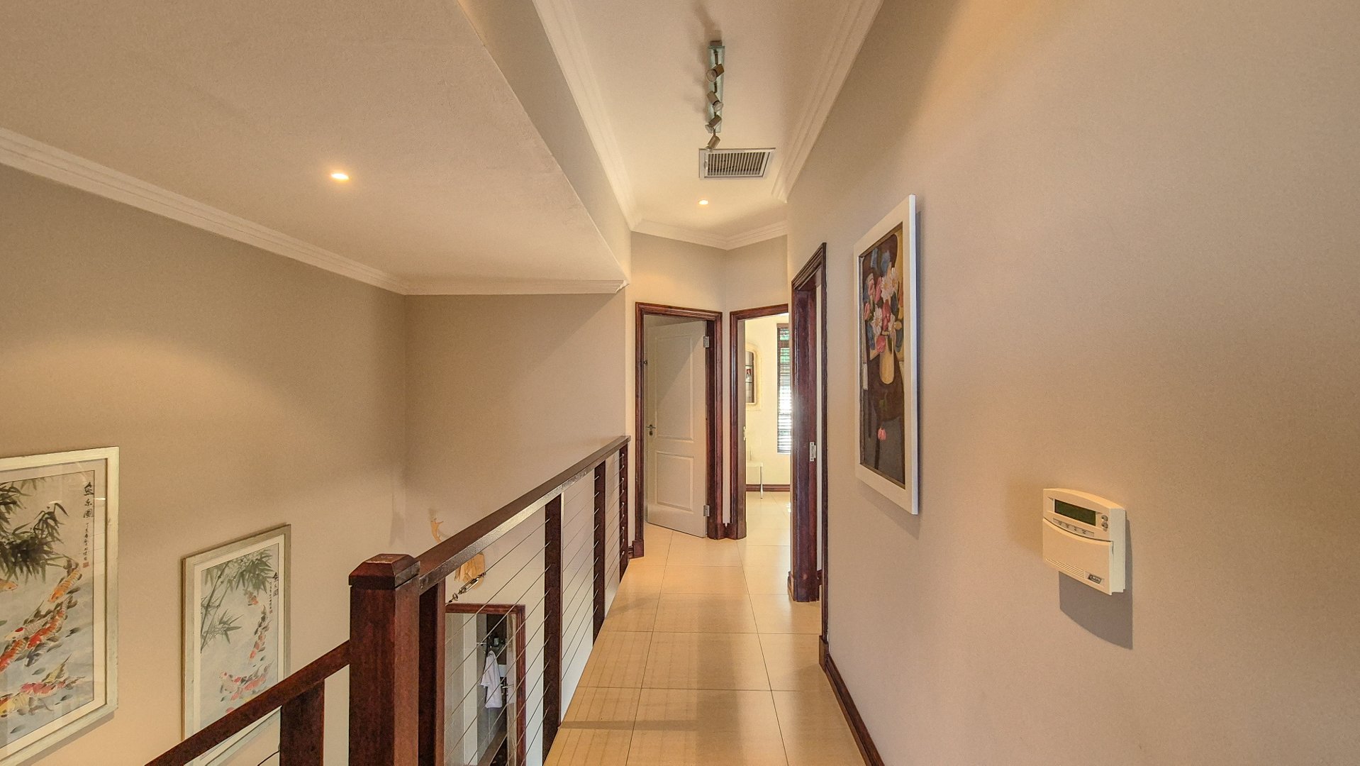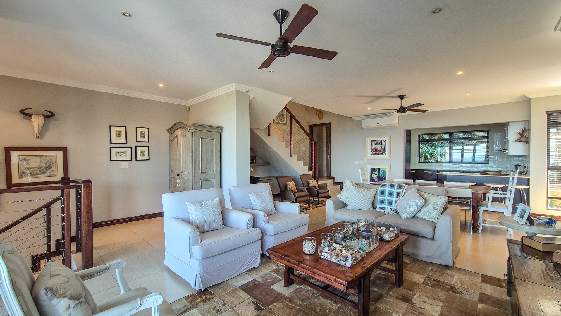 Upstairs you have three bedrooms and two bathrooms. The main en suite has a small balcony with the most perfect view. Whilst we were at the house we could see the whales swim by. This home has been superbly maintained.