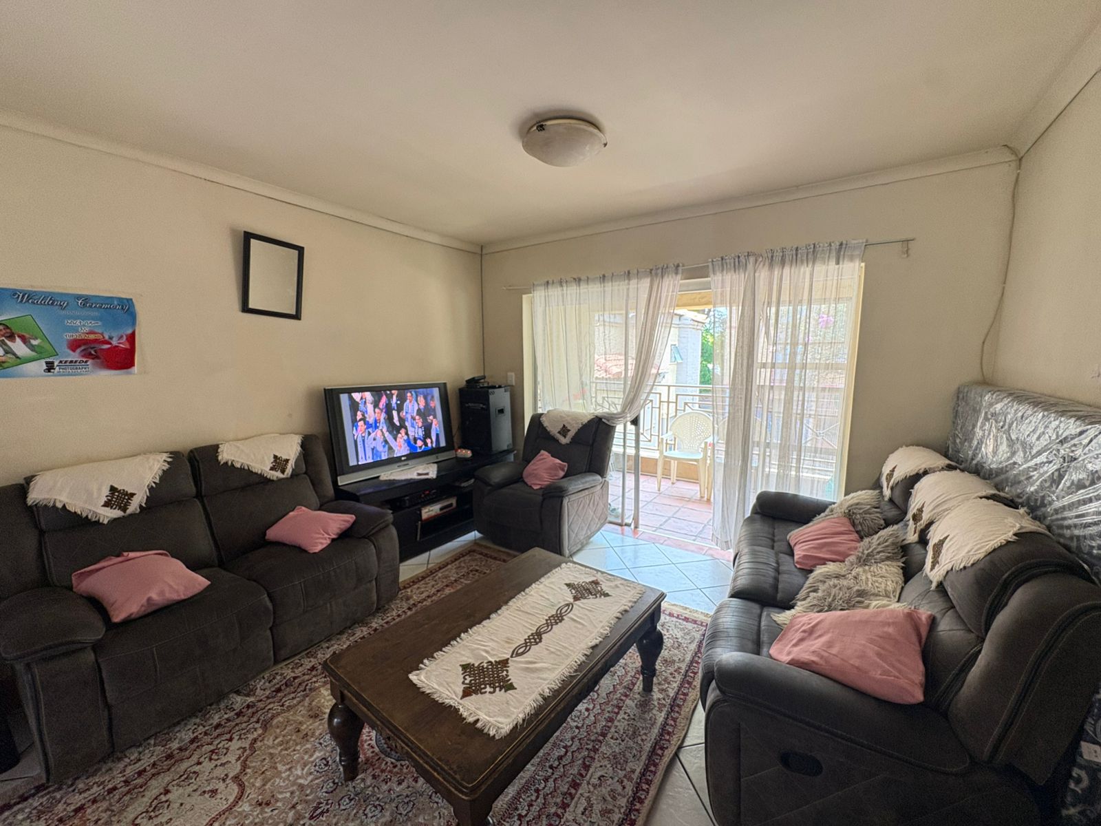 The apartment features three bedrooms with built in cupboards and two bathrooms, providing convenience for family living or shared accommodation. The finishes are more traditional, offering an opportunity for a new owner to update and personalise the space over time.
