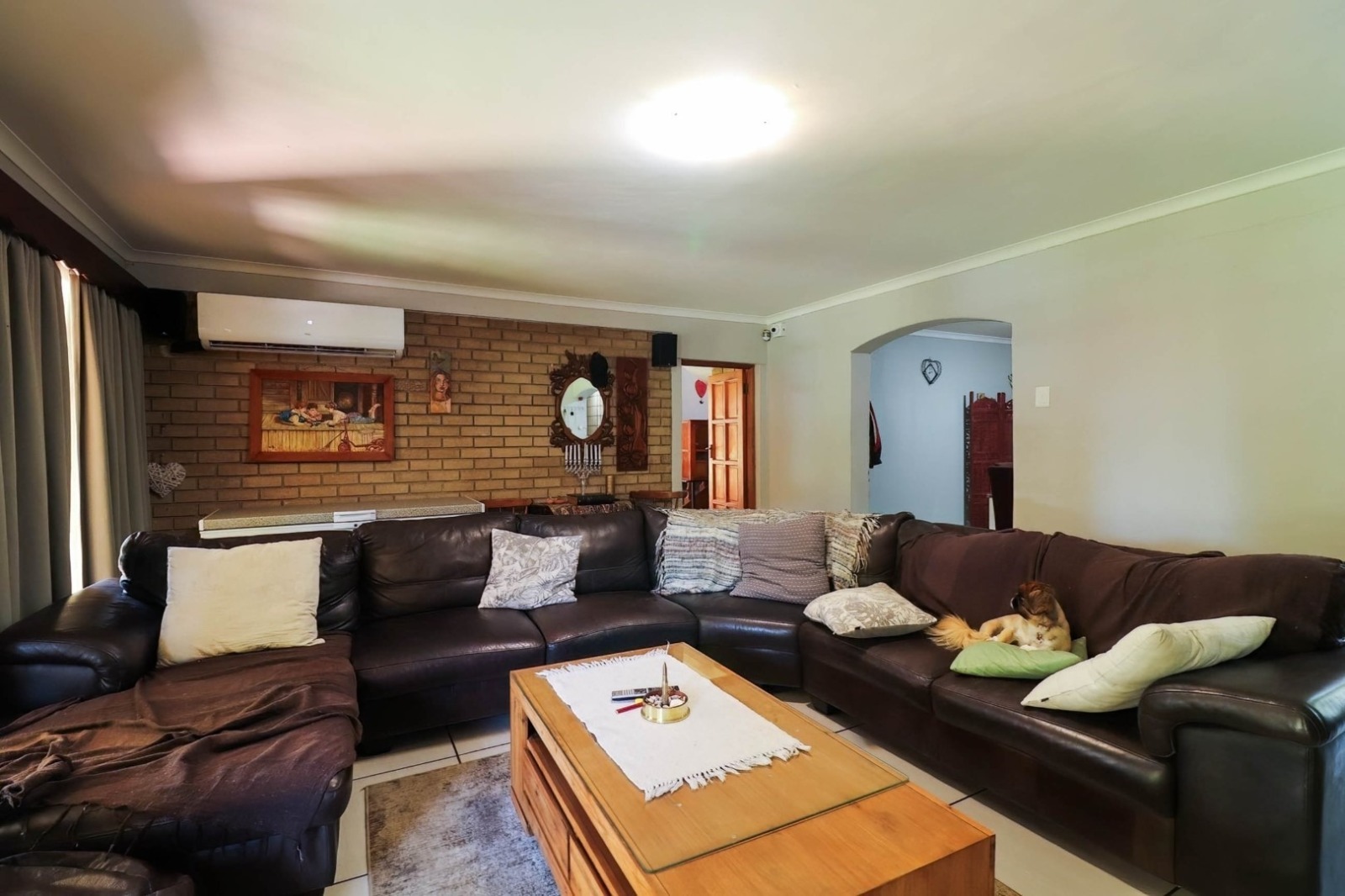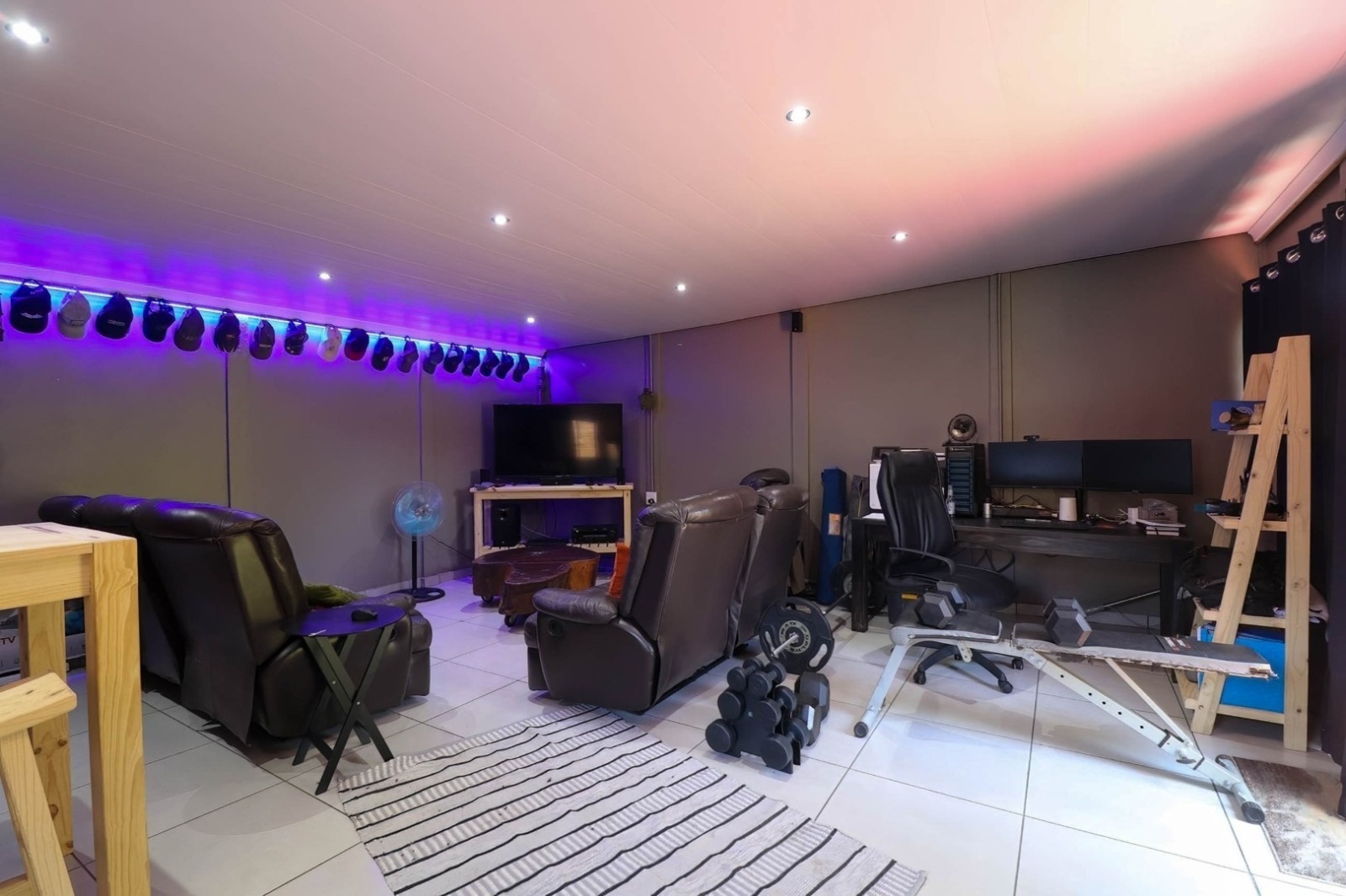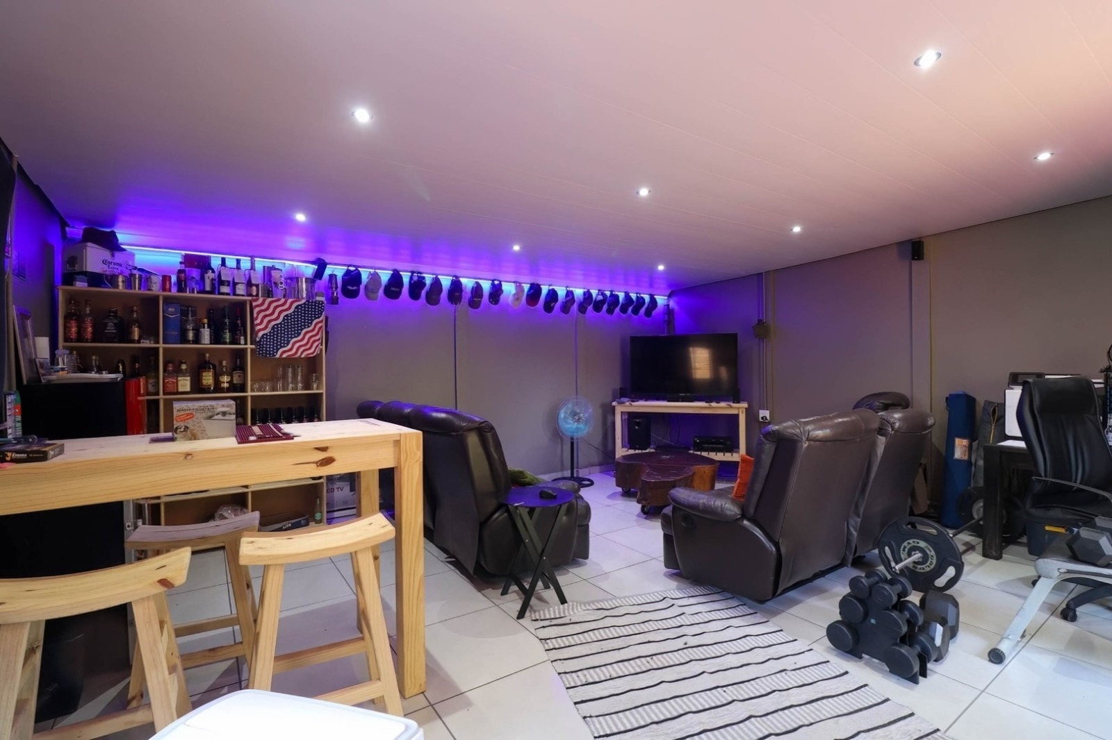 For the ultimate in relaxation and entertainment, discover a 6x6 precast building transformed into a trendy man cave. Adjacent to a patio and swimming pool is a rondavel with a built-in braai and air conditioning, creating the ideal spot for hosting gatherings.