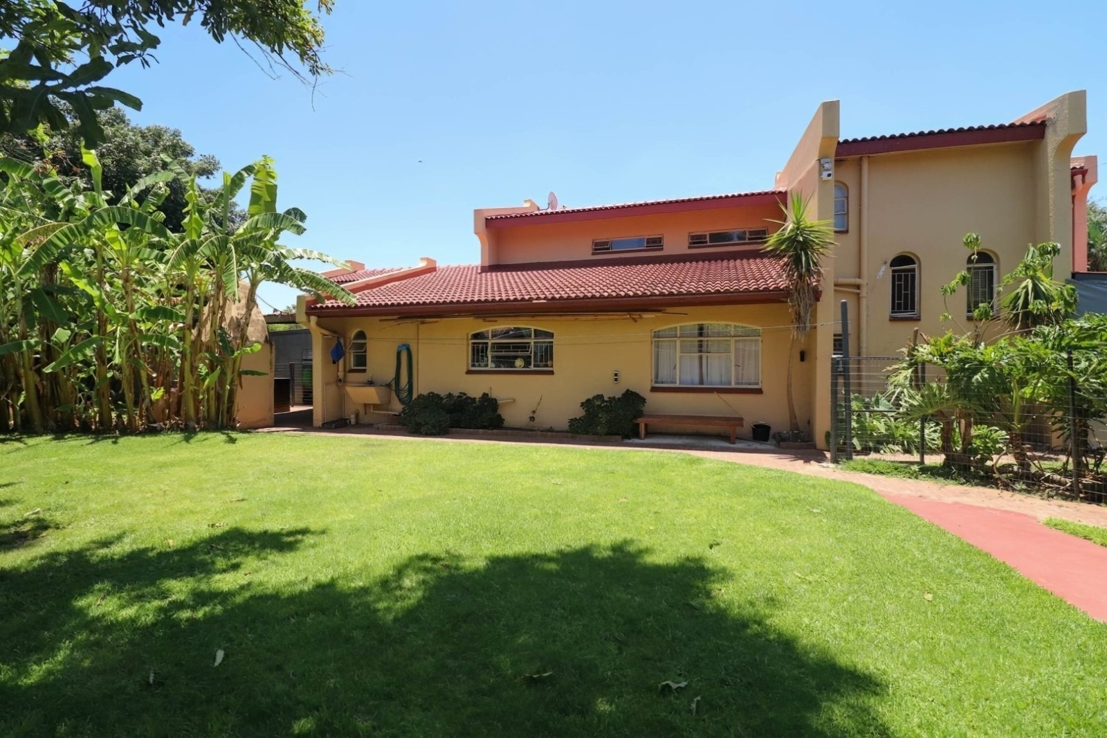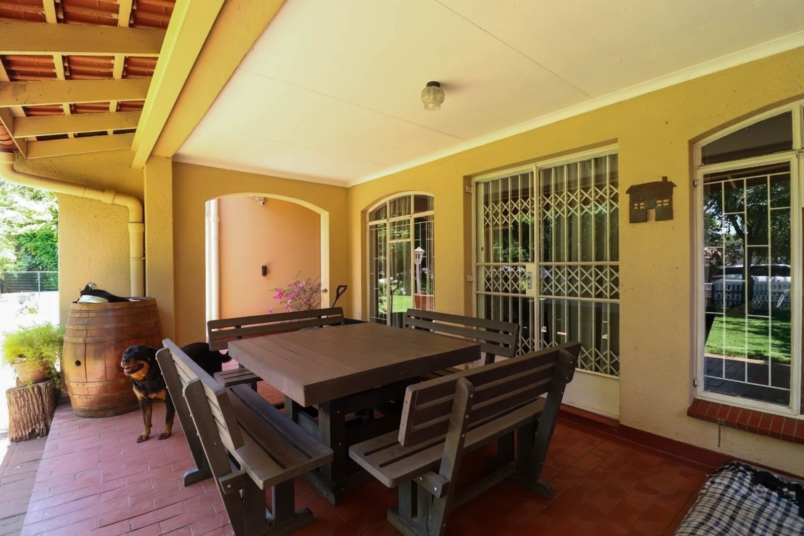 Step into the expansive yard, adorned with a magnificent garden and complemented by a borehole supplying the house and an automated irrigation system. Water worries are a thing of the past with 2 Jojo water tanks and pressure pumps.