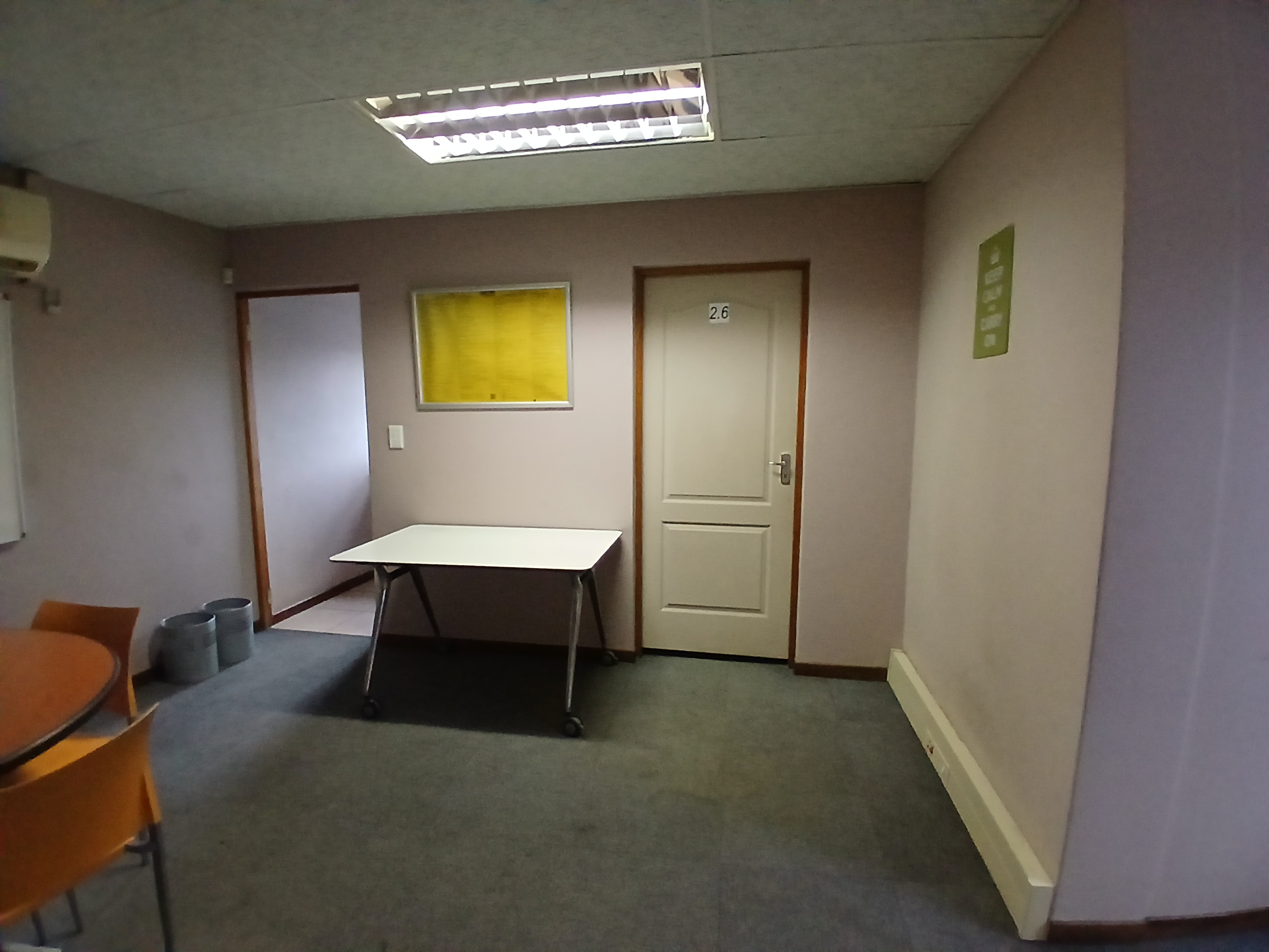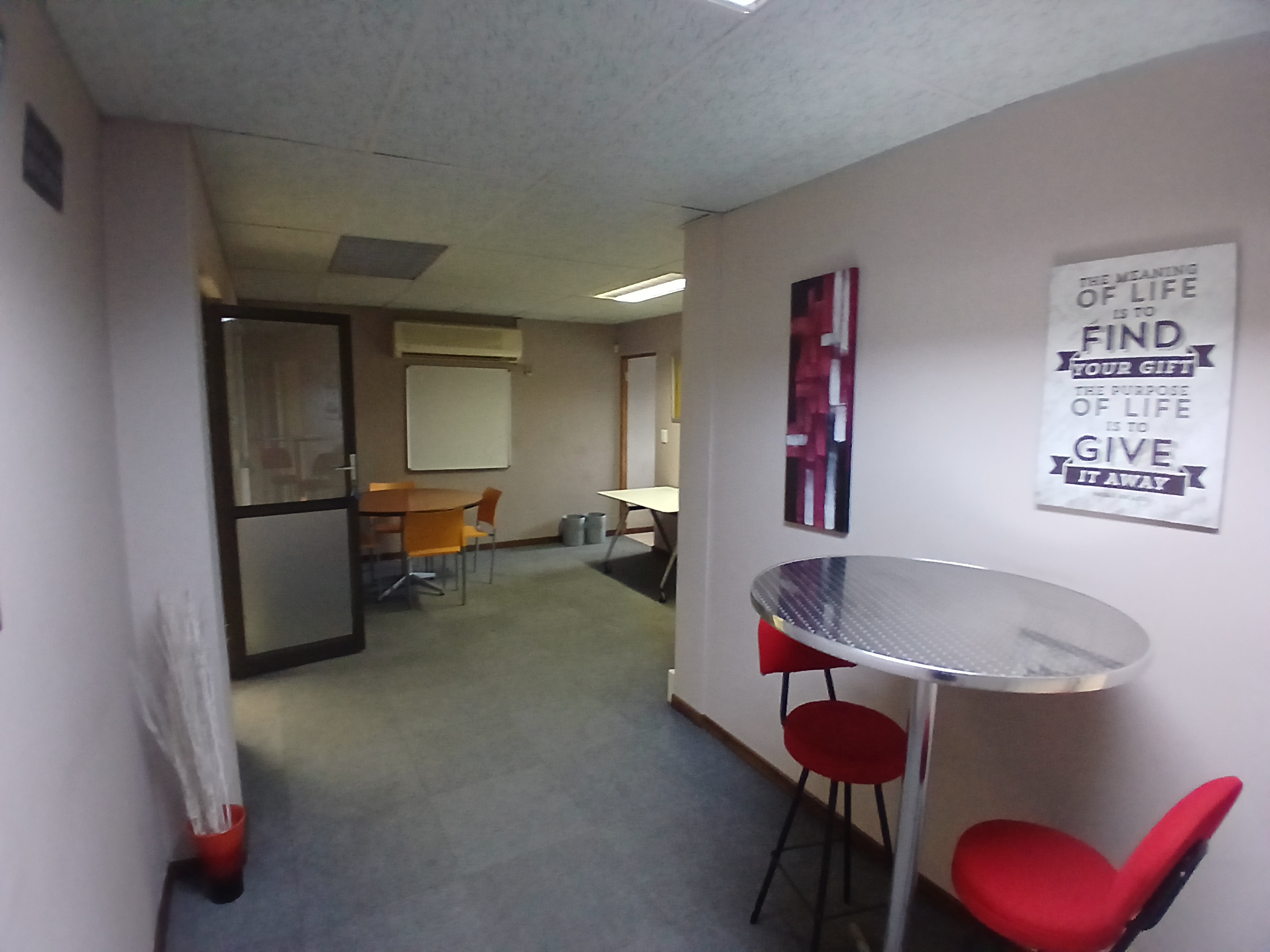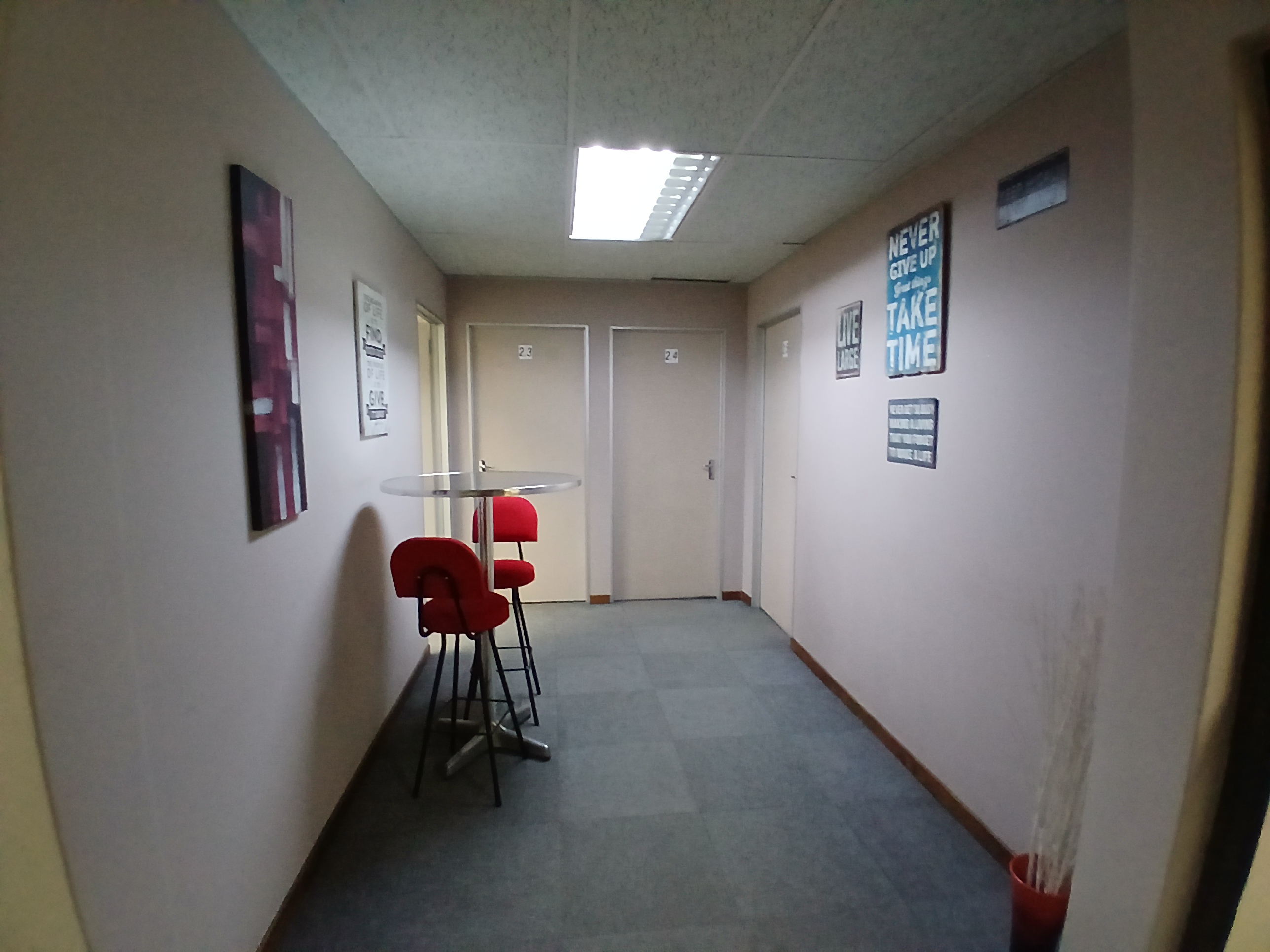 Situated on the first floor of a vibrant office park, this charming 14-square-meter unit offers a cozy workspace with a lovely view of Rustenburg and its beautiful treetops. The unit is private, while the kitchen, bathrooms, and common areas are shared with other tenants. You'll be greeted daily by a welcoming security guard and an on-site maintenance professional, ensuring a hassle-free experience.