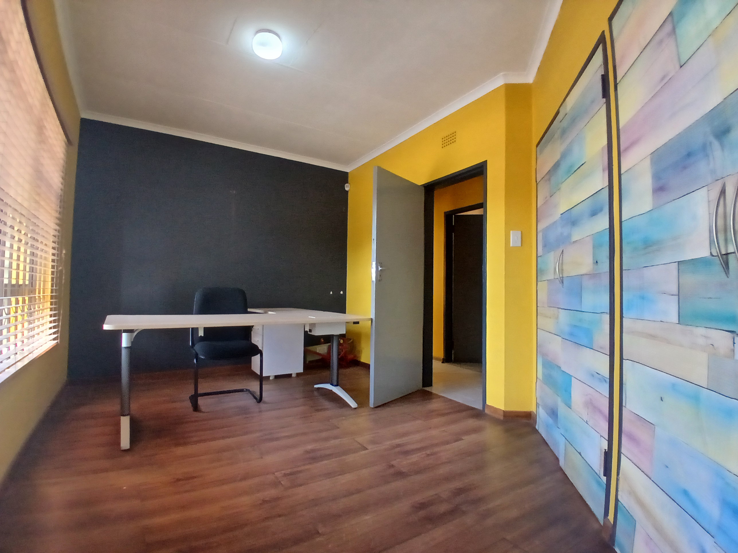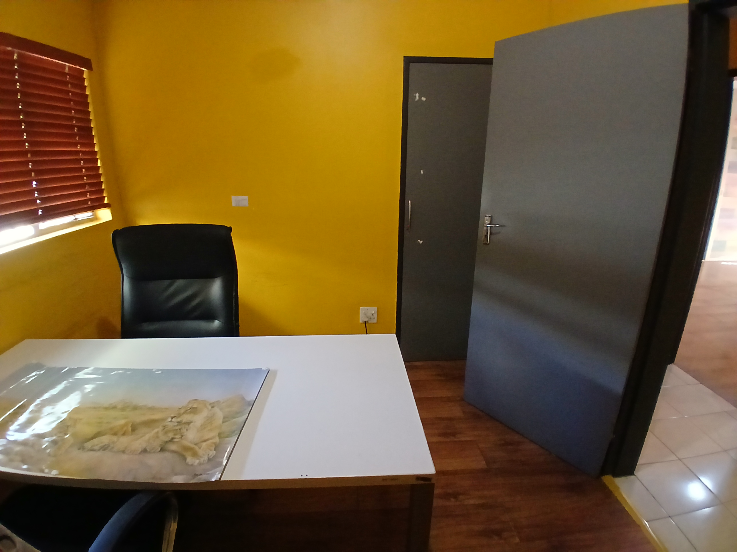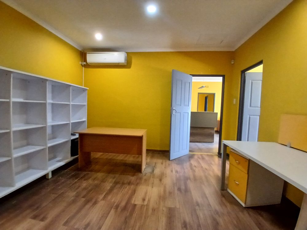 The property is single-storey, welcoming you with a spacious reception area that flows seamlessly into four offices on the right and another set on the left. Each office is fitted with its own air conditioner, ensuring comfort during the warmer months.