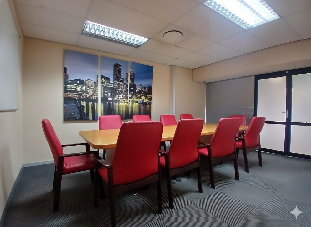 The layout is versatile and functional, offering a welcoming reception area, six private offices, and one or two boardrooms depending on your configuration needs. The building is exclusively managed by a reputable company, ensuring that maintenance, communication, and operational matters are handled efficiently.