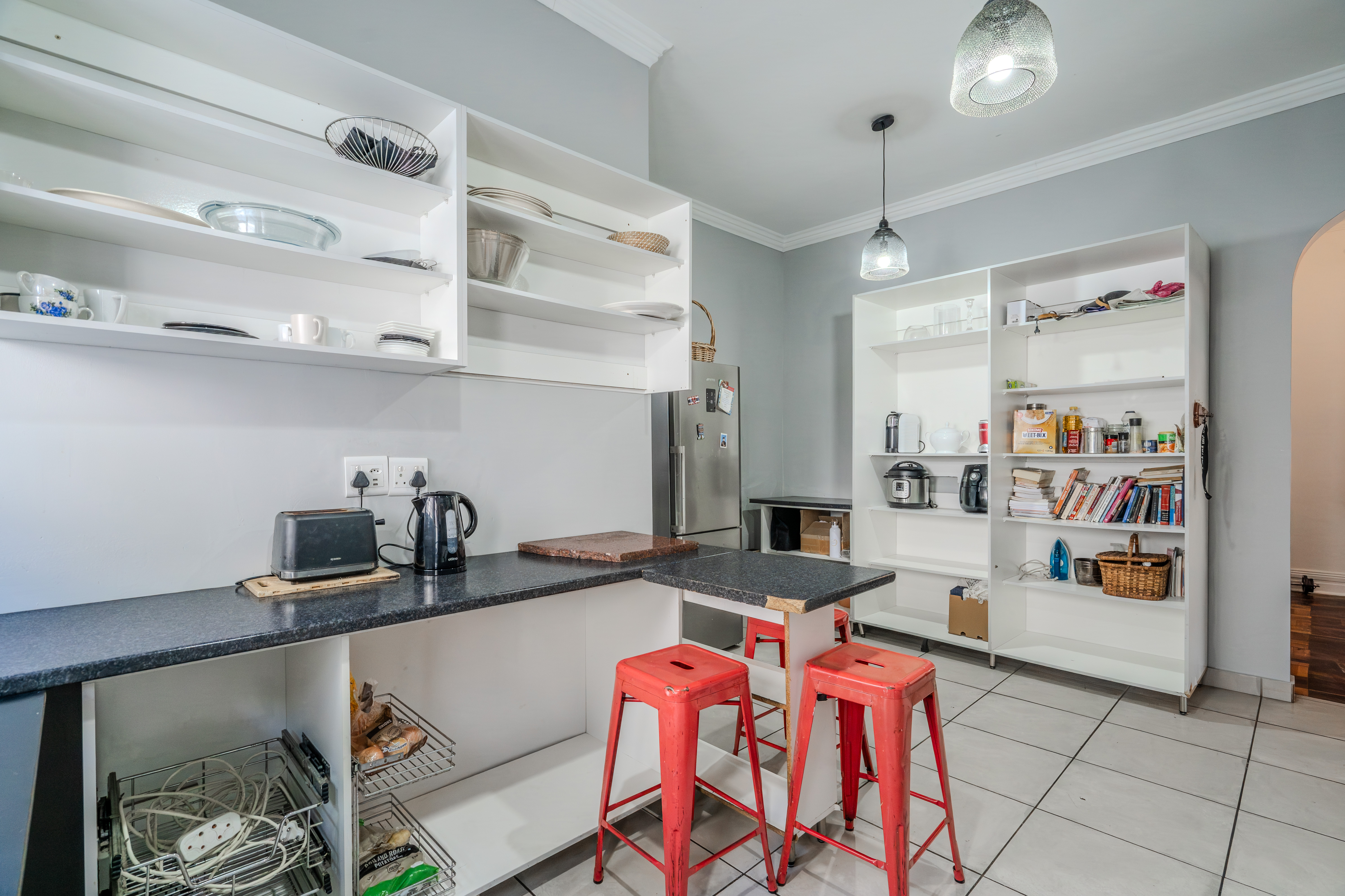 Additional features include a fully walled exterior, built-in wood-burning braai, a large multi-vehicle garage and prepaid electricity to the main house, with separate metering for the flats.