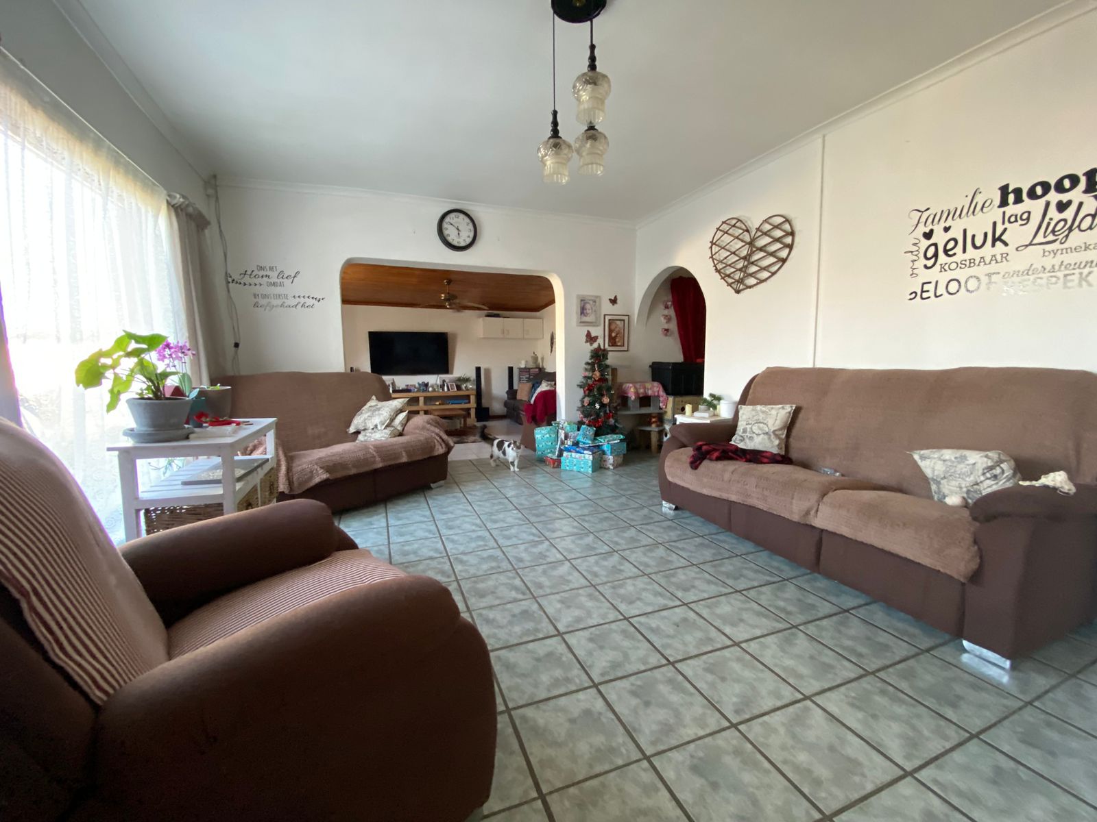 A well-proportioned dining room sits alongside the kitchen, which offers ample cupboard space and a plumbing point, providing a practical and functional layout for family living. The home includes three good-sized bedrooms all with built-in wardrobes, a family bathroom with a bath, and a main bedroom boasting its own en-suite bathroom with a shower.