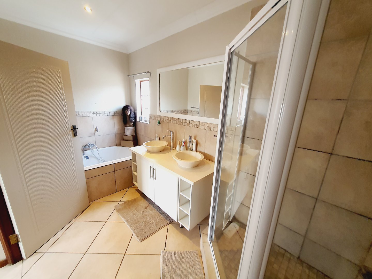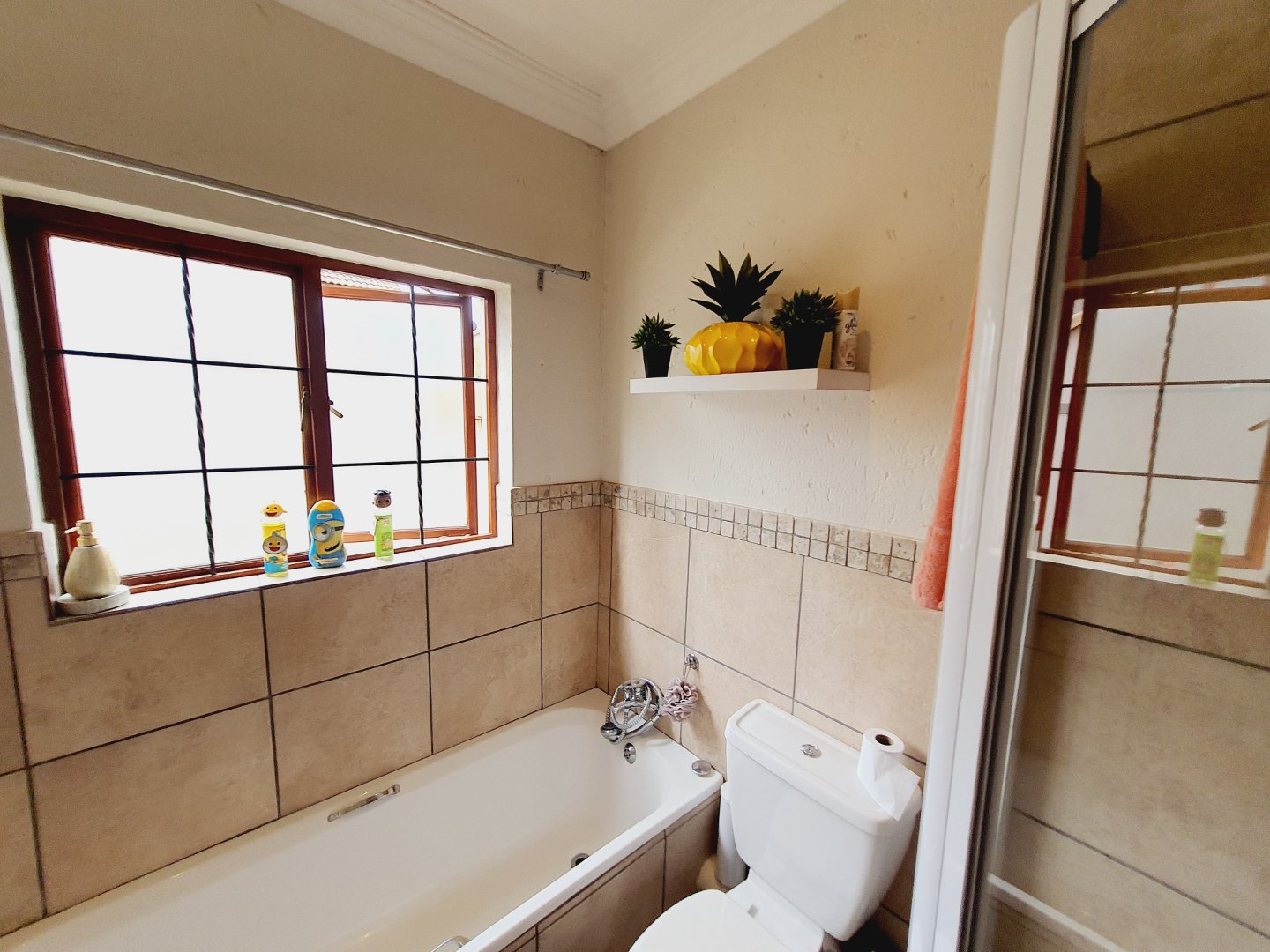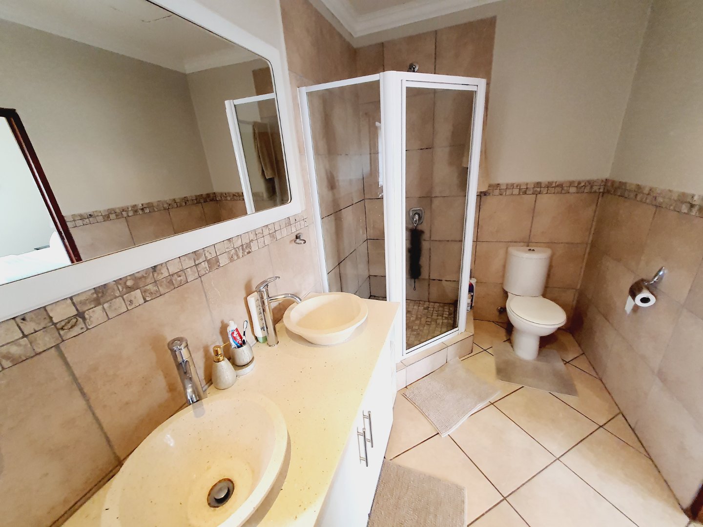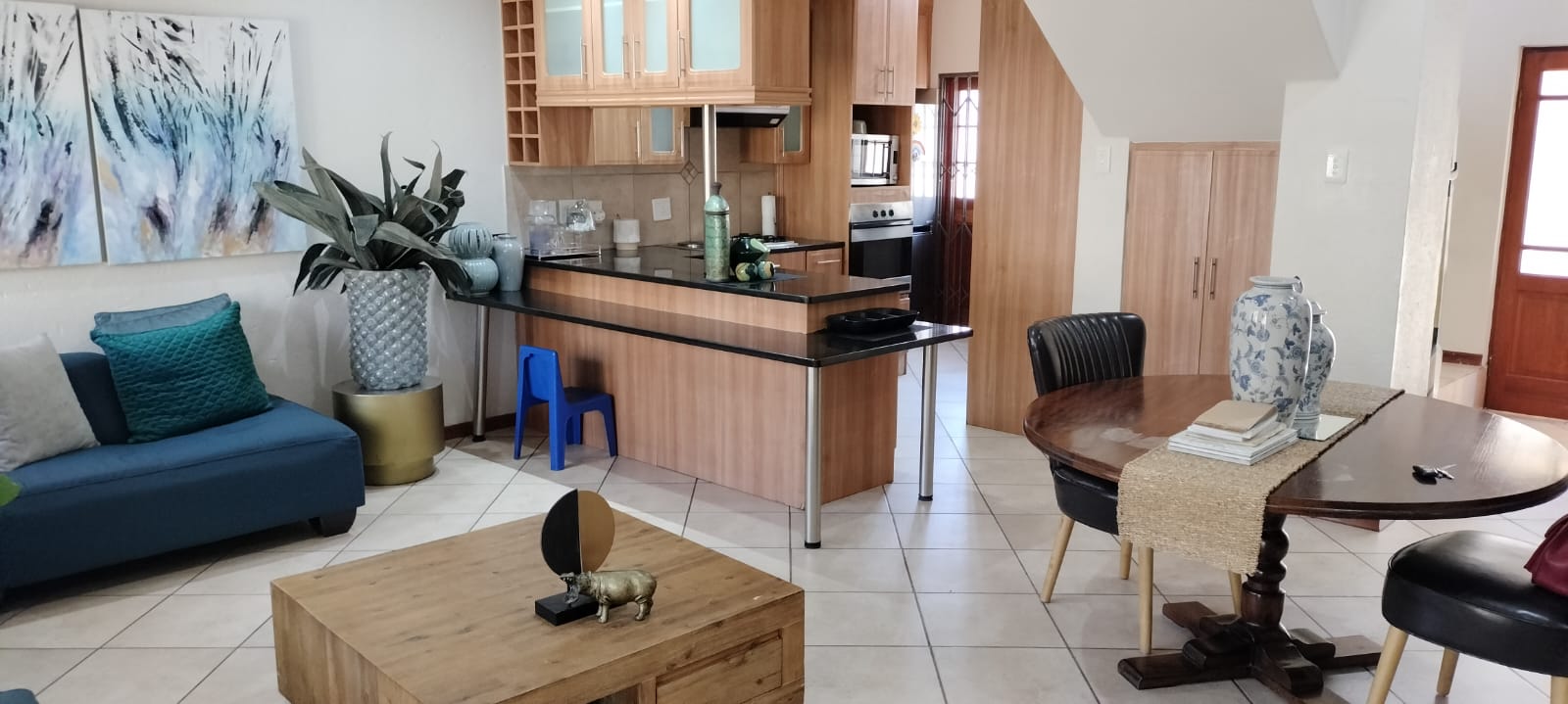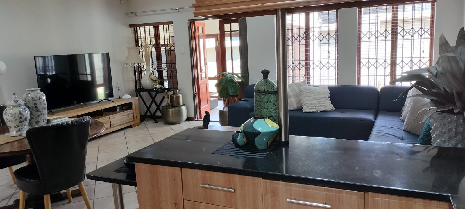 The modern kitchen is a chef's delight, offering plenty of cupboard space and generous countertops and a separate scullery. The kitchen flows effortlessly into the lounge and dining area, creating a warm, cozy environment for family gatherings.
