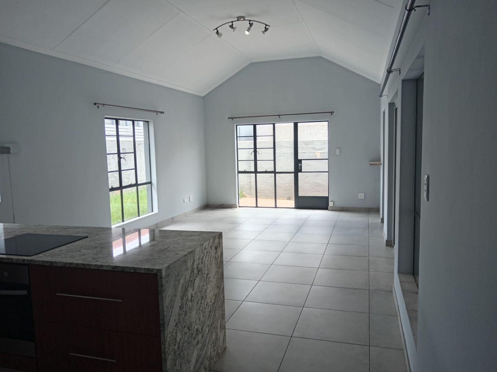 As you step inside, you are greeted by an expansive open-plan living area and kitchen. The standout feature of this home is the extra-high ceilings, which create an incredible sense of depth, light, and airy sophistication. The entire home is finished with sleek, modern tiling, ensuring a clean and contemporary feel throughout.
