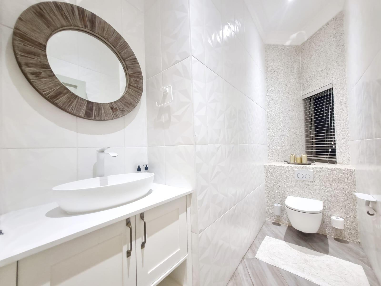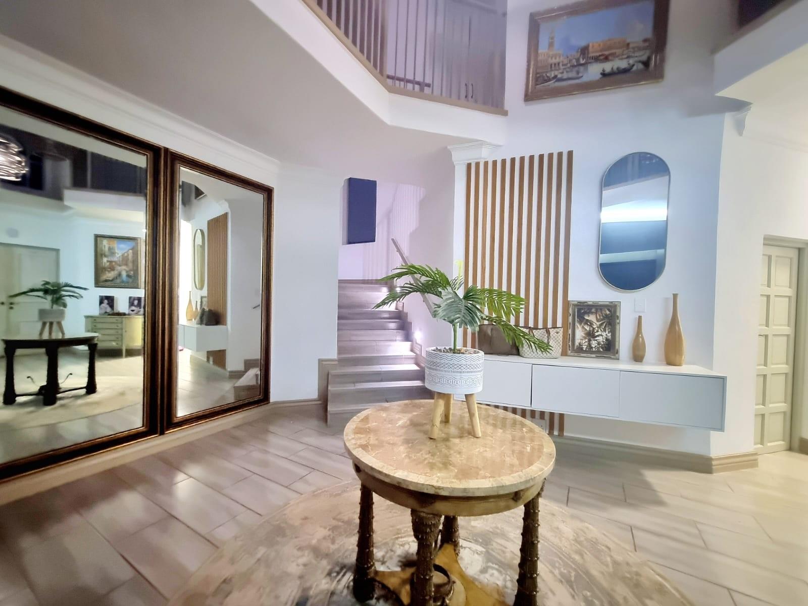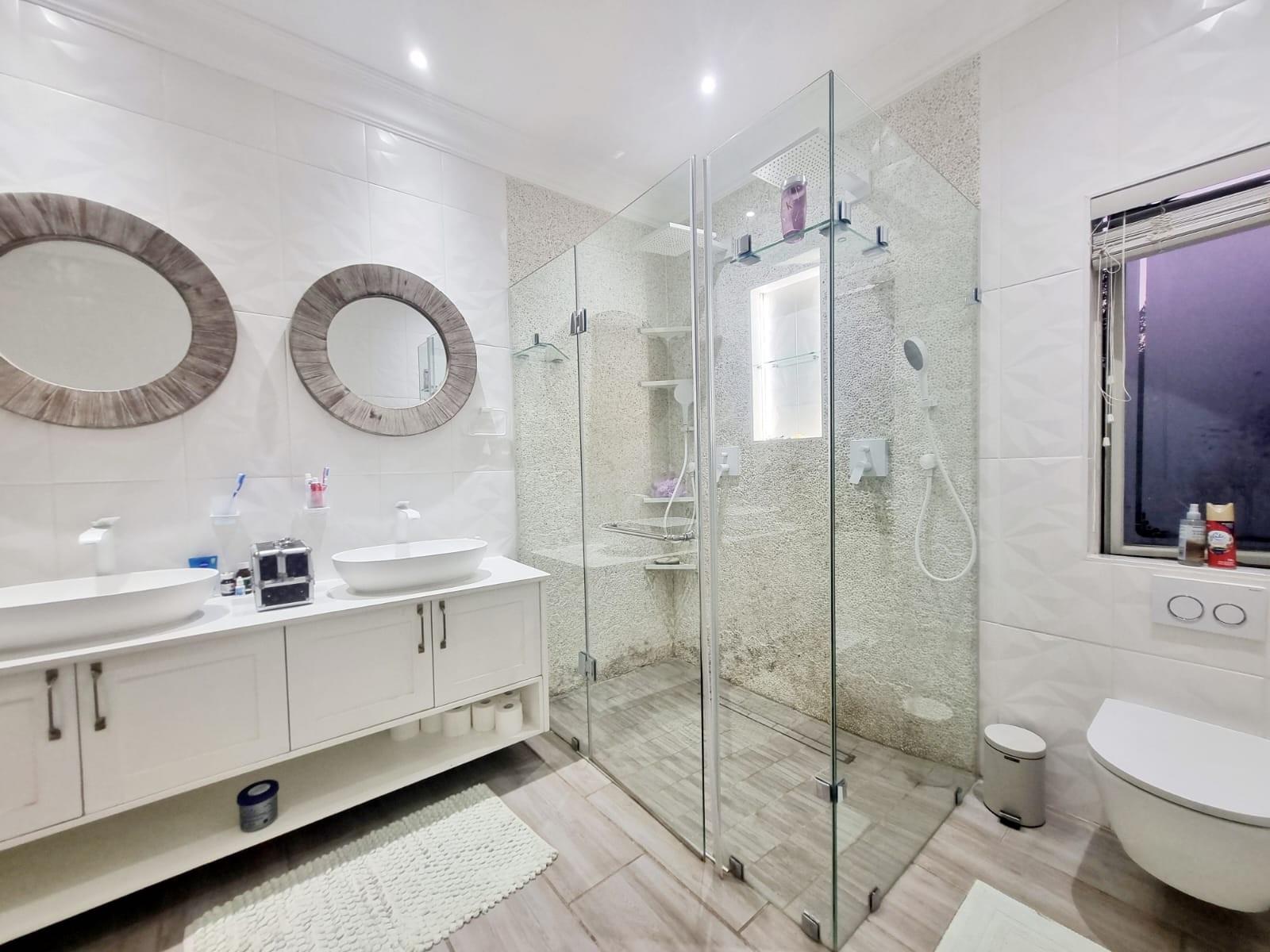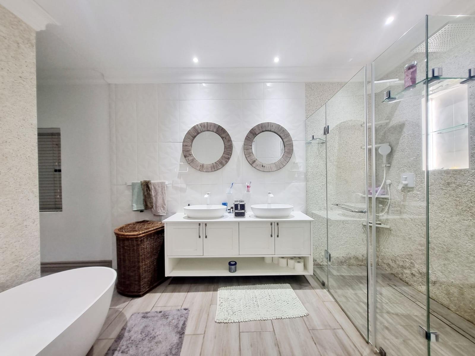 Step inside to discover an open-plan living area that flows effortlessly through stacking glass doors to a covered patio, complete with built-in braai, boma, and a pizza oven – ideal for hosting family and friends.