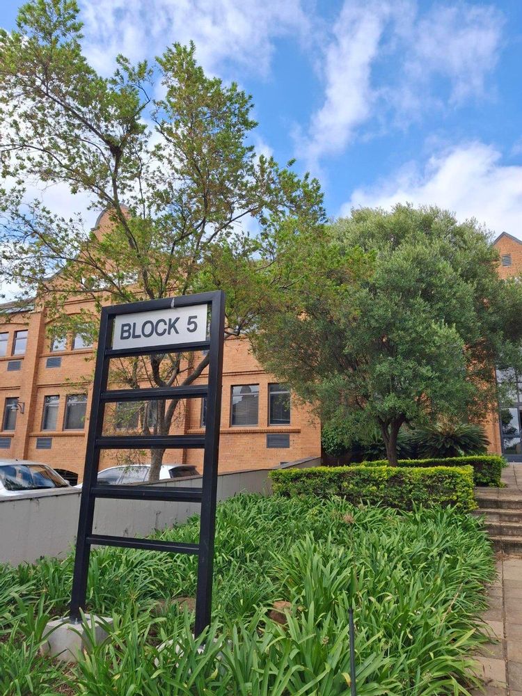 Surrounded by lush gardens and mature trees, creating a peaceful work environment
