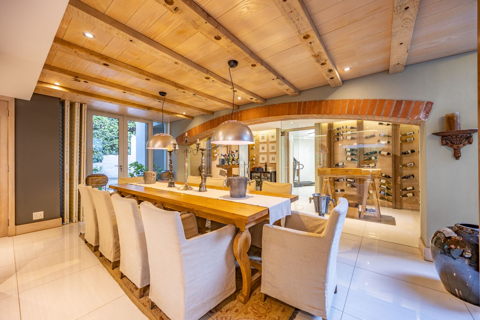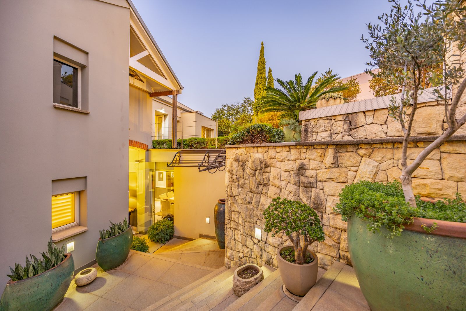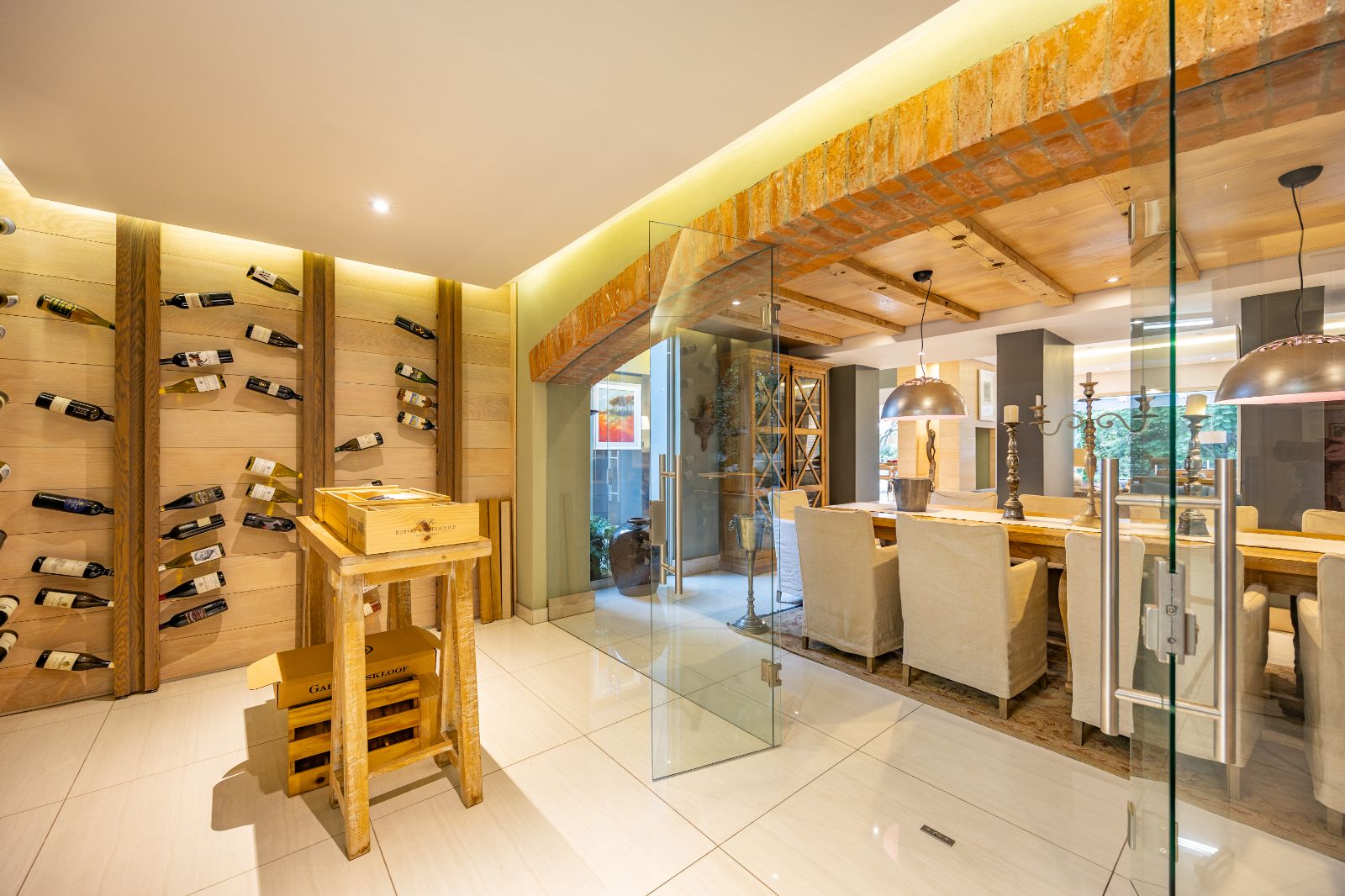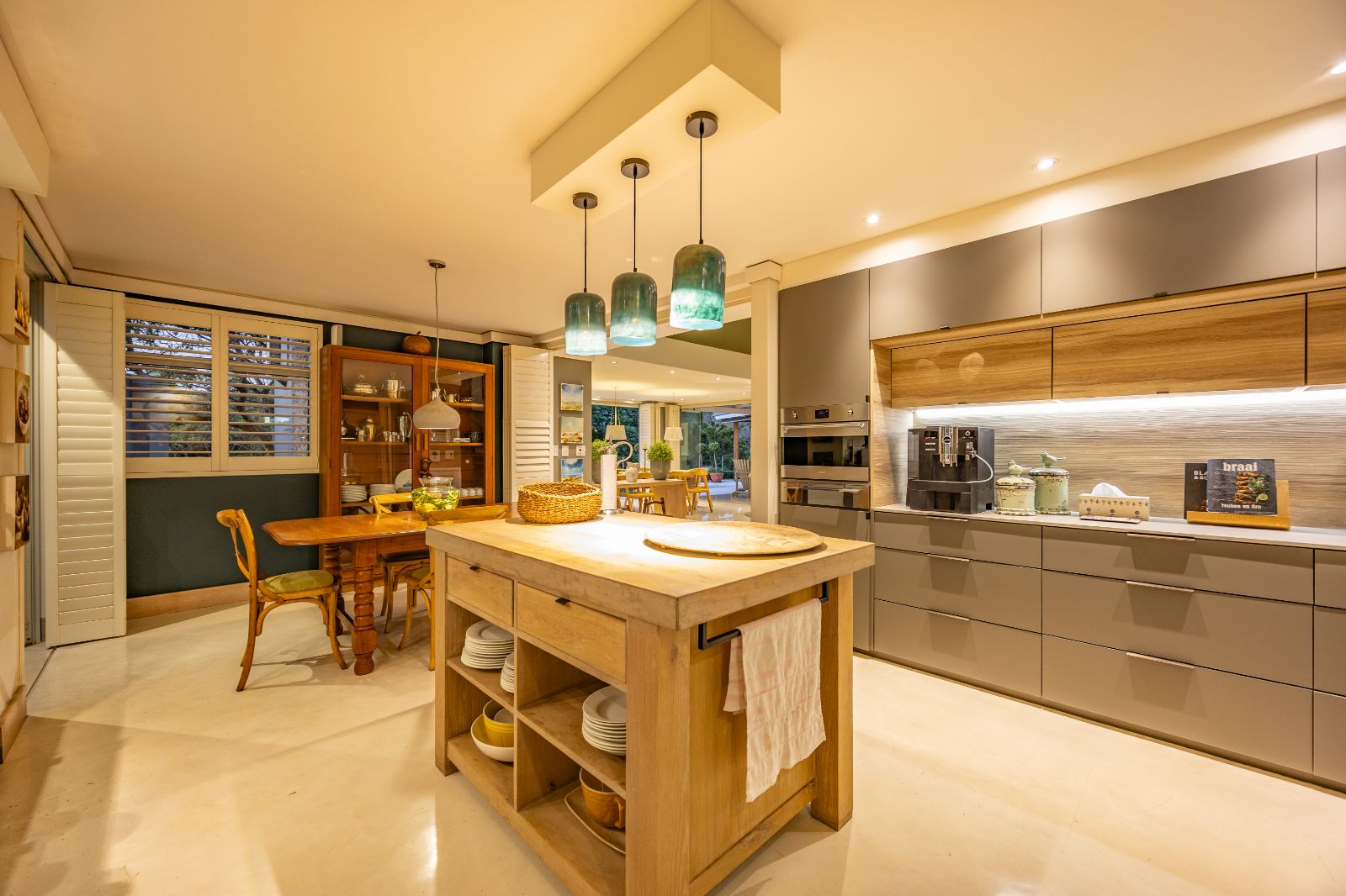 The home’s culinary heart is a designer kitchen with premium finishes, abundant storage, and a separate scullery with space for three appliances. Entertaining is elevated by the glass-walled wine cellar with Mediterranean flair, a built-in braai, pizza oven, and a fabulous firepit—all designed to create memorable gatherings.