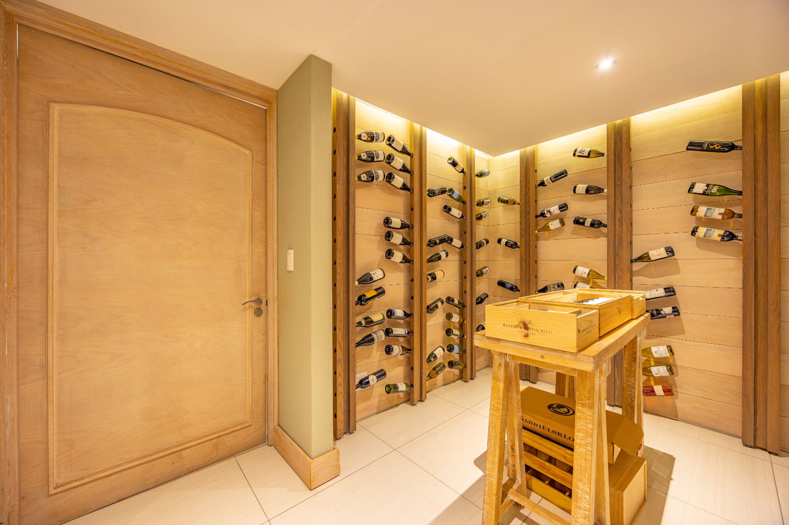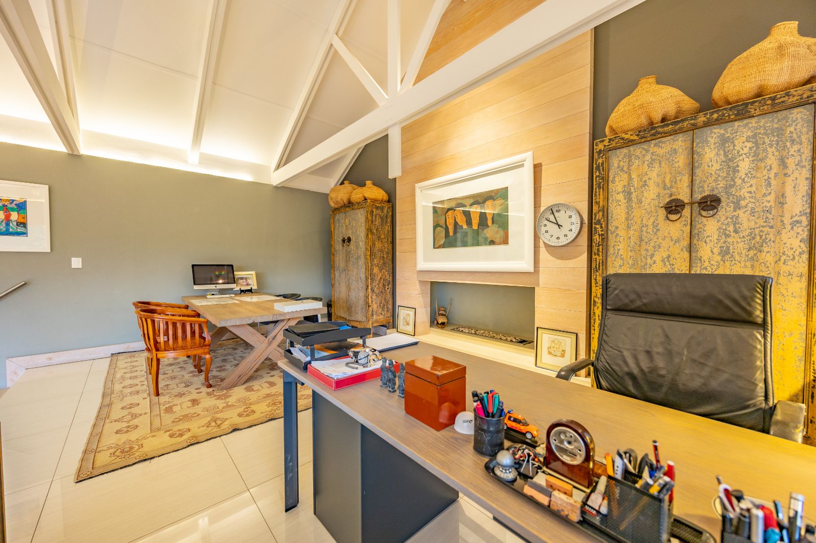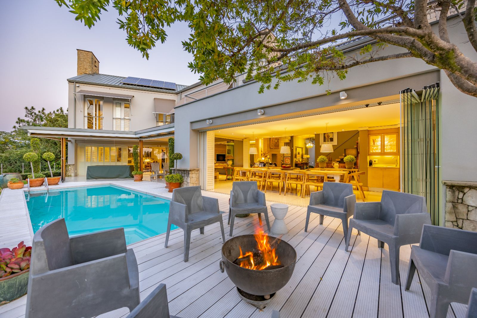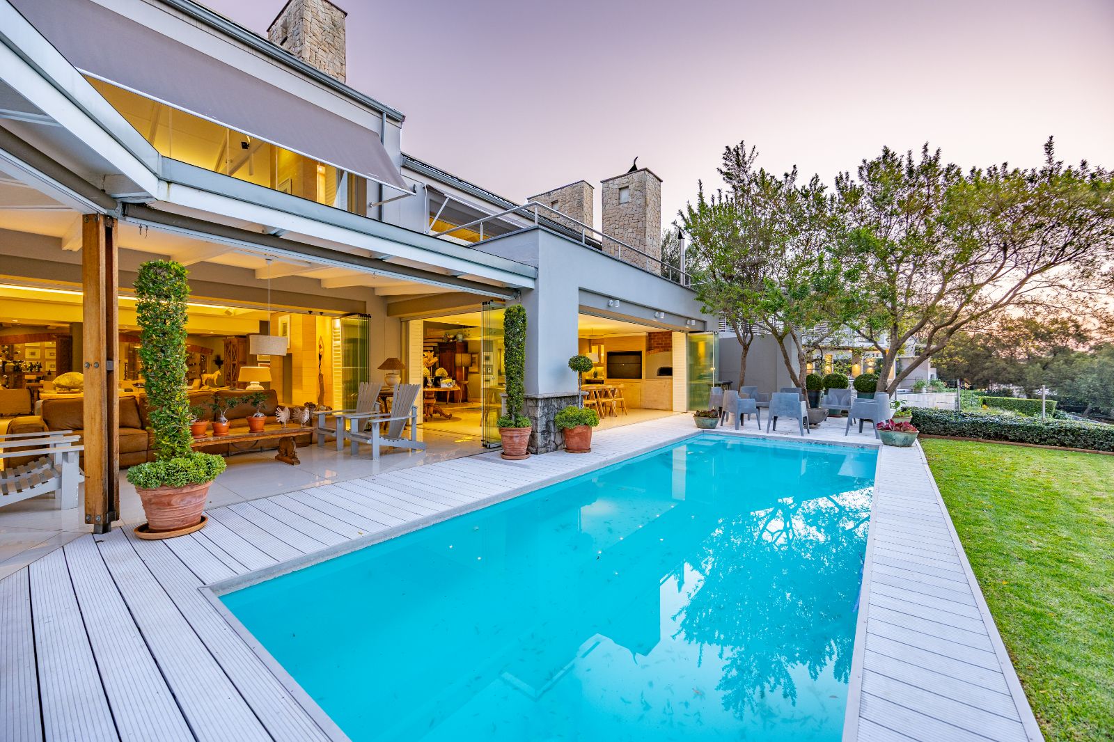 The home’s culinary heart is a designer kitchen with premium finishes, abundant storage, and a separate scullery with space for three appliances. Entertaining is elevated by the glass-walled wine cellar with Mediterranean flair, a built-in braai, pizza oven, and a fabulous firepit—all designed to create memorable gatherings.