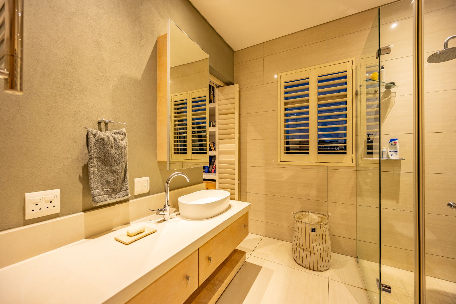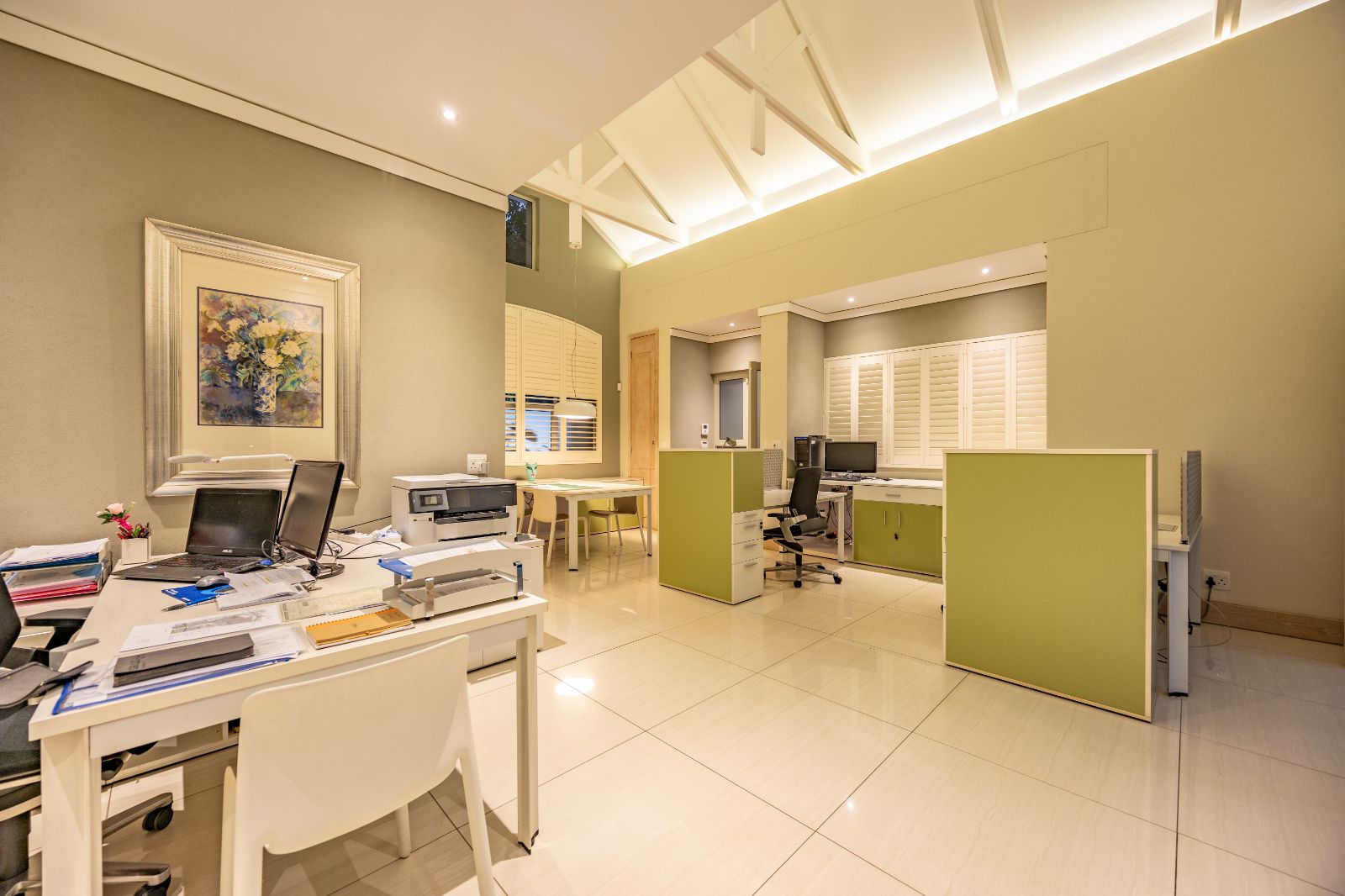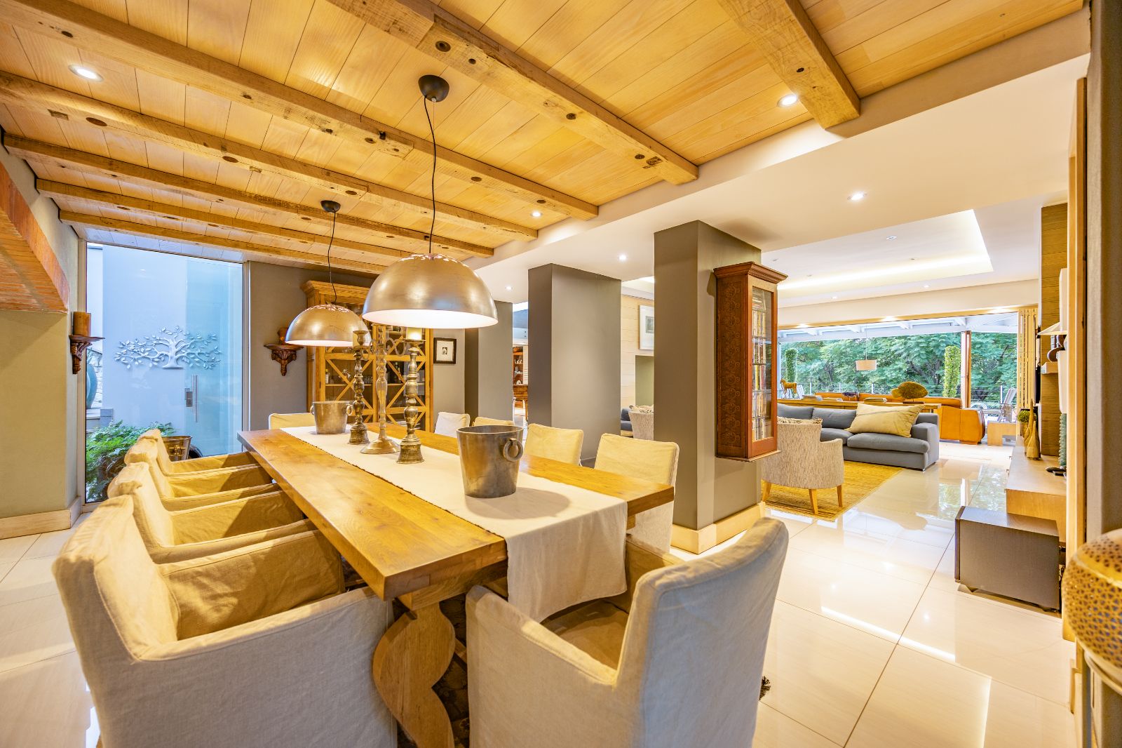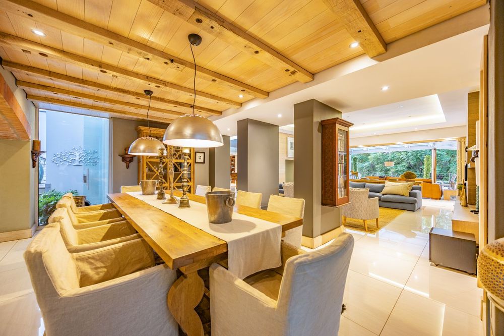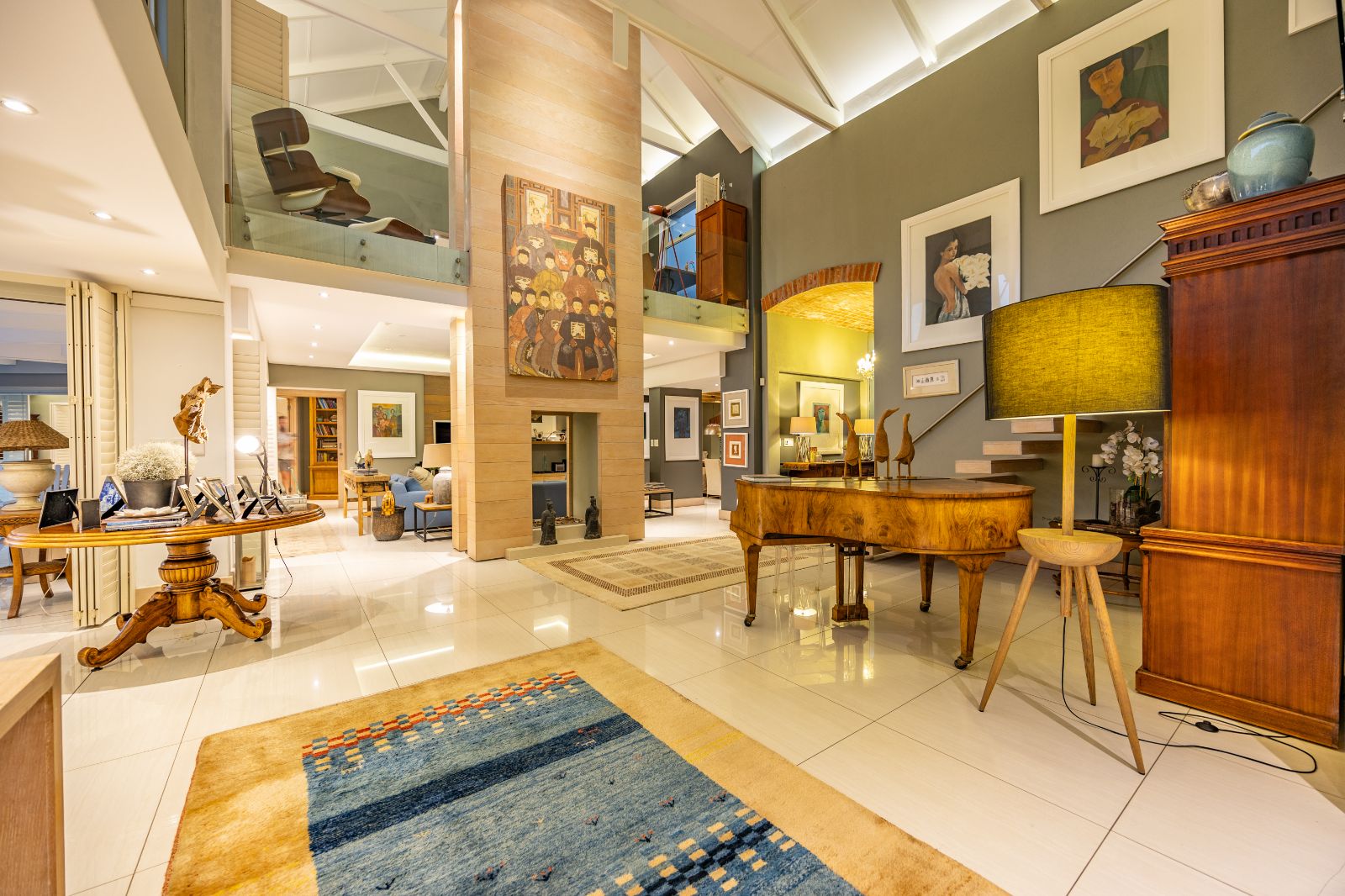 The home’s culinary heart is a designer kitchen with premium finishes, abundant storage, and a separate scullery with space for three appliances. Entertaining is elevated by the glass-walled wine cellar with Mediterranean flair, a built-in braai, pizza oven, and a fabulous firepit—all designed to create memorable gatherings.