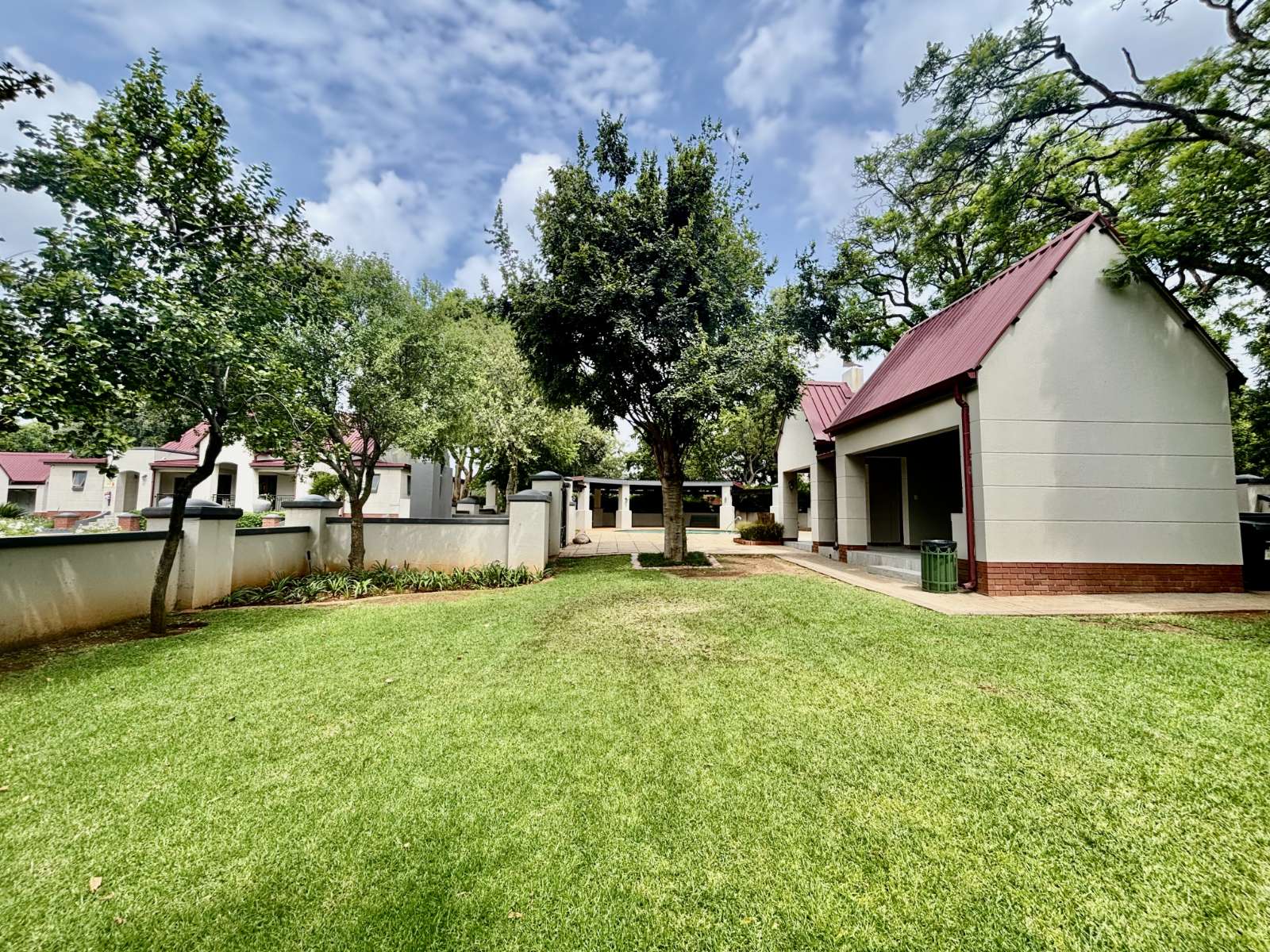 Outdoors, enjoy your own private garden complete with a pergola and covered patio — ideal for relaxed mornings, afternoon lounging, or evening braais. The estate itself features beautifully maintained communal gardens, walking paths, a clubhouse, entertainment area, swimming pool, and braai facilities, offering a lifestyle of ease and leisure.