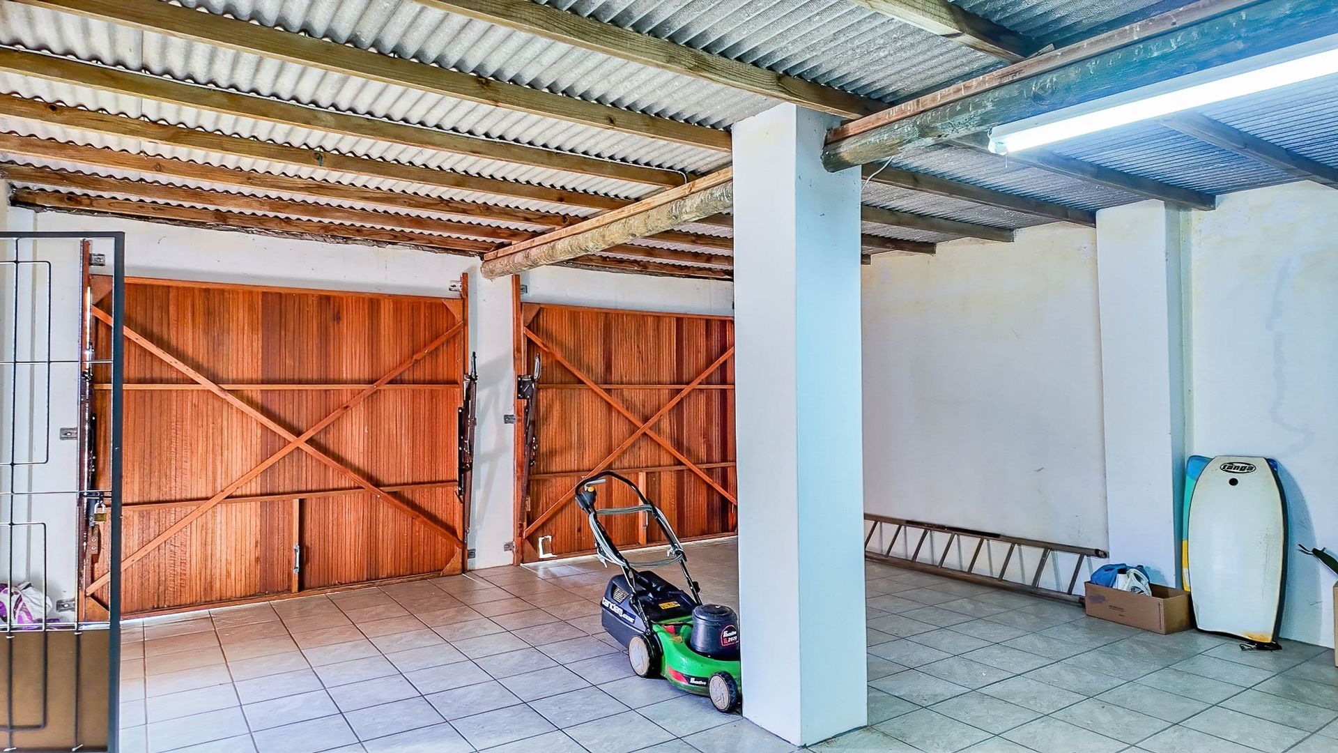 Downstairs, you'll find three comfortable bedrooms and two bathrooms, all surrounded by a mature, low-maintenance garden. Aloe-rich garden attracting birds, butterflies, and even the occasional small buck. Additional features include a double garage, shaded parking for two vehicles, and ample open parking space for guests.