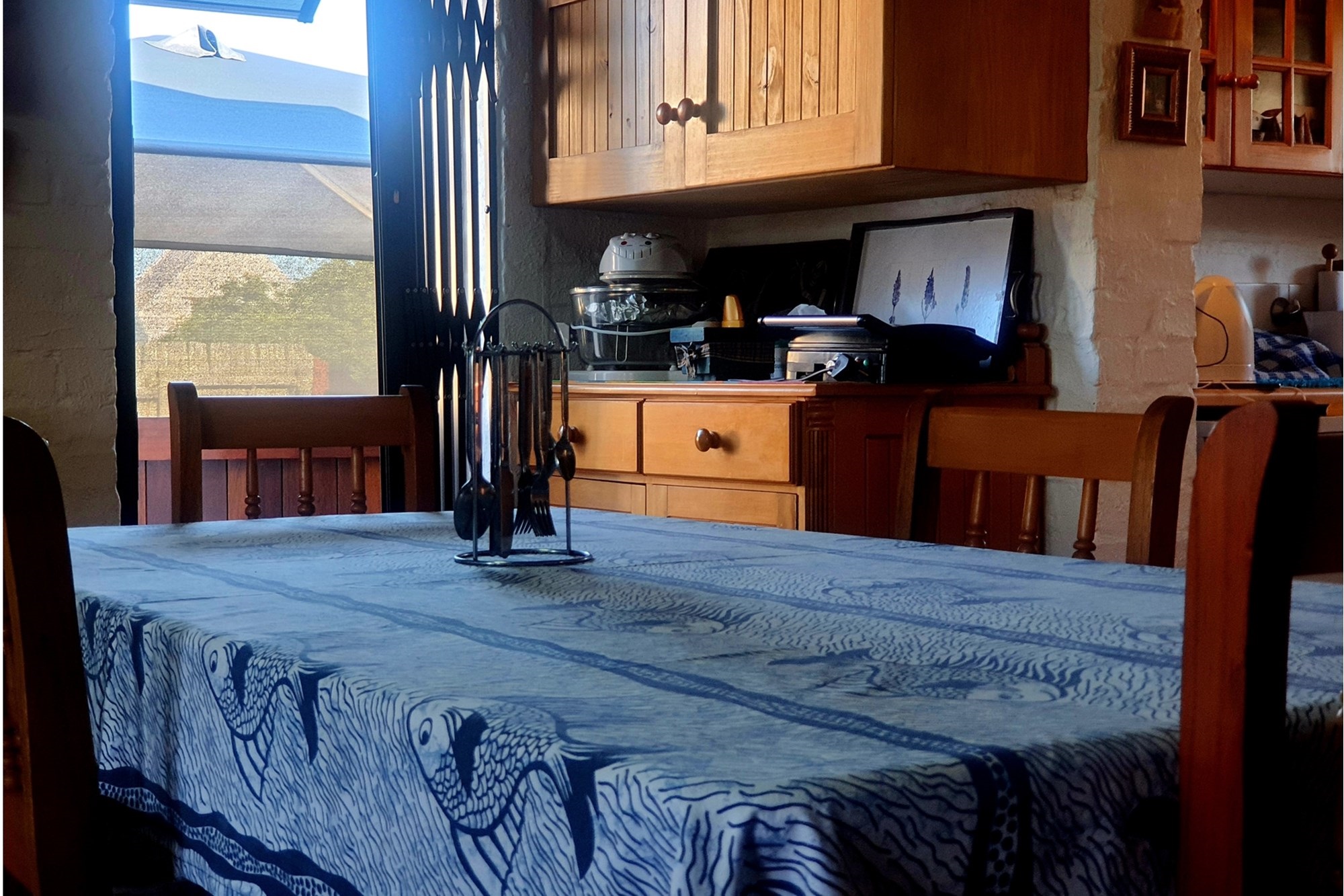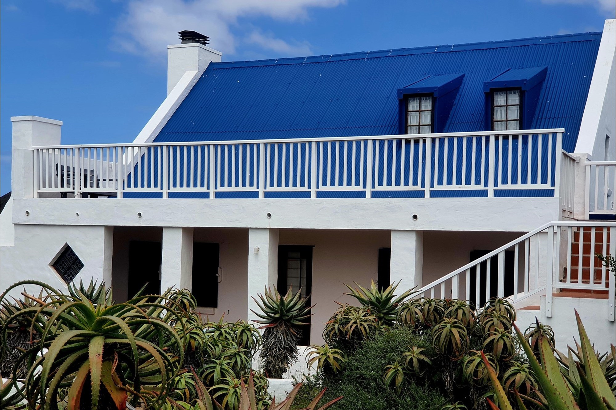 The heart of the home is the open-plan living and dining area with its soaring double-volume ceiling and effortless flow to a sunny north-facing stoep. It’s the perfect place to gather around the fire, share stories, and enjoy the calm of this quiet coastal village, with the sound of the ocean often in the distance.