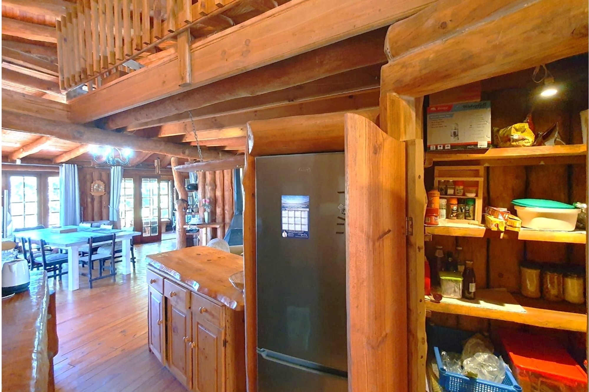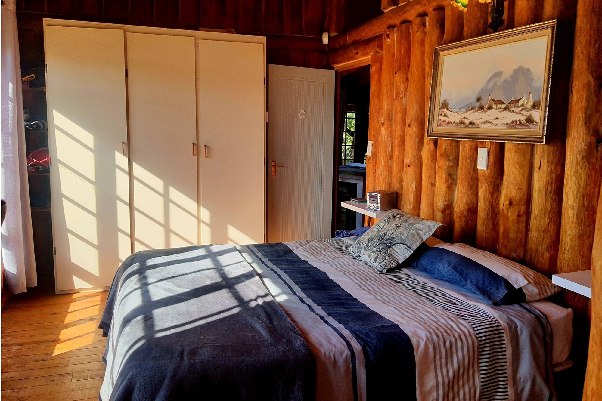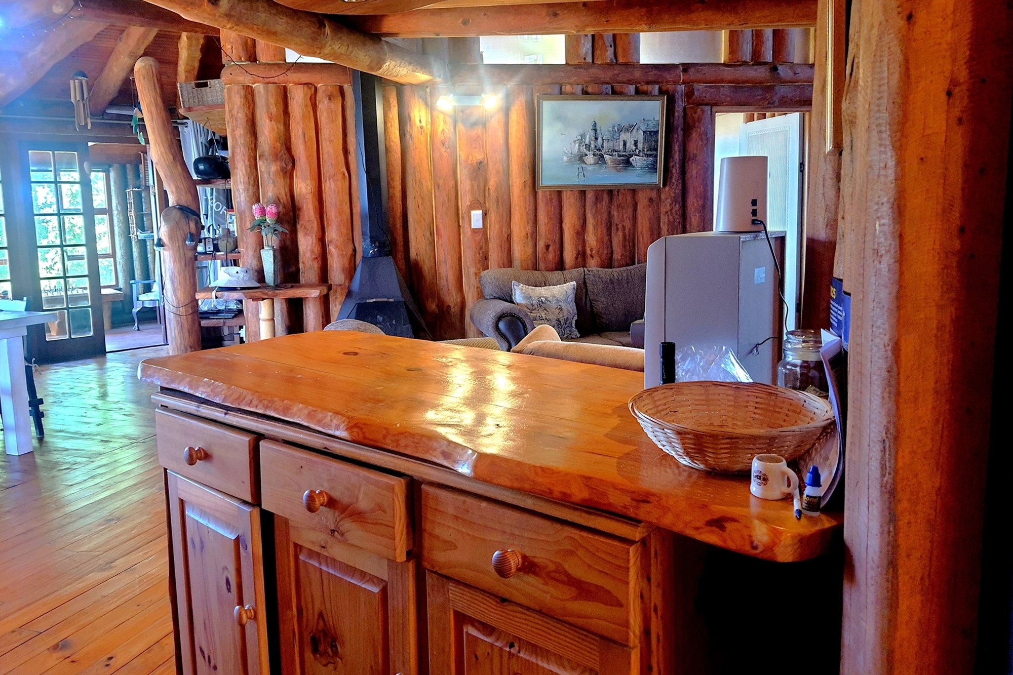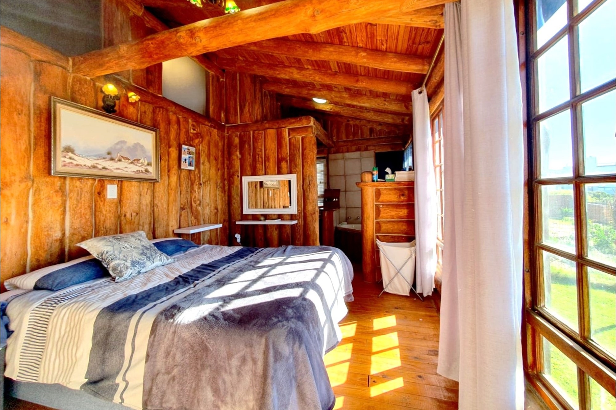 Welcome to a one-of-a-kind, hand-built log home – a rare gem in Boggomsbaai, created byNature Log Homes, who completed only a handful of such exceptional dwellings. This home is a true celebration of natural materials and craftsmanship, where every beam, cupboard, and shelf has been lovingly shaped from solid wood.