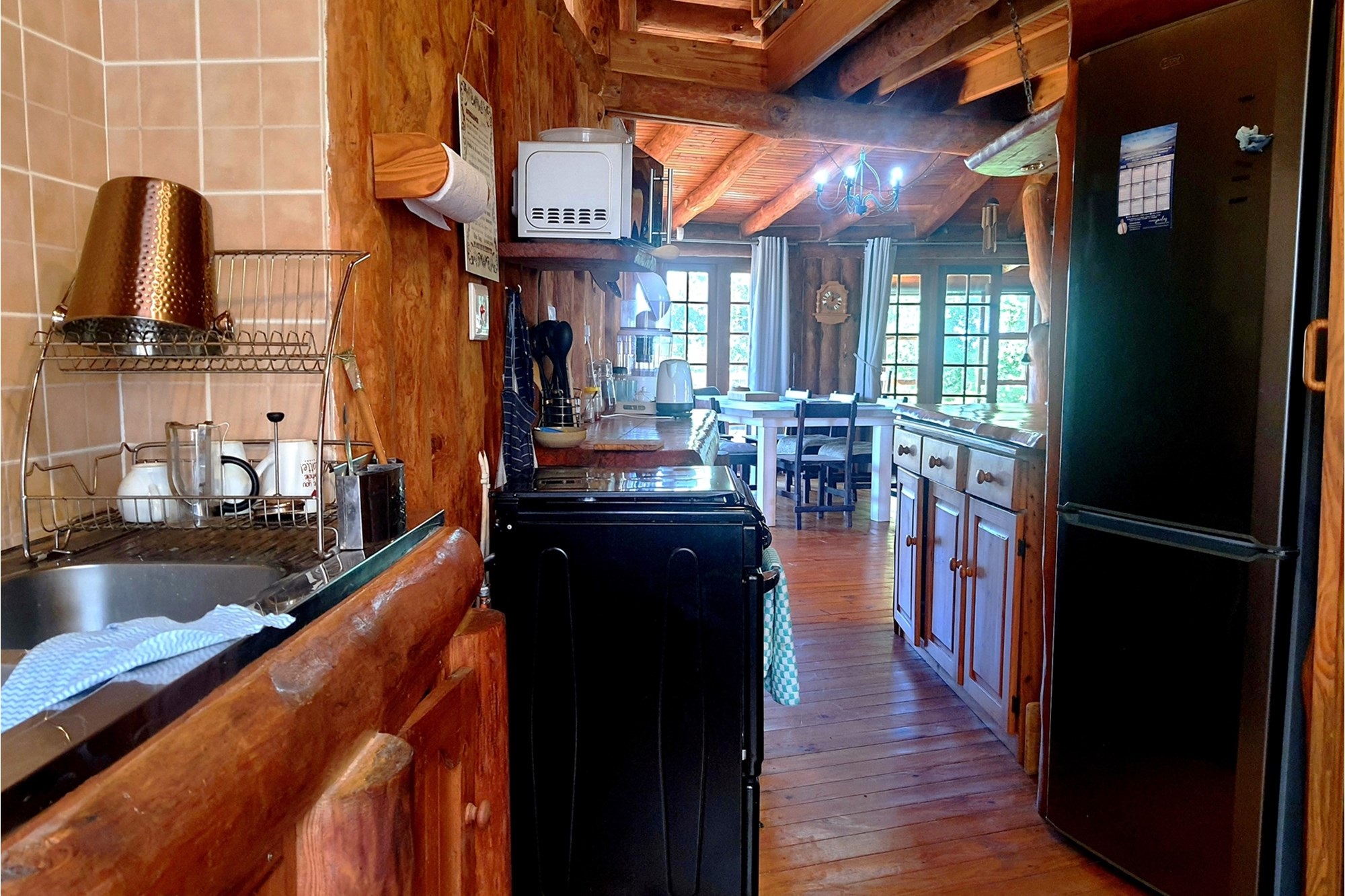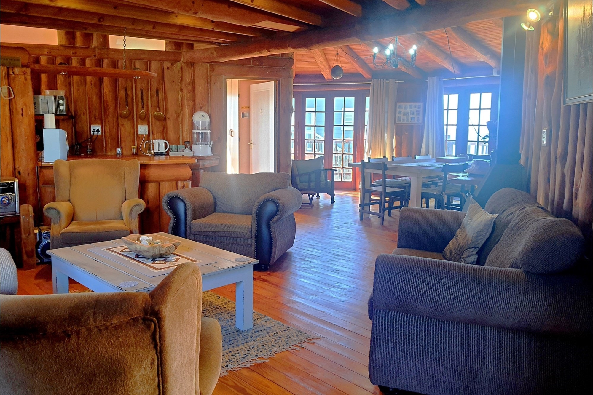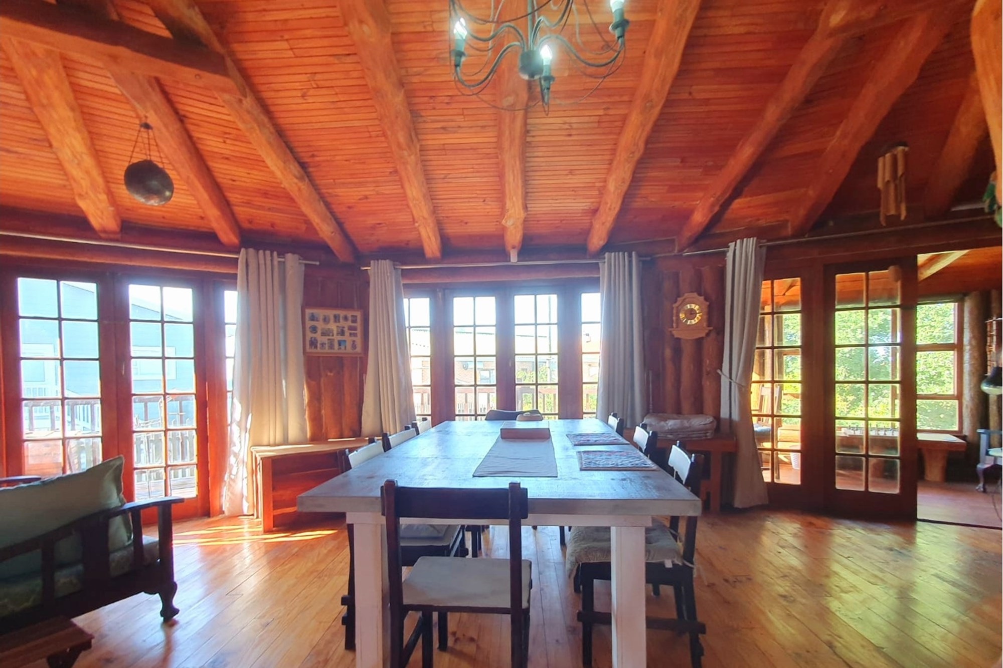 Welcome to a one-of-a-kind, hand-built log home – a rare gem in Boggomsbaai, created byNature Log Homes, who completed only a handful of such exceptional dwellings. This home is a true celebration of natural materials and craftsmanship, where every beam, cupboard, and shelf has been lovingly shaped from solid wood.