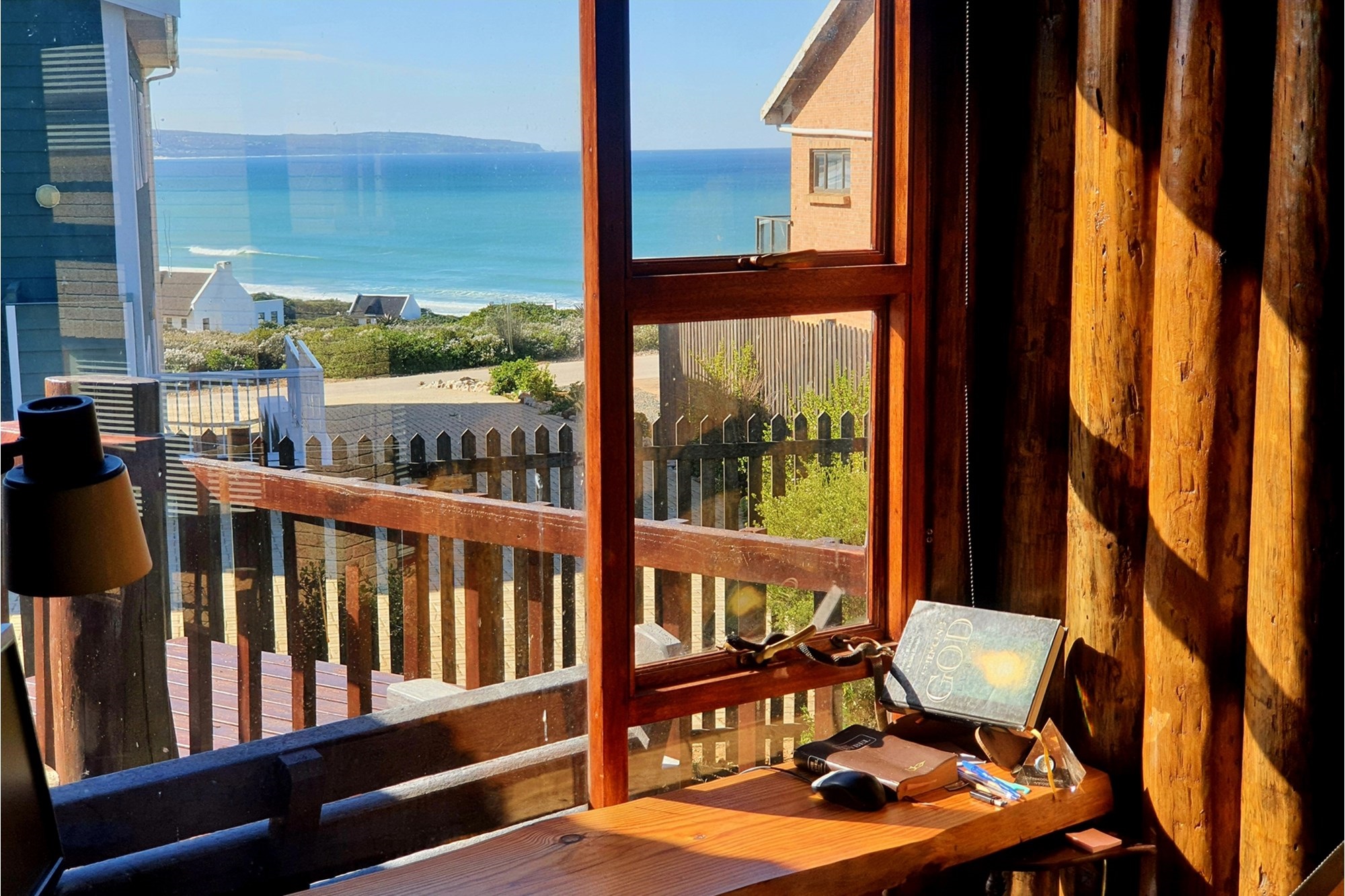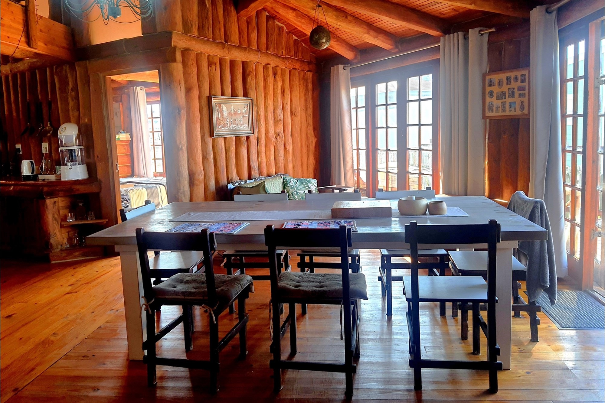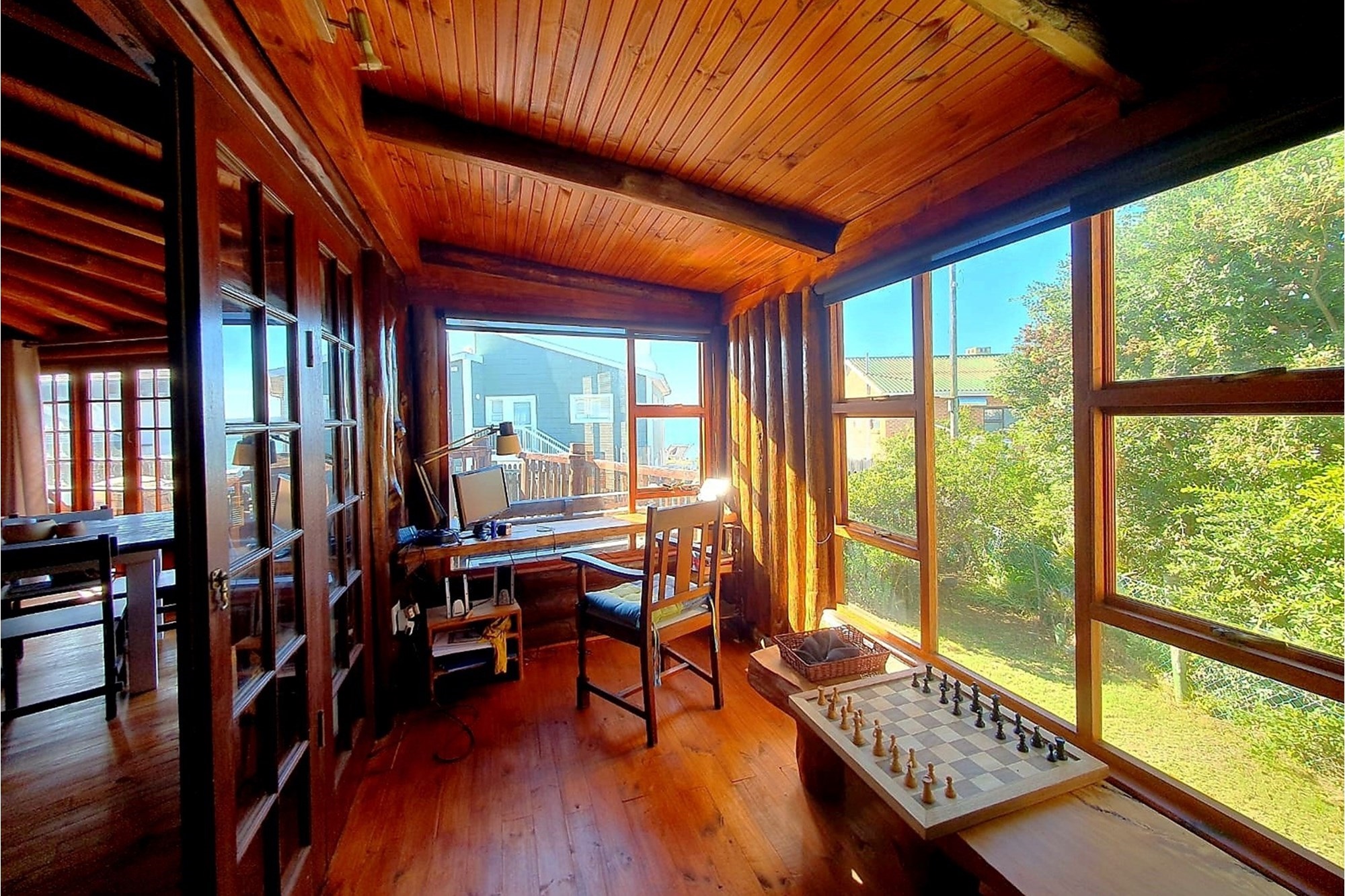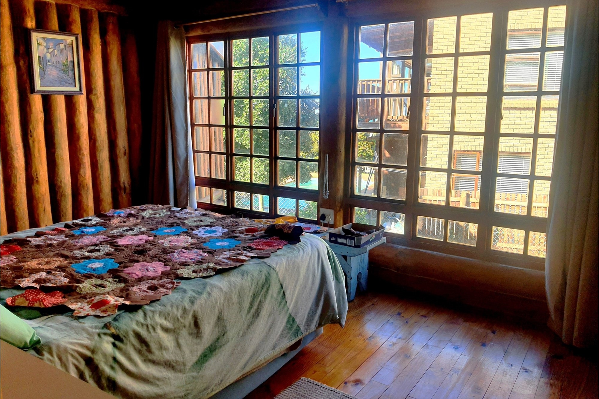 Welcome to a one-of-a-kind, hand-built log home – a rare gem in Boggomsbaai, created byNature Log Homes, who completed only a handful of such exceptional dwellings. This home is a true celebration of natural materials and craftsmanship, where every beam, cupboard, and shelf has been lovingly shaped from solid wood.