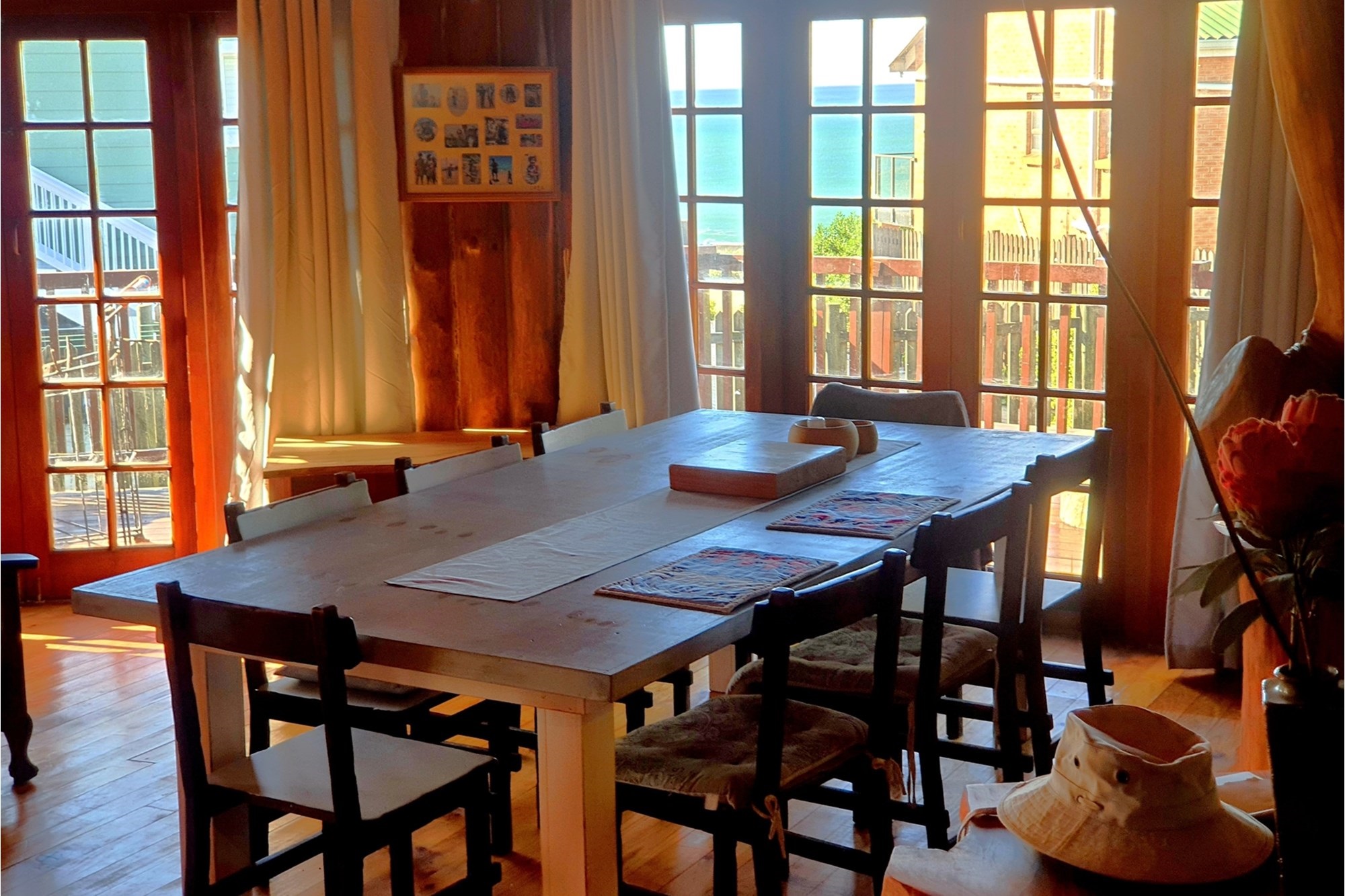 Tucked away just a5-minute stroll from the beach, this 211m2 home sits on a 612m2 stand and offers spacious, open-plan living on the ground floor with a cozy lounge, dining area, and country-style kitchen – all warmed by a Jet master fireplace and natural light. The north-facing deck offers sea views and extends your living space outdoors.
