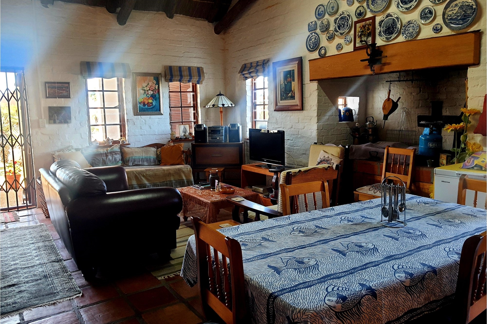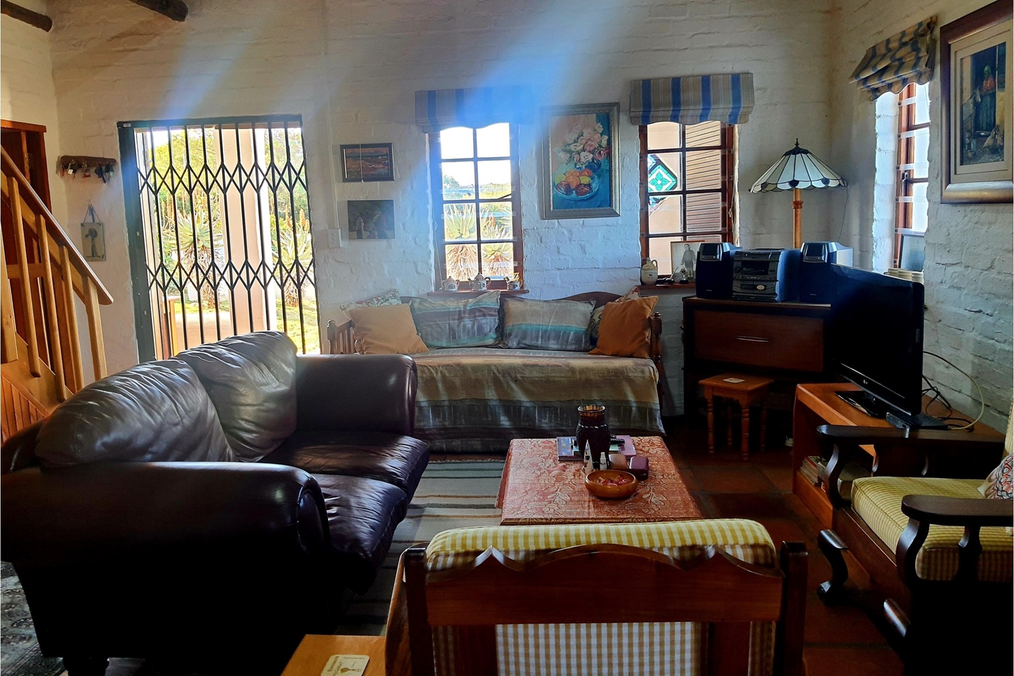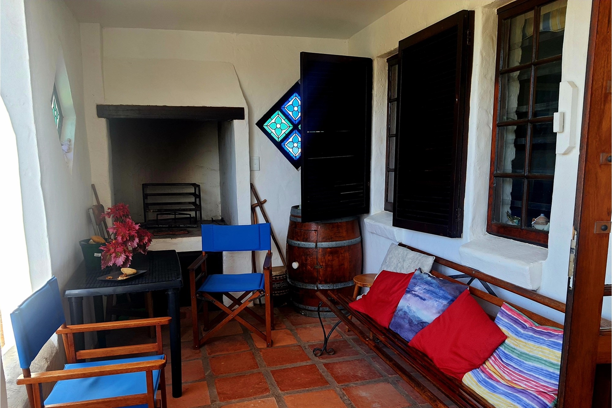 Step through the welcoming double doors into a light-filled interior where cool clay tiles and reed ceilings keep things breezy in summer, while a generous indoor fireplace/braai brings warmth and atmosphere in the colder months. Whether you`re curling up with a book in winter or entertaining guests on balmy summer evenings, this home adapts beautifully to the seasons.