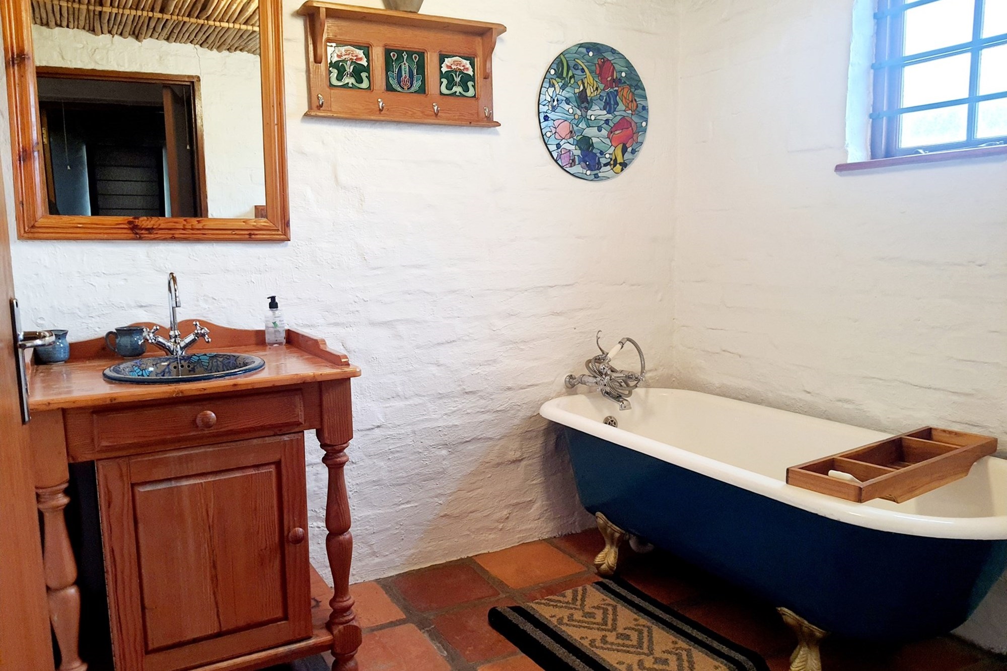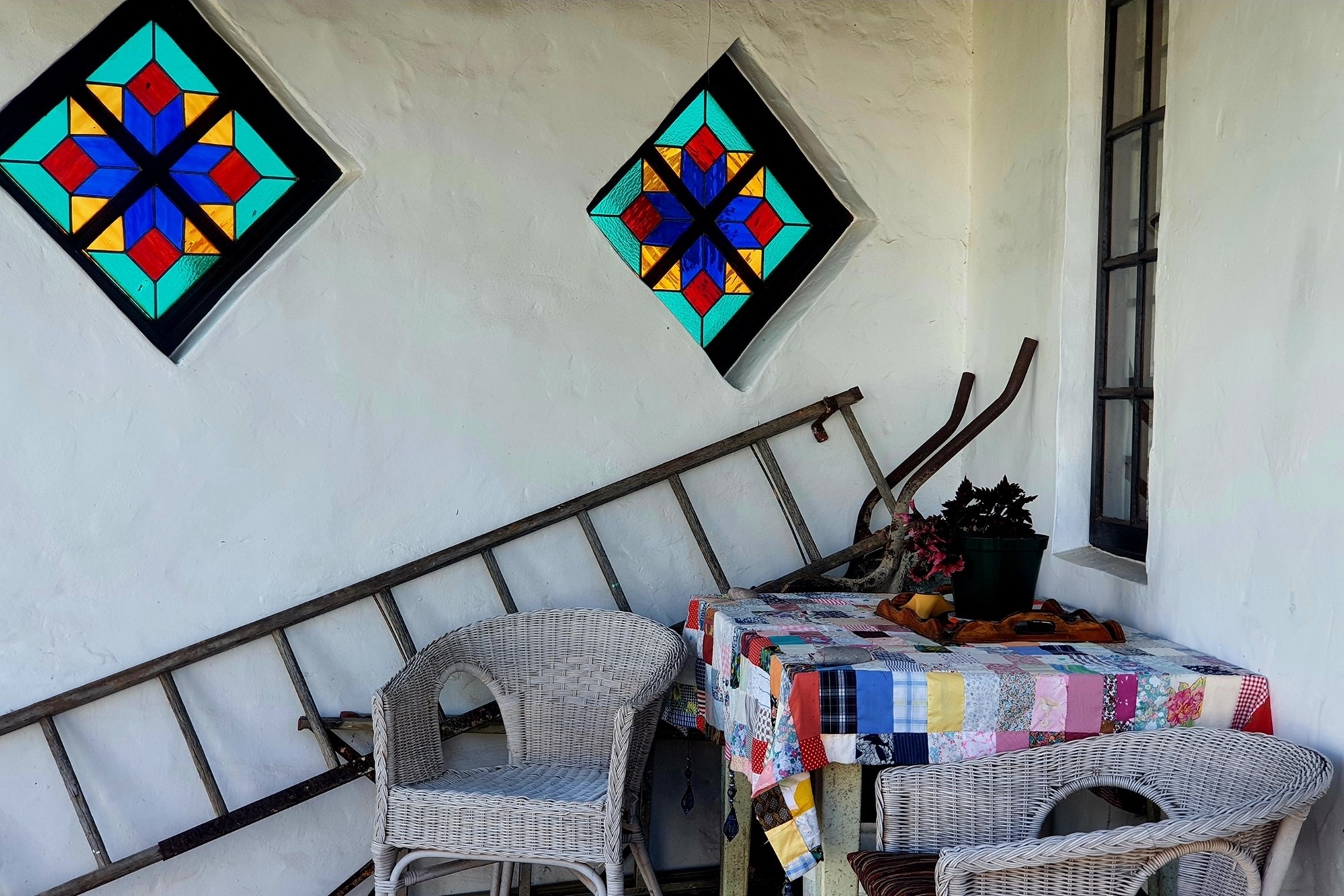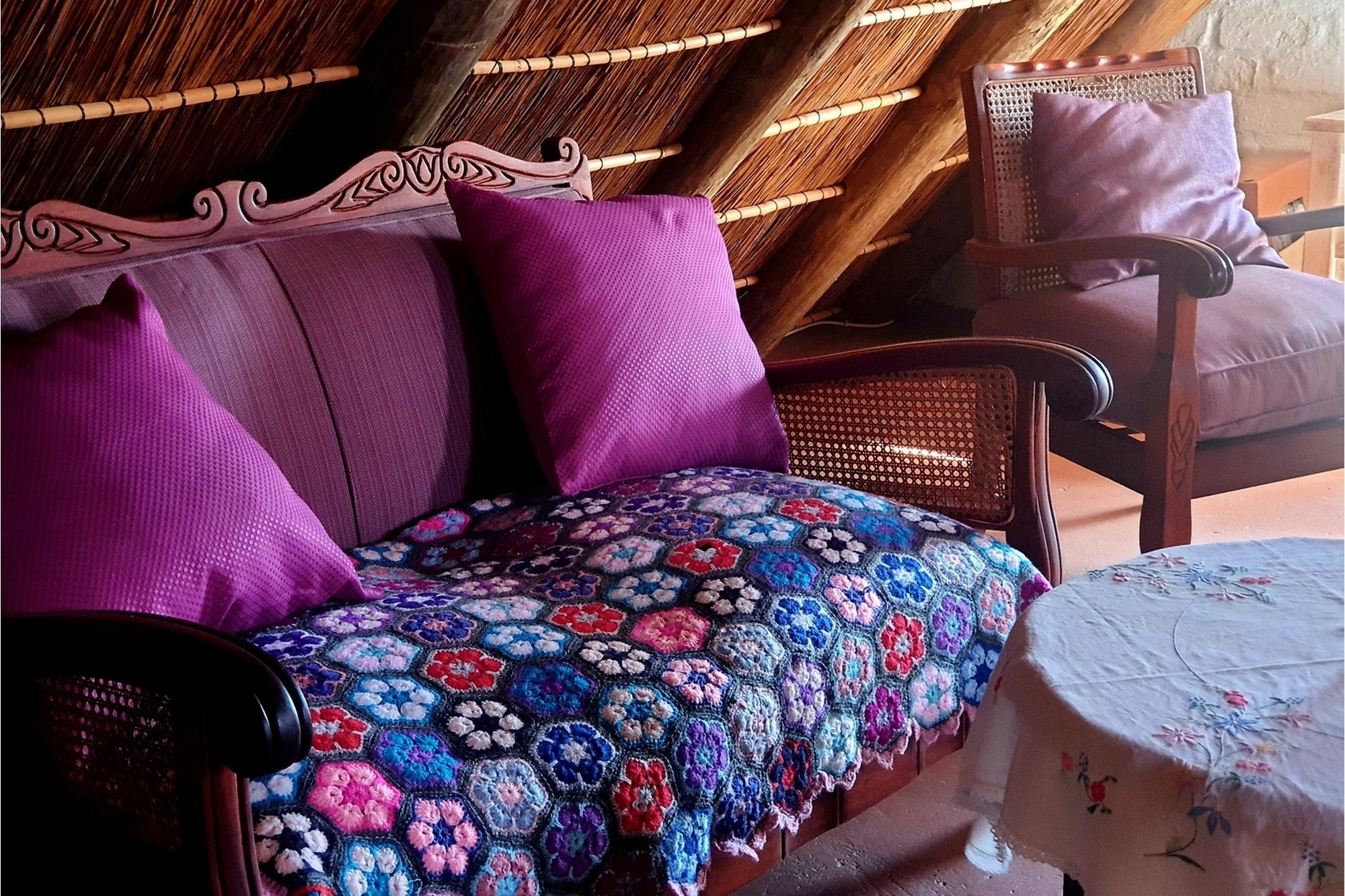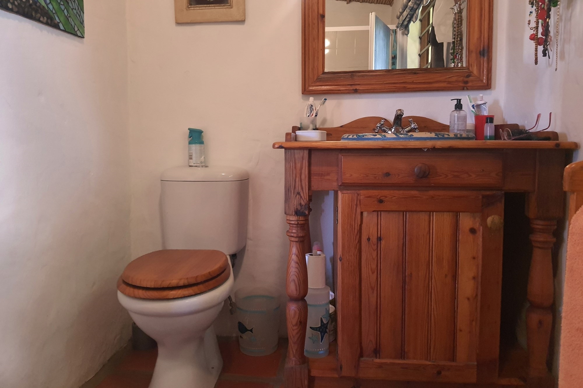 Step through the welcoming double doors into a light-filled interior where cool clay tiles and reed ceilings keep things breezy in summer, while a generous indoor fireplace/braai brings warmth and atmosphere in the colder months. Whether you`re curling up with a book in winter or entertaining guests on balmy summer evenings, this home adapts beautifully to the seasons.