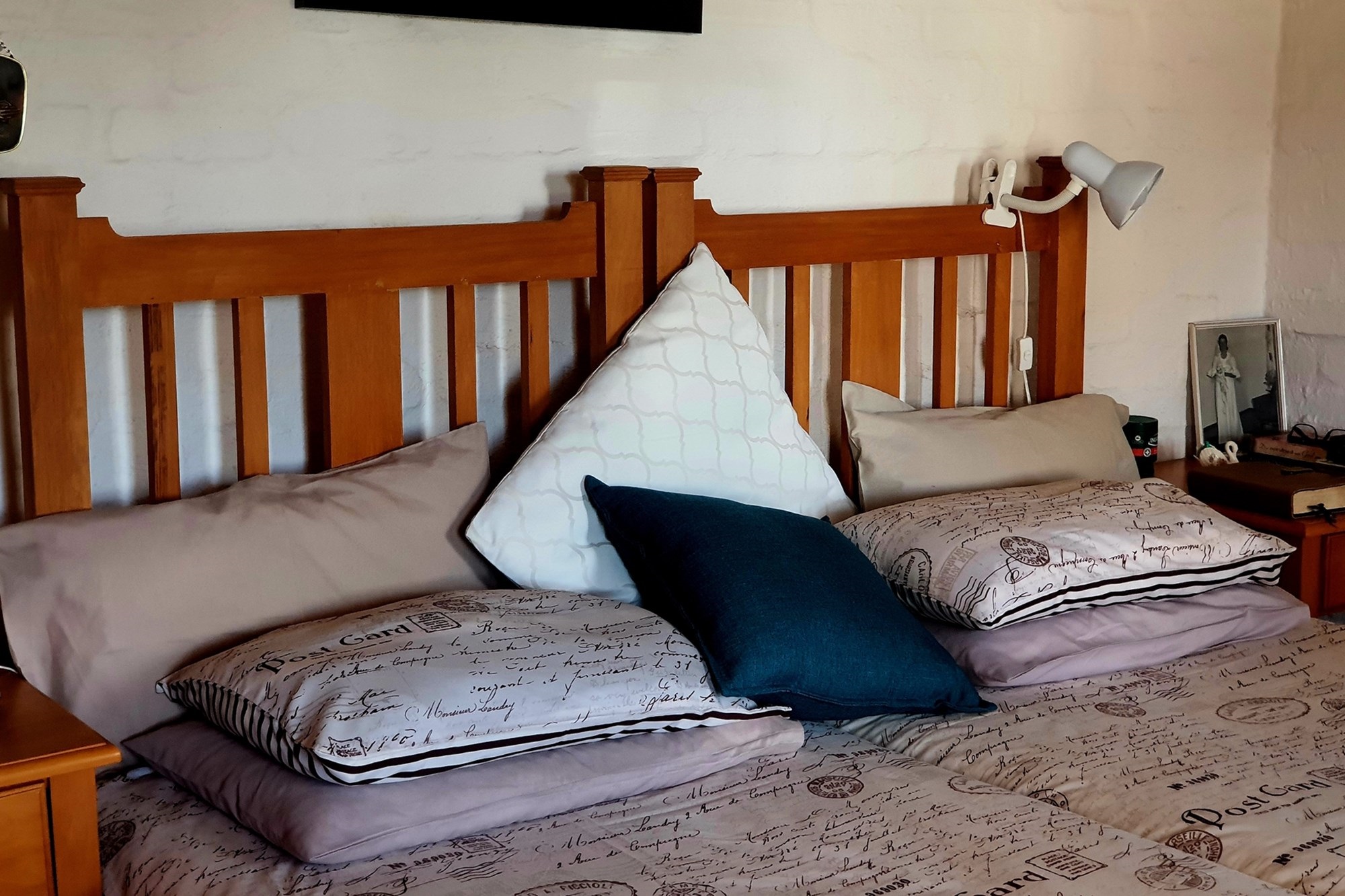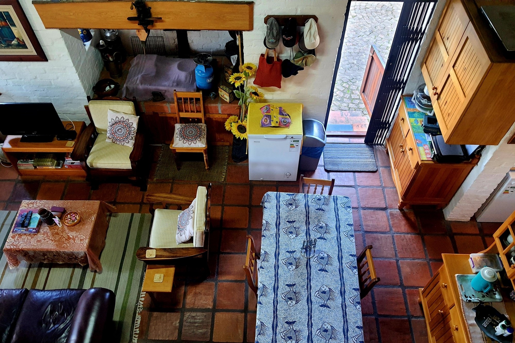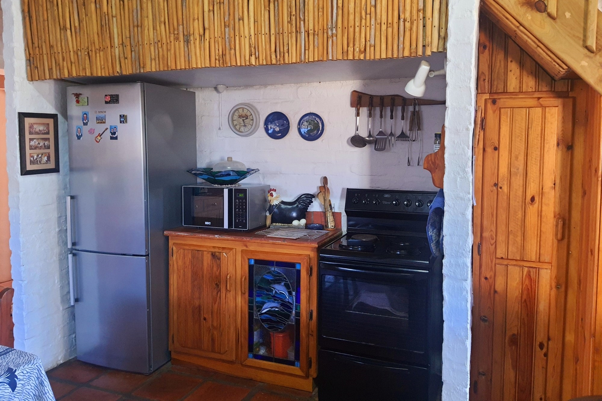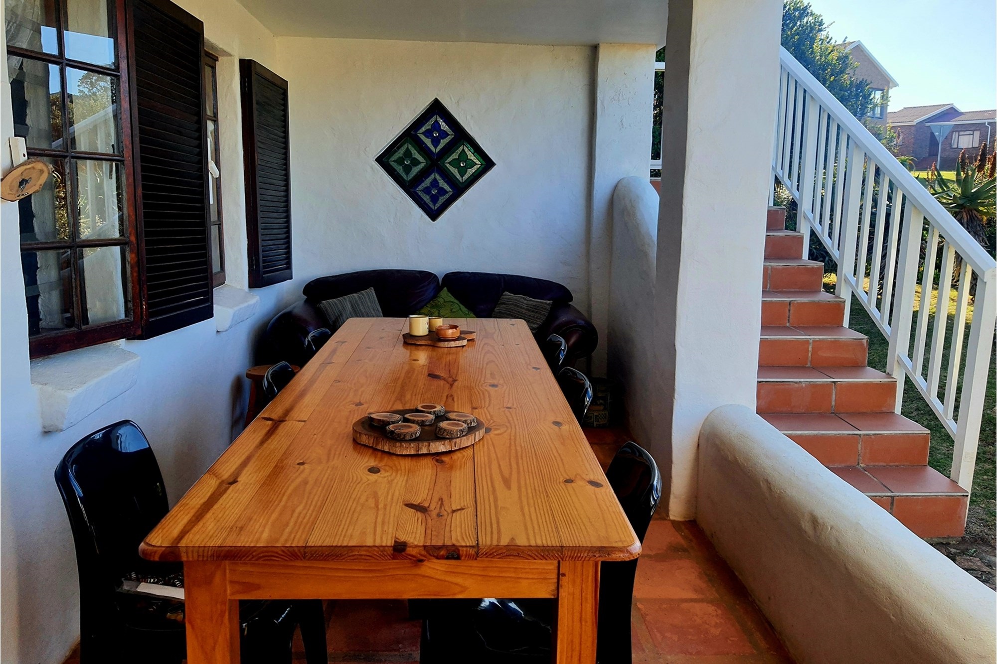 The heart of the home is the open-plan living and dining area with its soaring double-volume ceiling and effortless flow to a sunny north-facing stoep. It’s the perfect place to gather around the fire, share stories, and enjoy the calm of this quiet coastal village, with the sound of the ocean often in the distance.