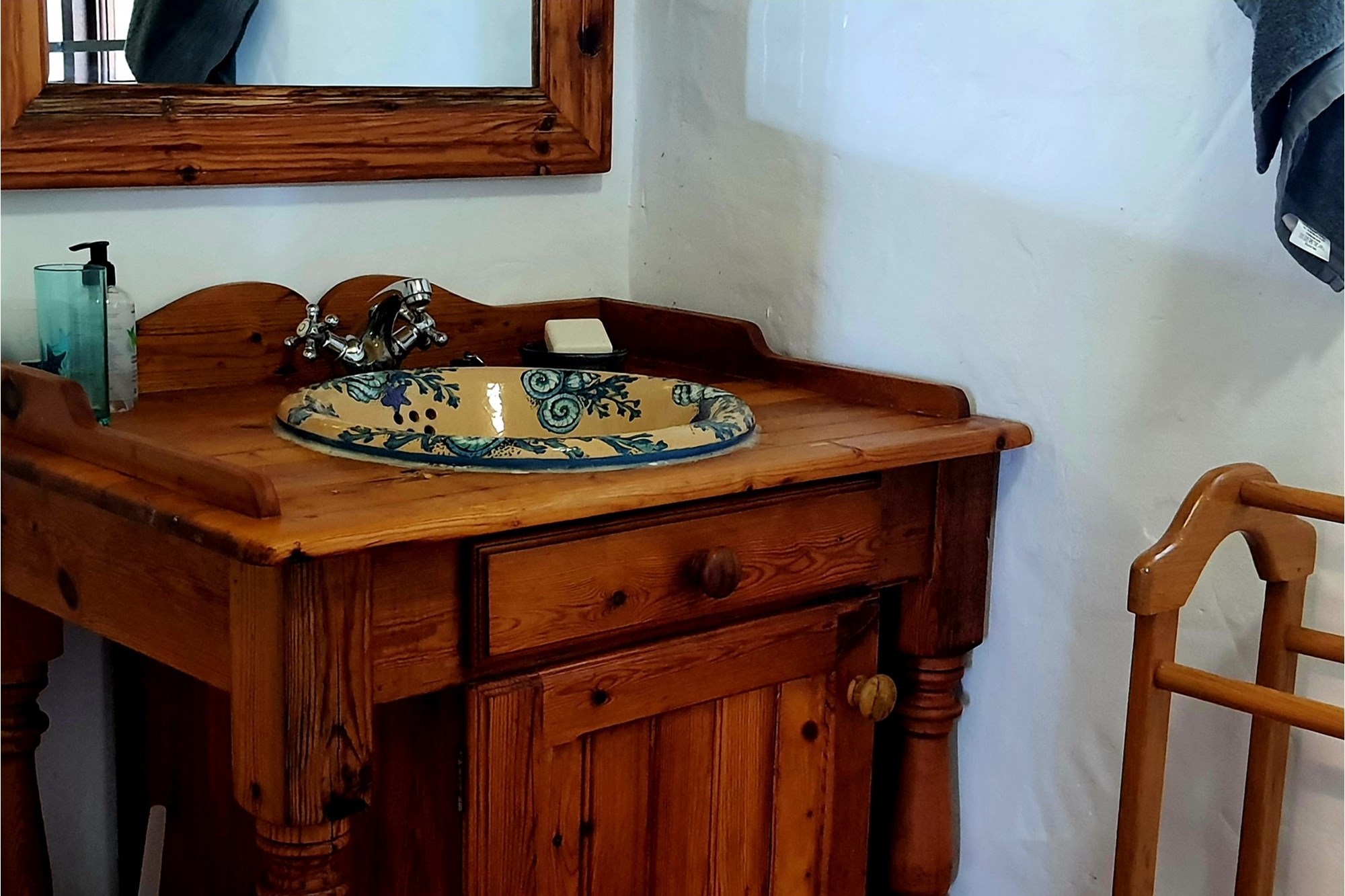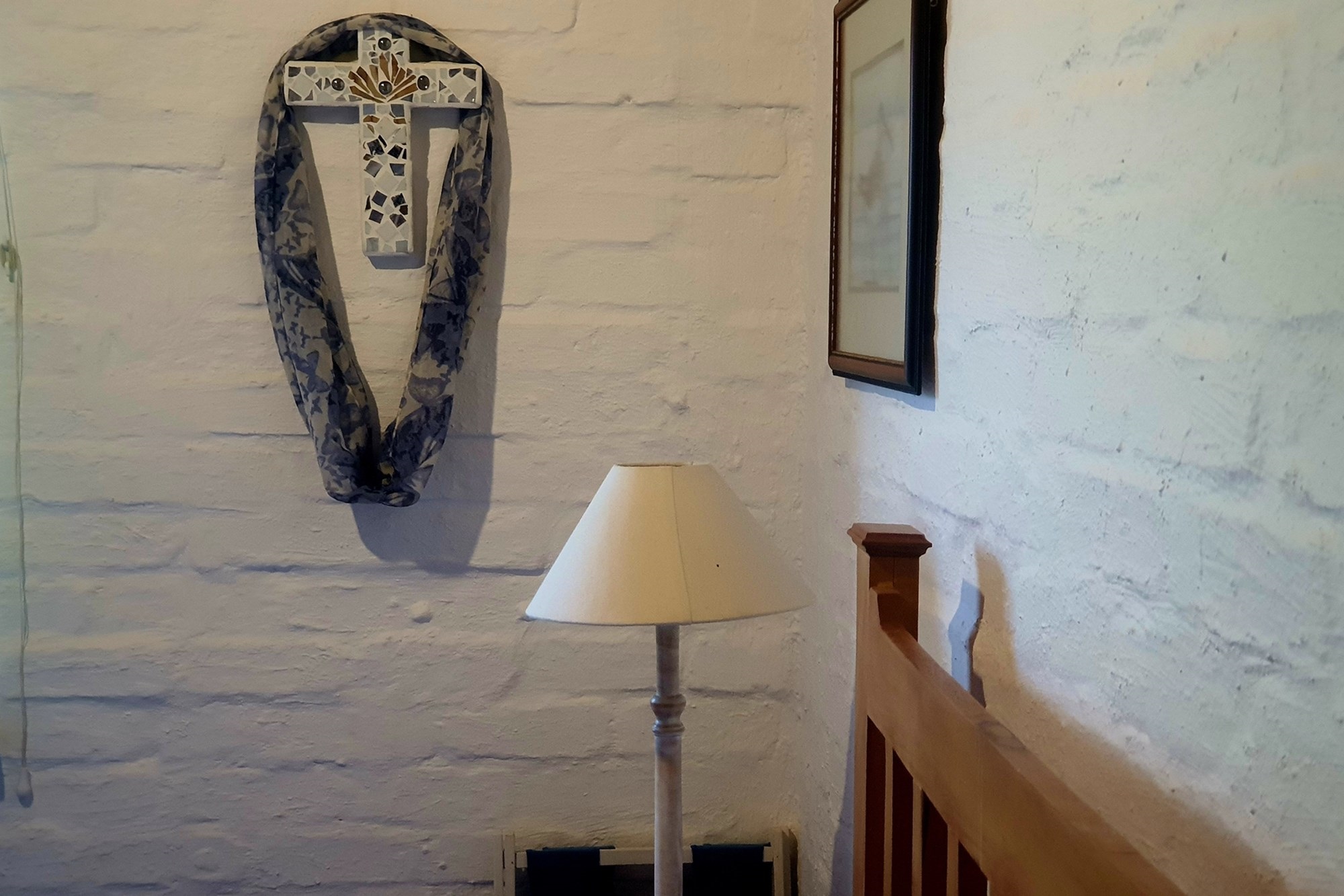 The kitchen, though compact, is cleverly laid out and complemented by a separate scullery for added practicality. A handcrafted wooden staircase leads to a generous loft space, complete with built-in cupboards and a private en-suite shower room—perfect as a teen pad, home office, or guest suite.