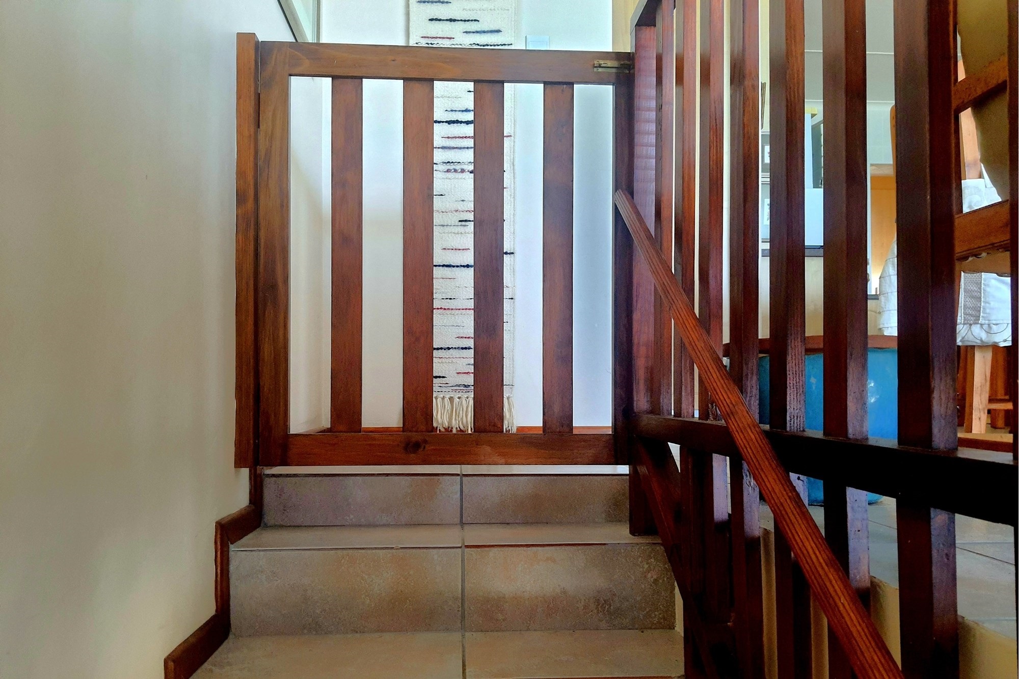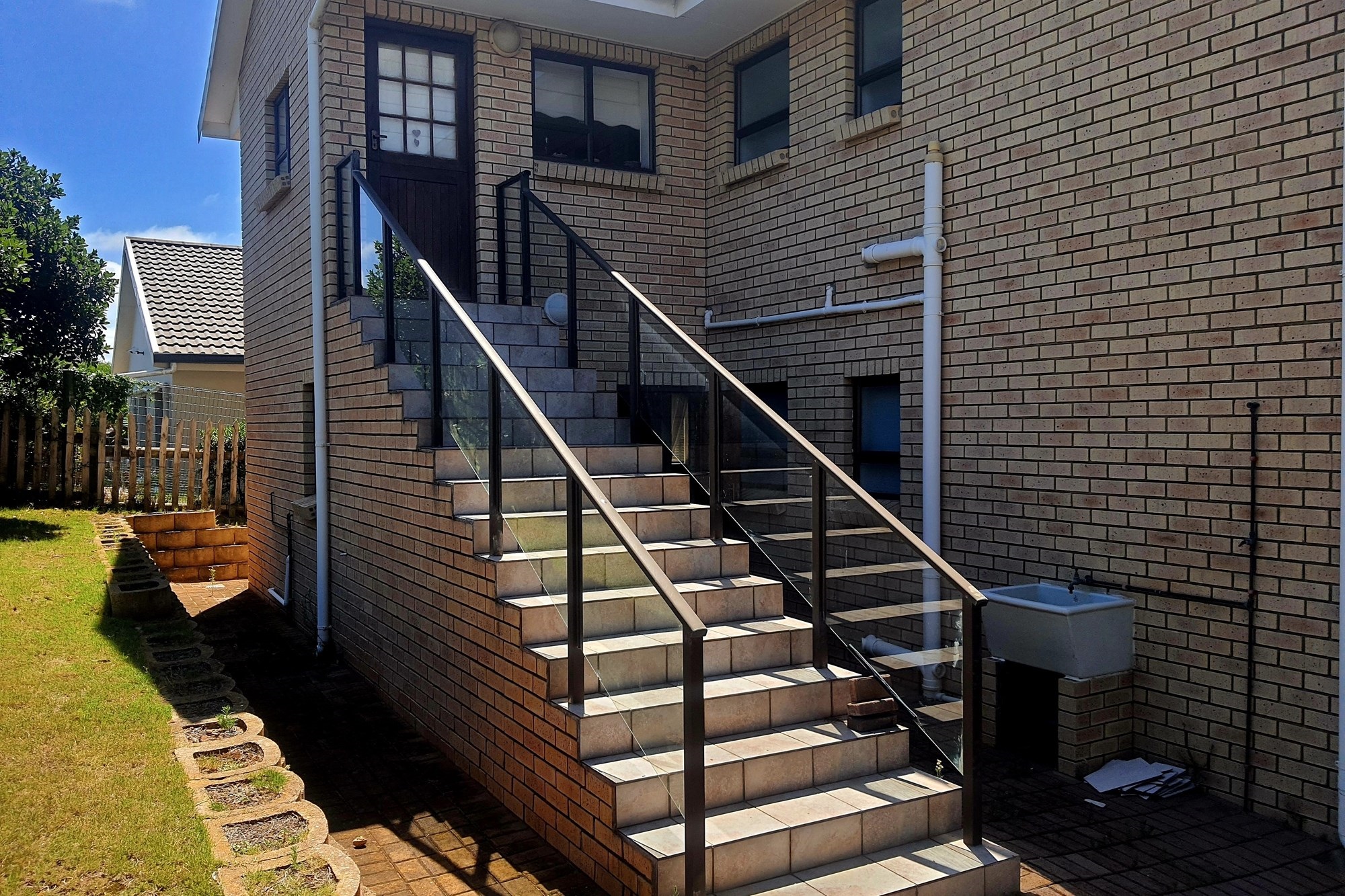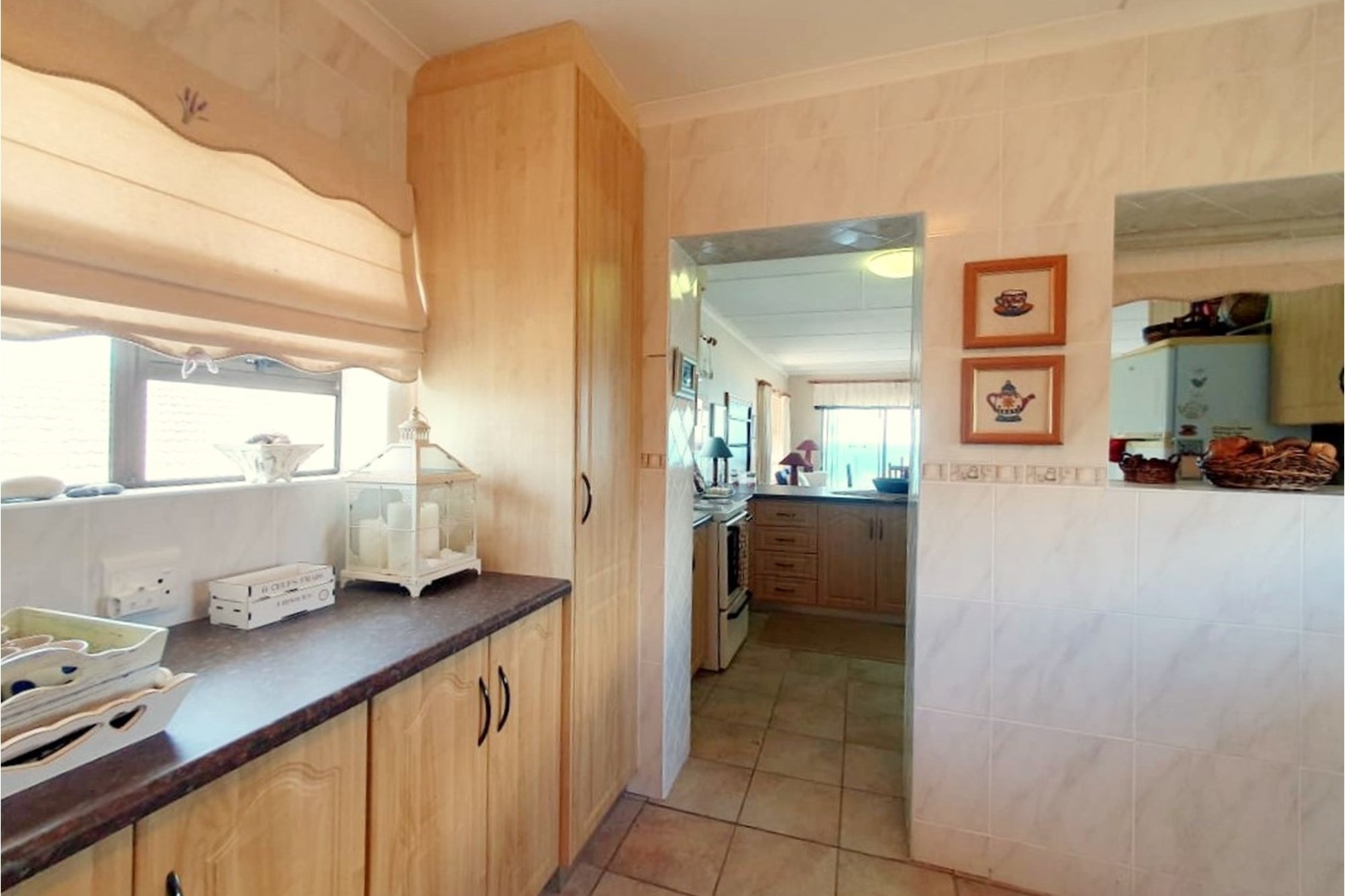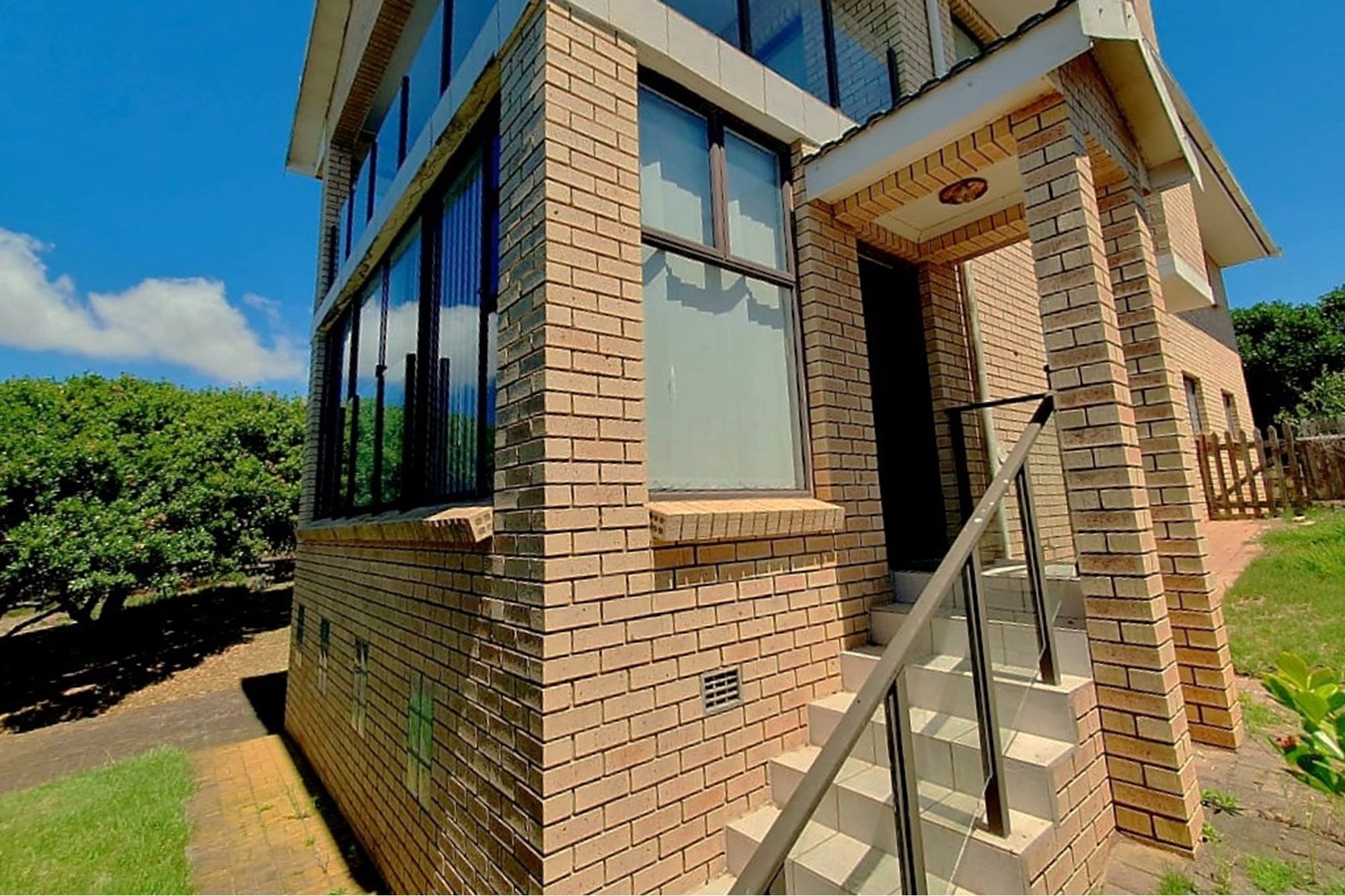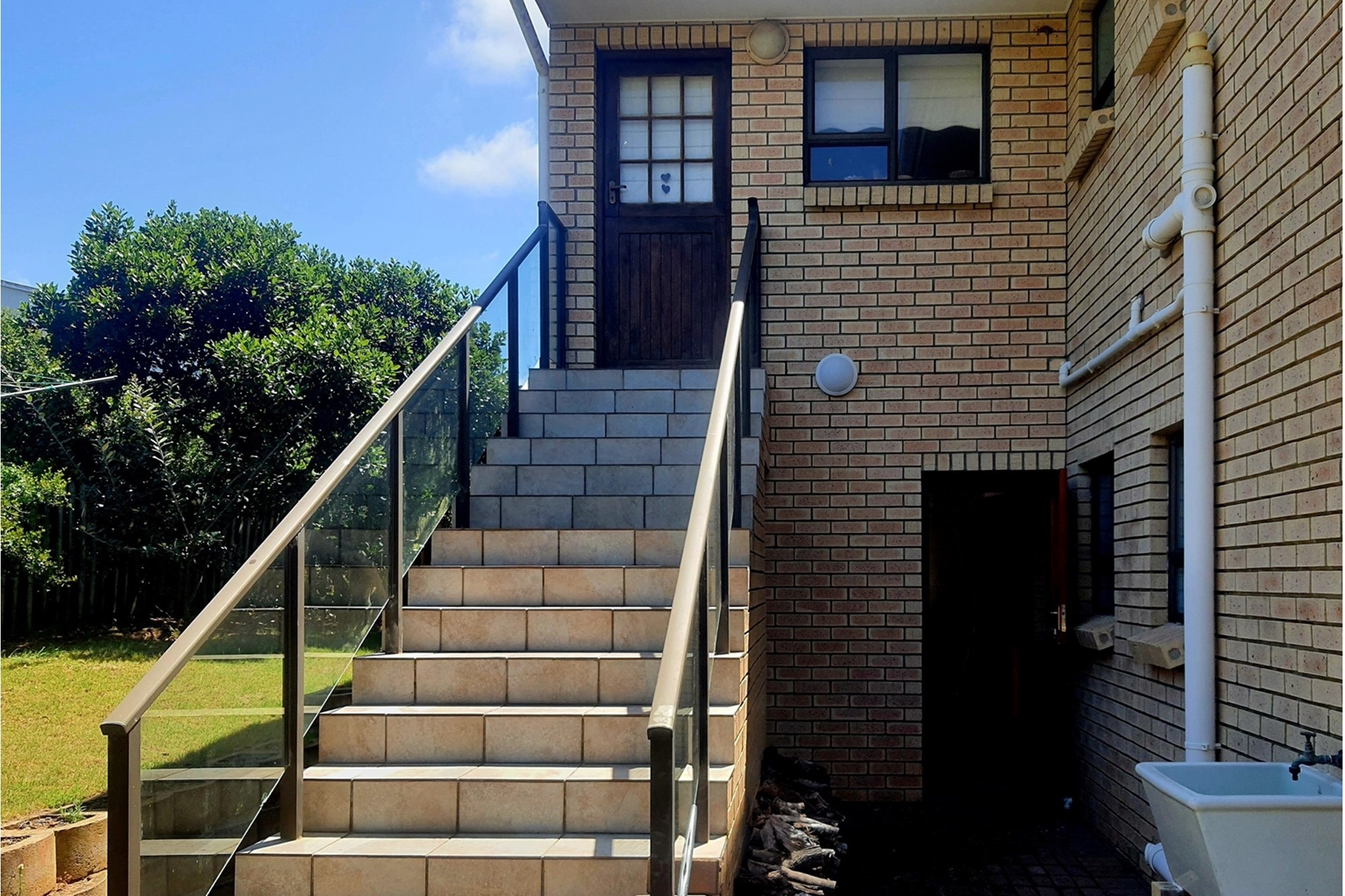 As you step inside, an enclosed stoep welcomes you with sunlight streaming through large sliding windows. This serene space invites you to relax and enjoy the refreshing sea breeze. Beyond a built-in bookcase, a cozy lounge area offers a quiet retreat, while cleverly designed under-stair storage maximizes space.
