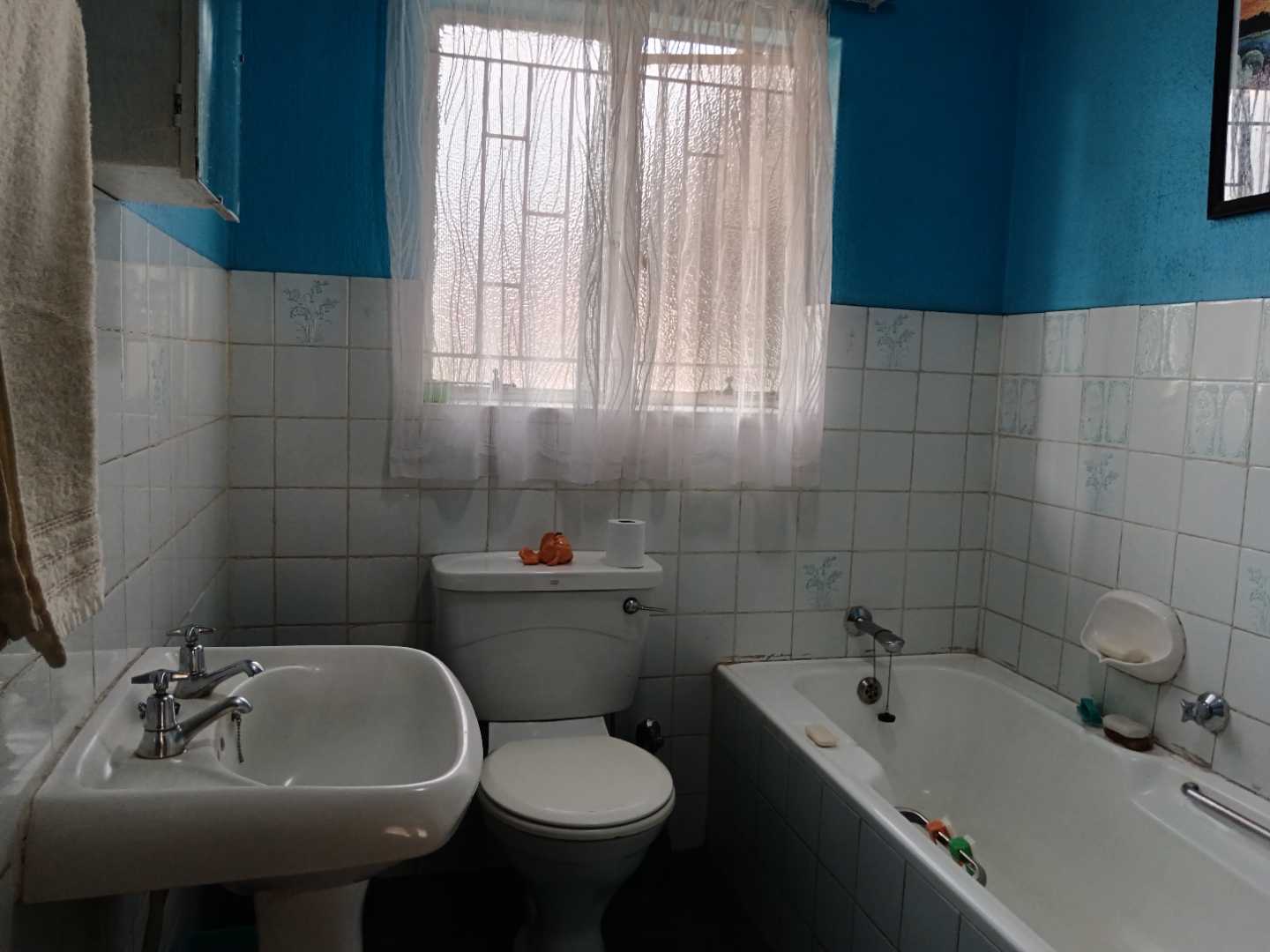 The home features three spacious bedrooms, each beautifully tiled to ensure easy maintenance and a modern aesthetic. The single bathroom is also tastefully tiled, offering both functionality and style. The kitchen is equipped with durable melamine cupboards and a gas stove, providing an efficient workspace that seamlessly flows into the dining room, perfect for family meals or client meetings.