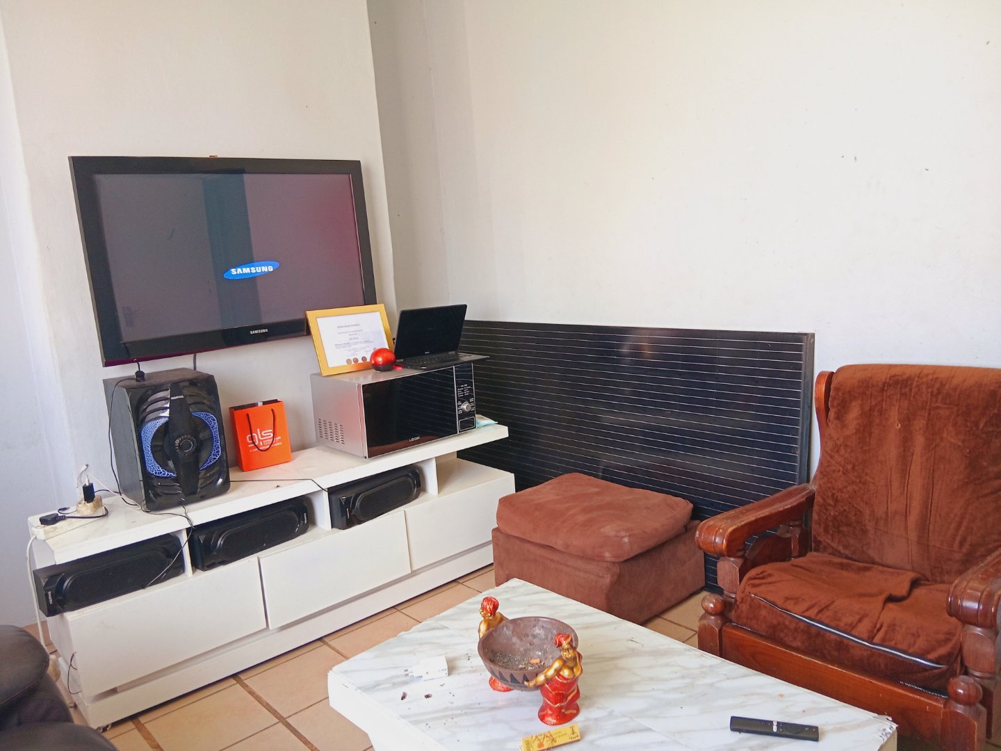 A hint of a sink and a trash bin is visible on the far right.The bathroom has a clean, simple, and functional design with a mix of light-colored tiles and subtle decorative accents. It feels bright due to the natural light coming through the windows.The walls and floor around the toilet are covered in large, light-colored marble-patterned tiles.The bathtub is built in and surrounded by marble-patterned tiles,The sink is small, white, and sits on a compact vanity cabinet with a single drawer and chrome handle.One bathroom and 3 bedroom.