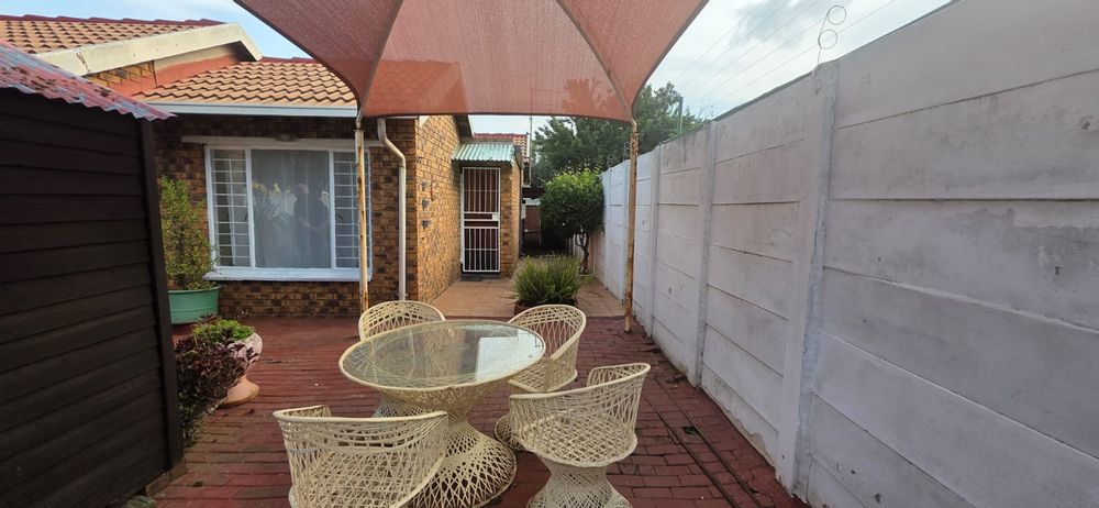 At the heart of the home, the open-plan lounge flows seamlessly into a charming sunroom — the perfect spot for morning coffee, an afternoon read, or simply soaking in the serene light. From here, you step out into the private backyard, ideal for furry friends or quiet evenings outdoors. A Wendy House provides extra storage, while the shaded entertainment area creates the perfect setting for summer braais and relaxed gatherings.