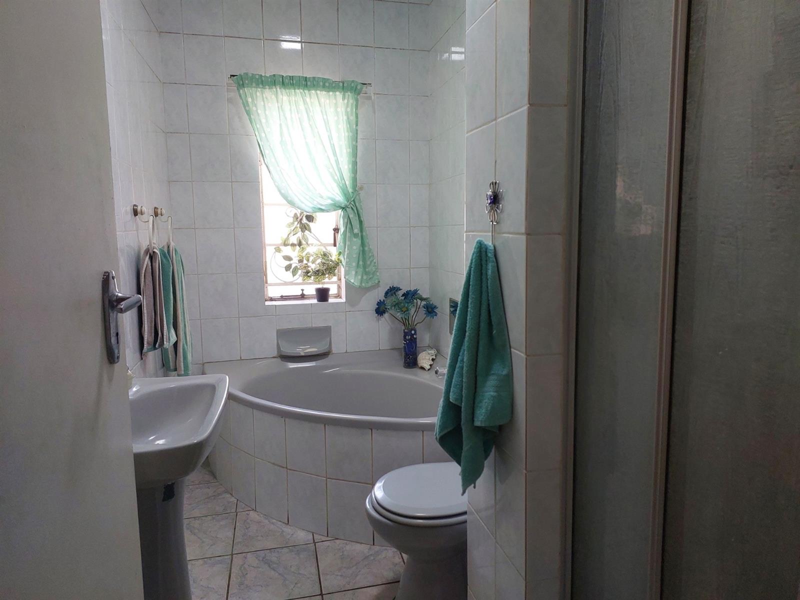 The home is tiled throughout and features spacious rooms, including a large kitchen with ample cupboard space, a pantry cupboard, and a separate scullery with additional storage and space for appliances. The dining area and lounge flow easily, creating a comfortable family environment.