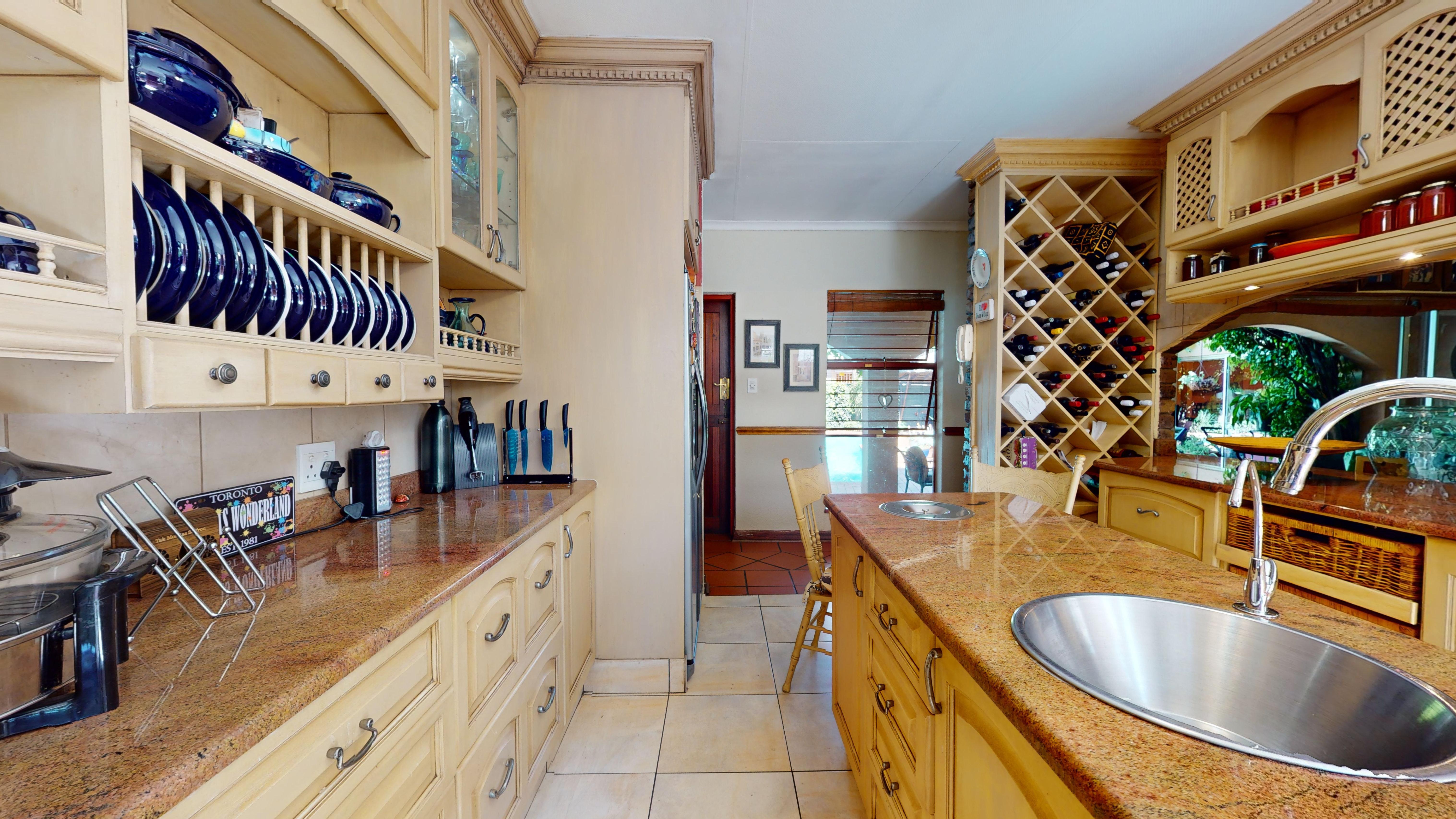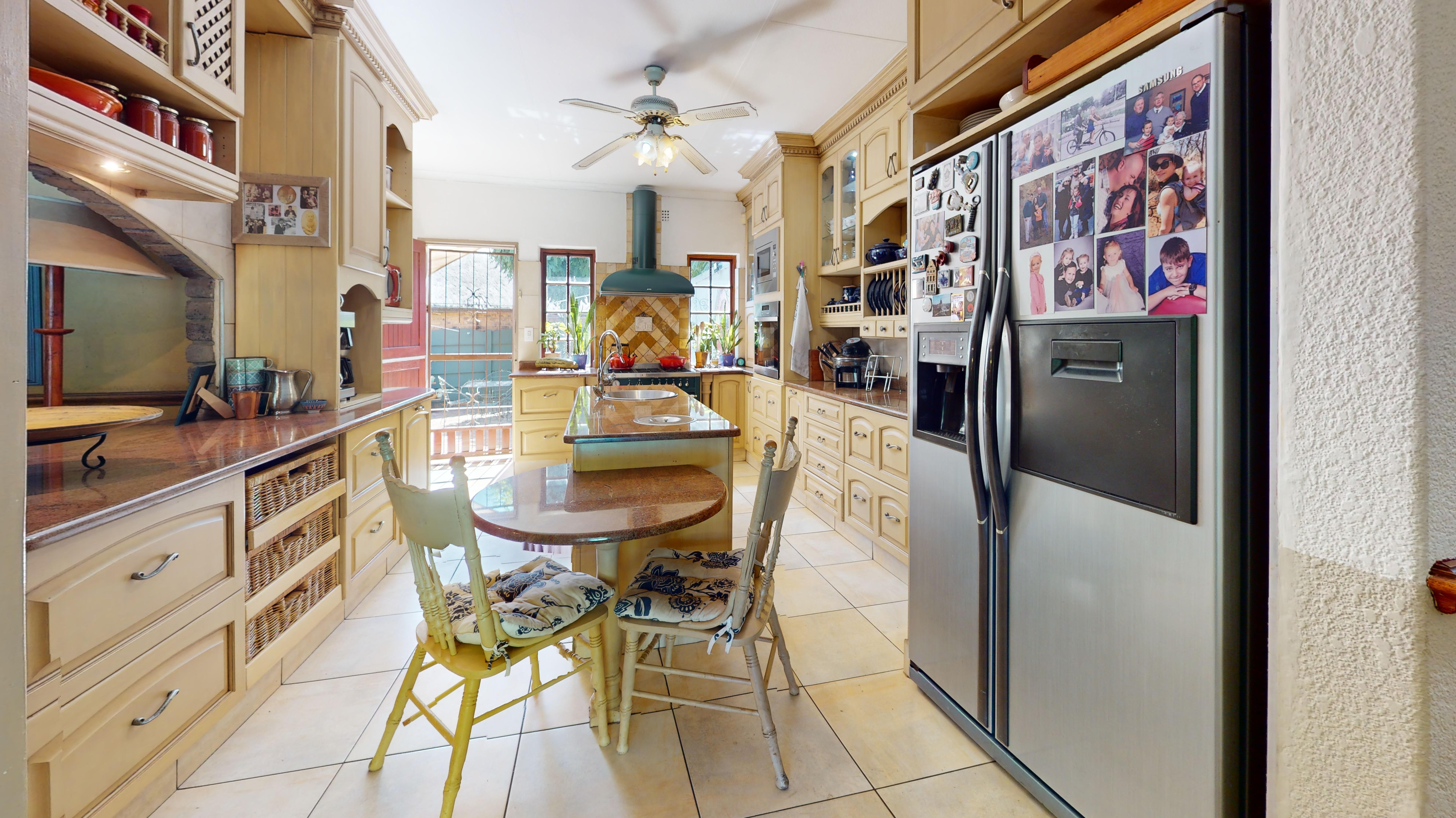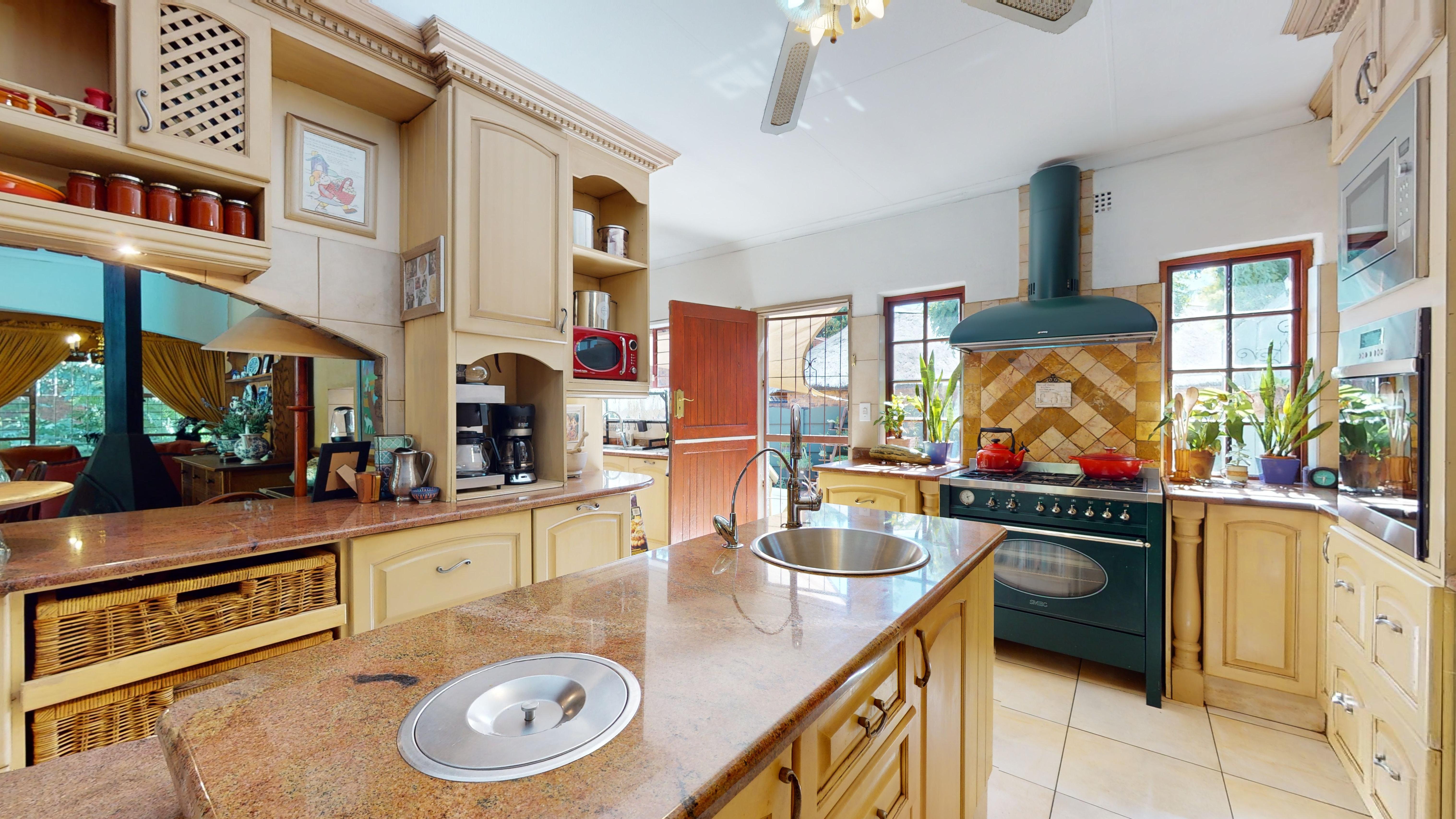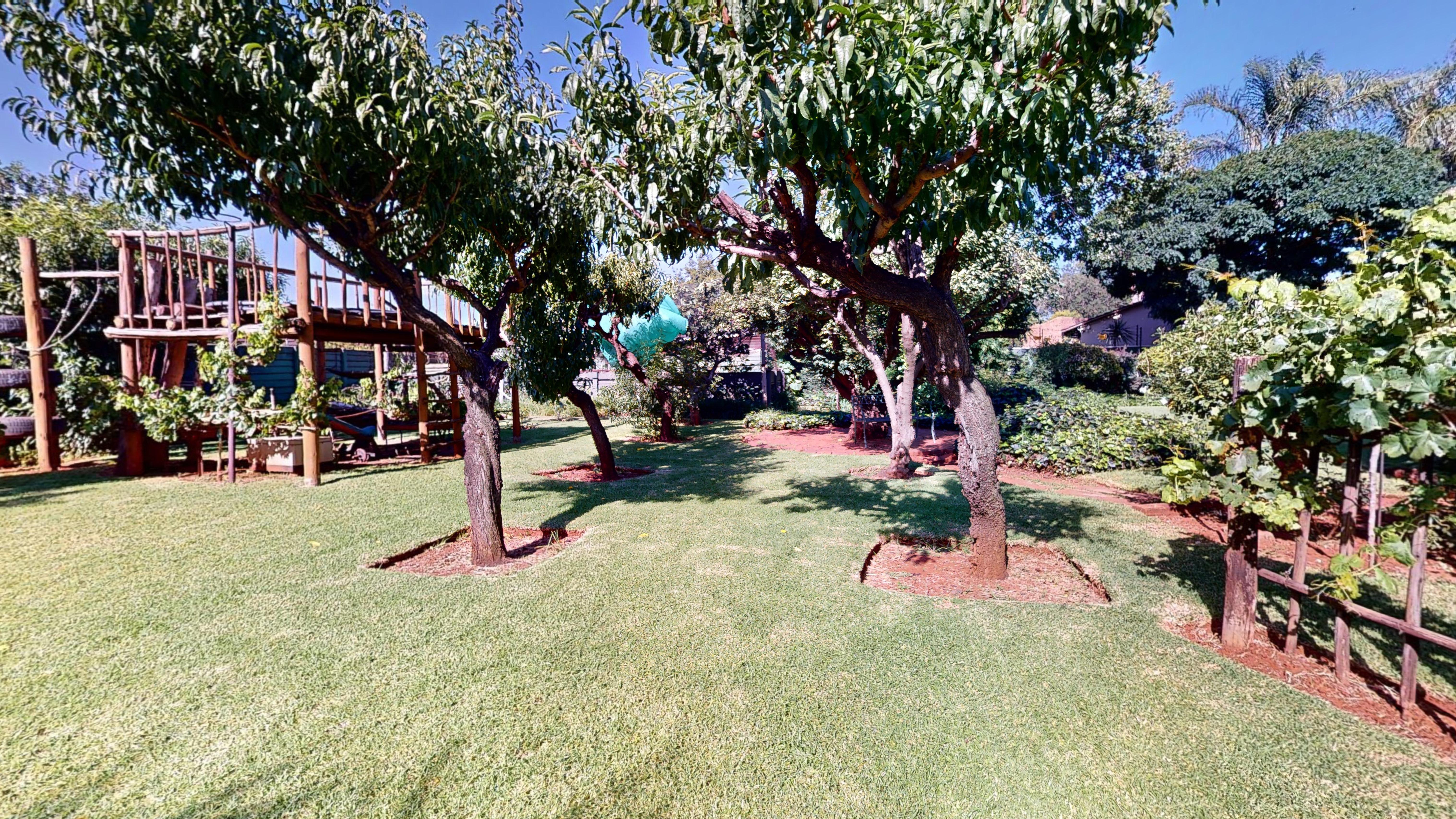 The back garden boasts a vegetable patch, fruit trees, and plenty of storage with a Zozo hut and garden shed. A borehole is available on the property (not connected to the house), and a solar geyser adds to the home’s energy efficiency.