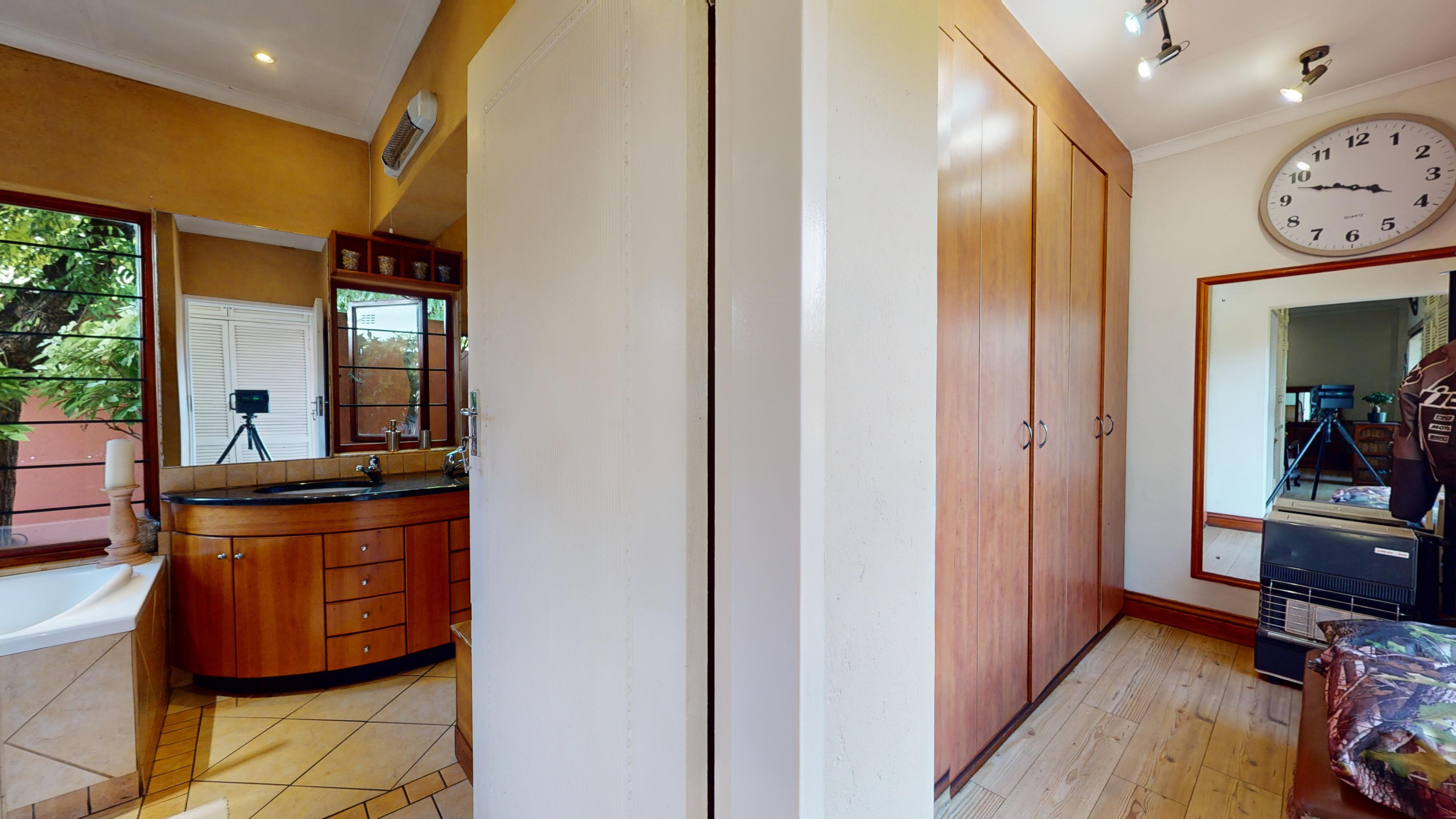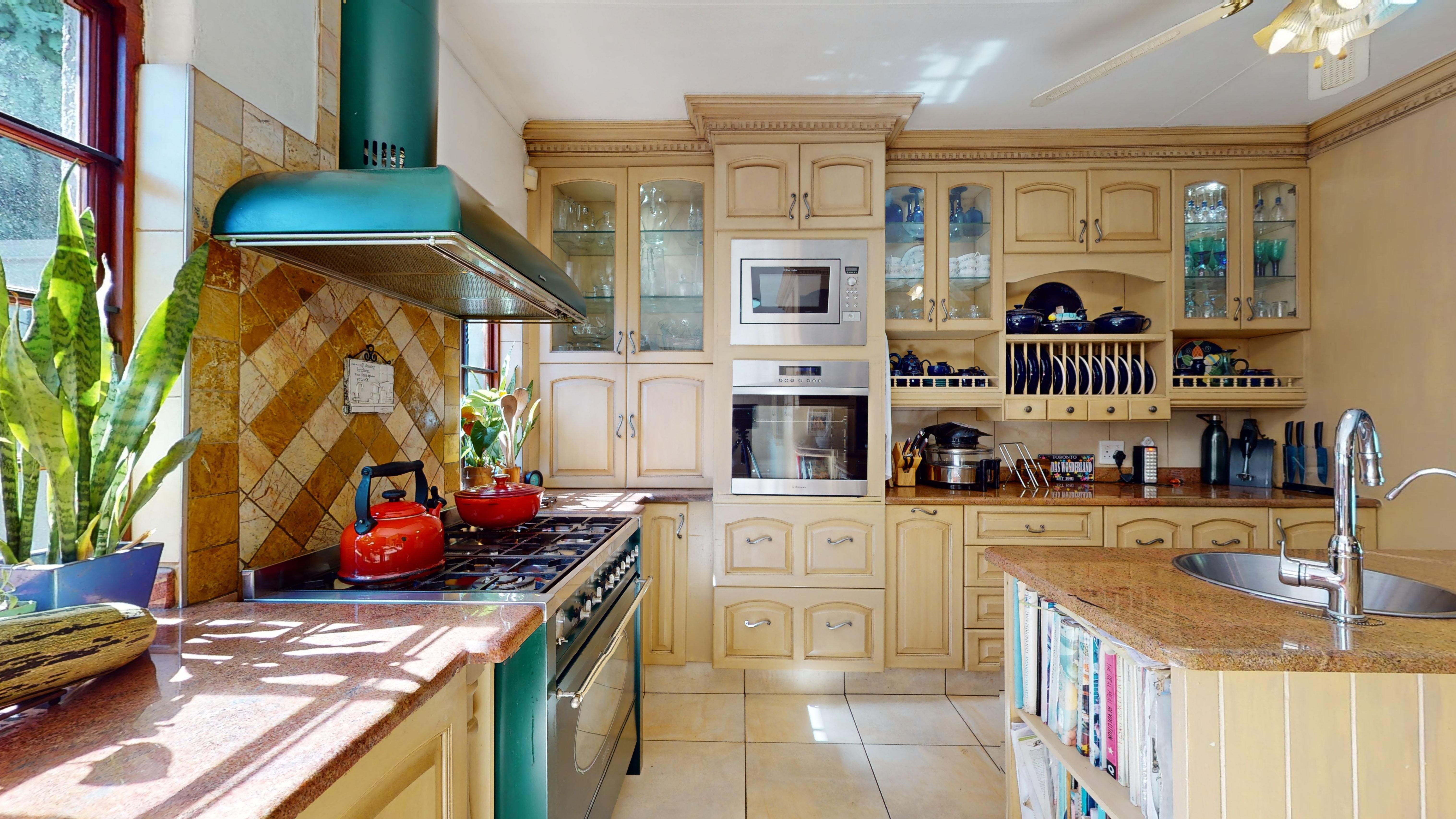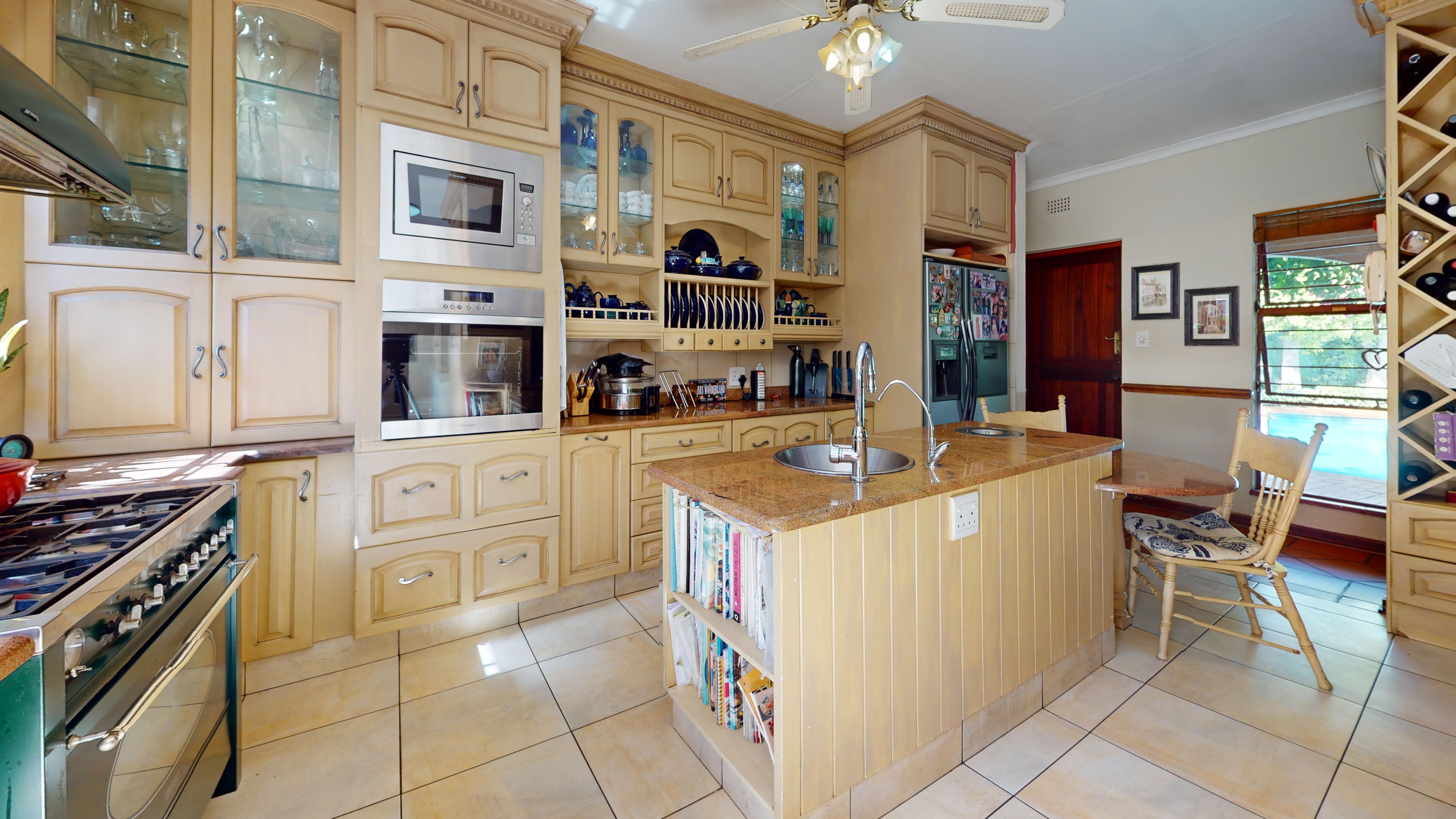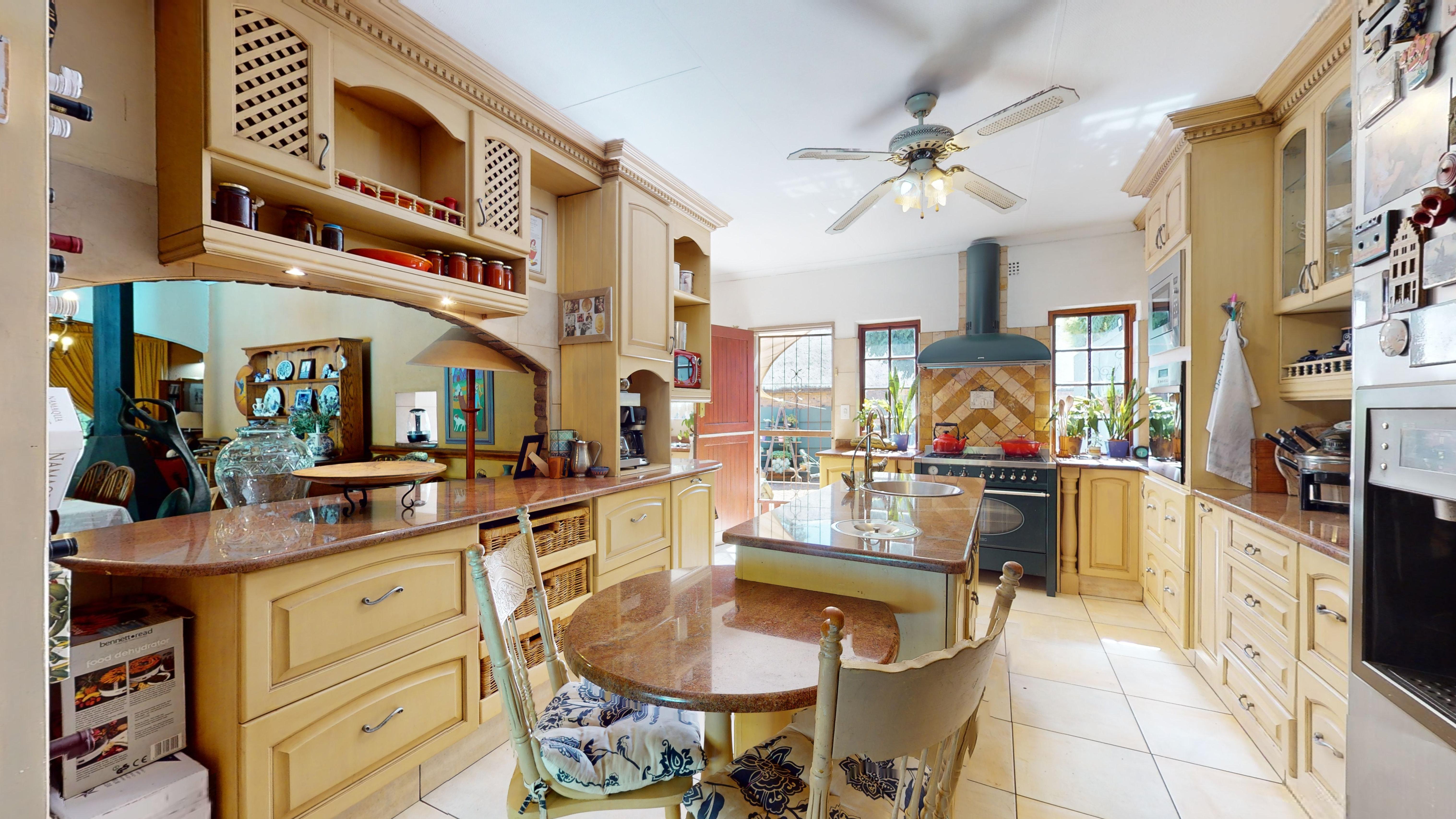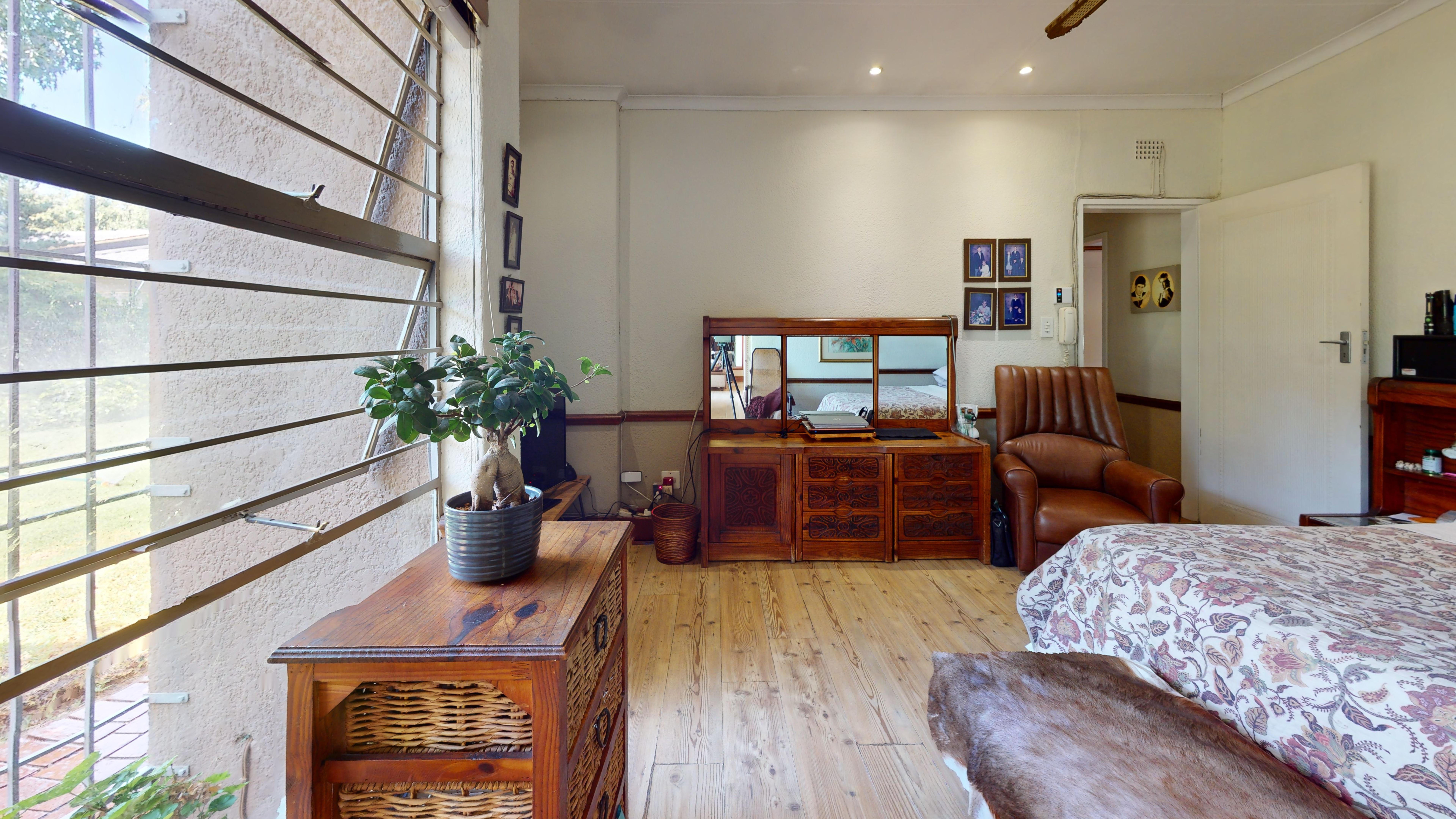 The back garden boasts a vegetable patch, fruit trees, and plenty of storage with a Zozo hut and garden shed. A borehole is available on the property (not connected to the house), and a solar geyser adds to the home’s energy efficiency.