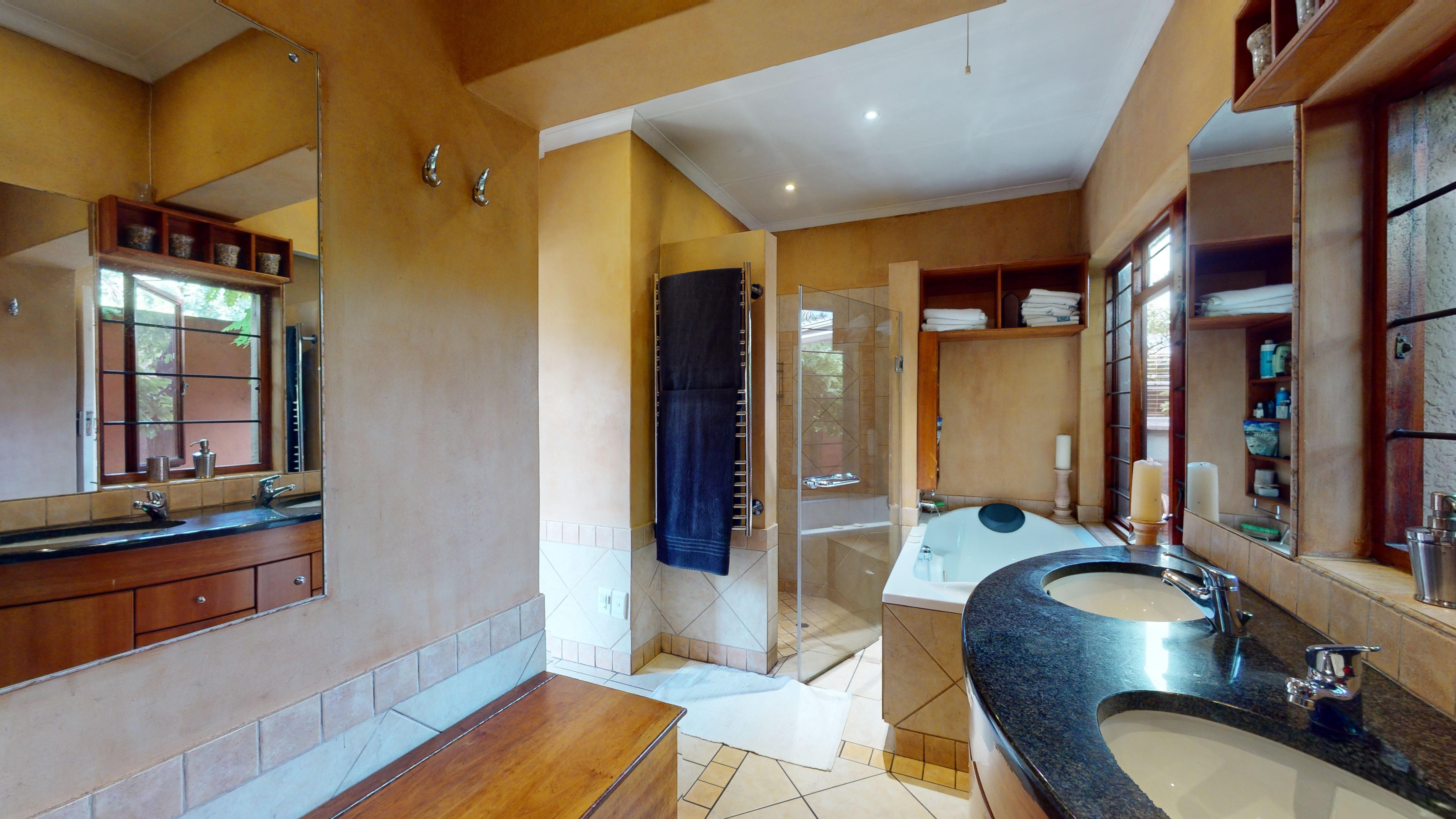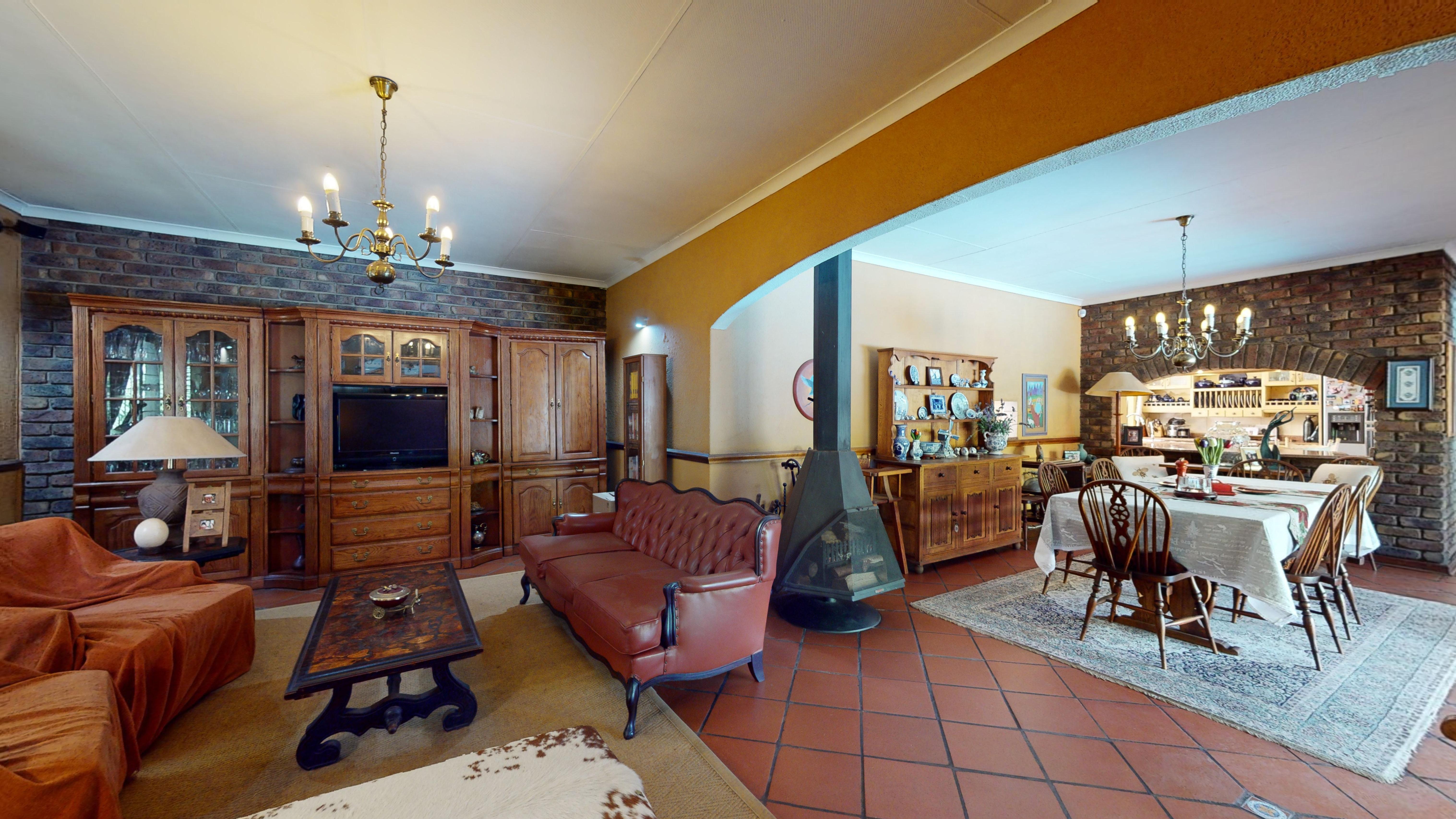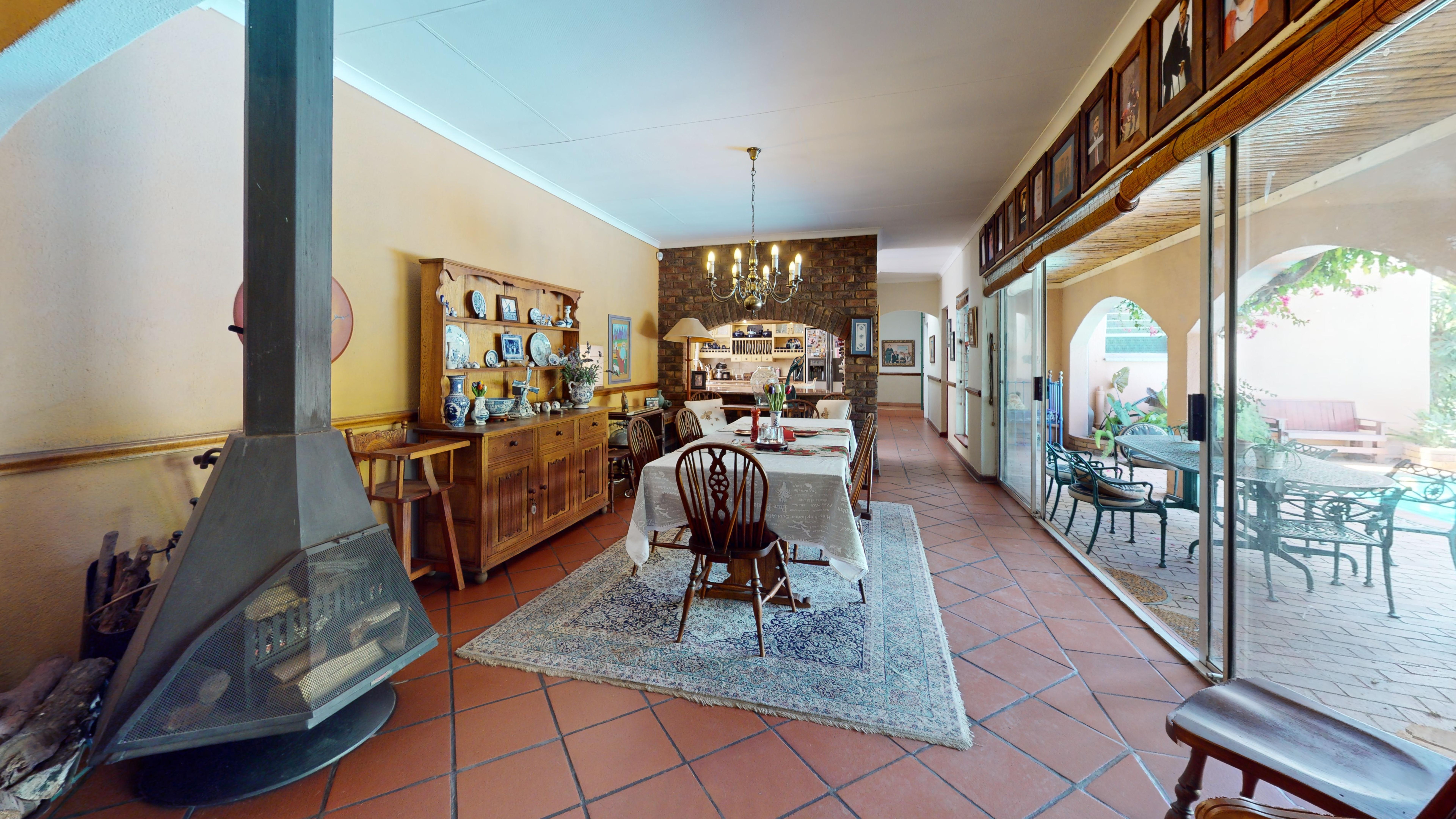 Welcome to this stunning 4-bedroom family home situated in a secure, enclosed street. Designed for comfort and easy living, the home offers 2.5 bathrooms, a spacious kitchen with scullery, and multiple living areas including a dining room, lounge, and TV room. A double-sided fireplace between the dining and TV rooms creates a warm and inviting atmosphere throughout the home in winter.