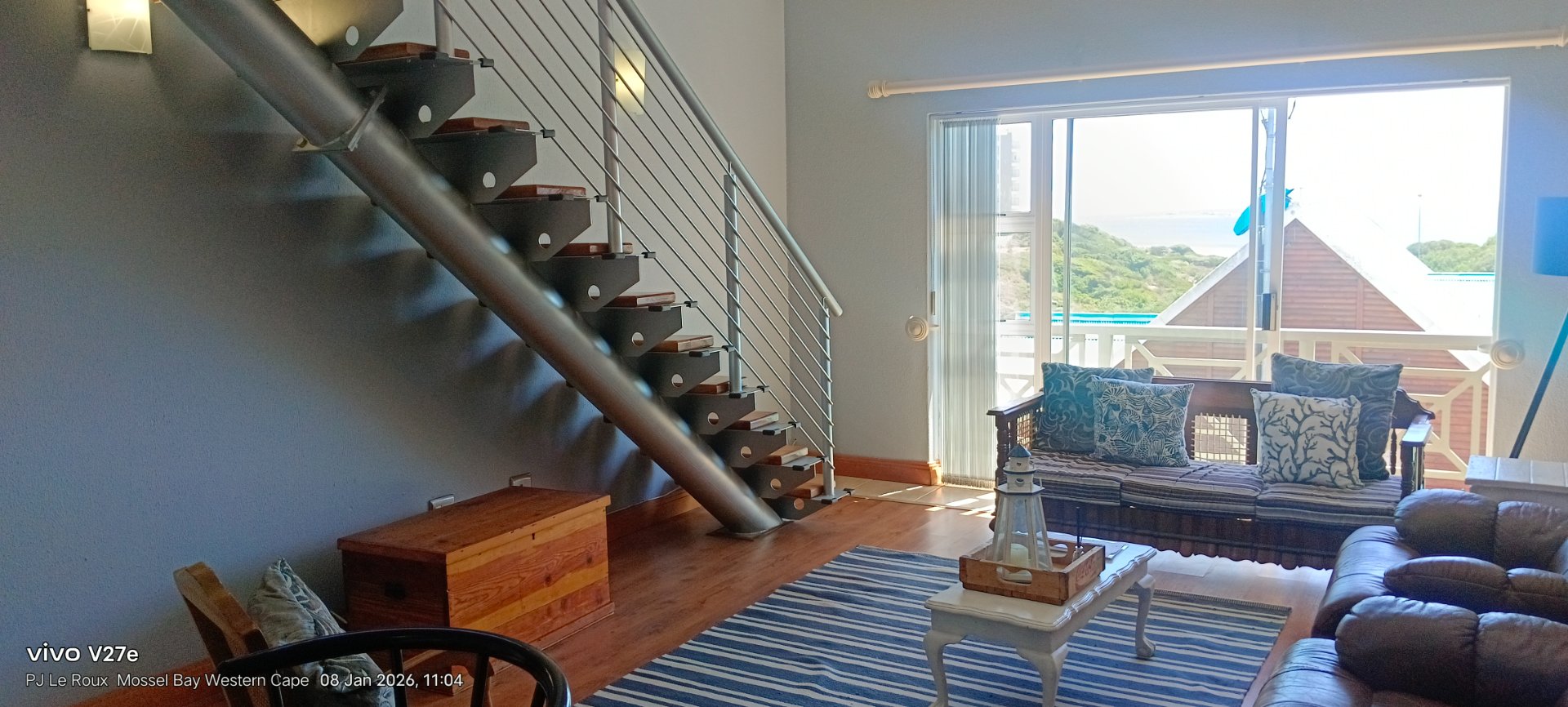 A standout feature is the large private rooftop deck with built-in braai, offering panoramic sea views and the perfect setting for sunset evenings and relaxed coastal entertaining.